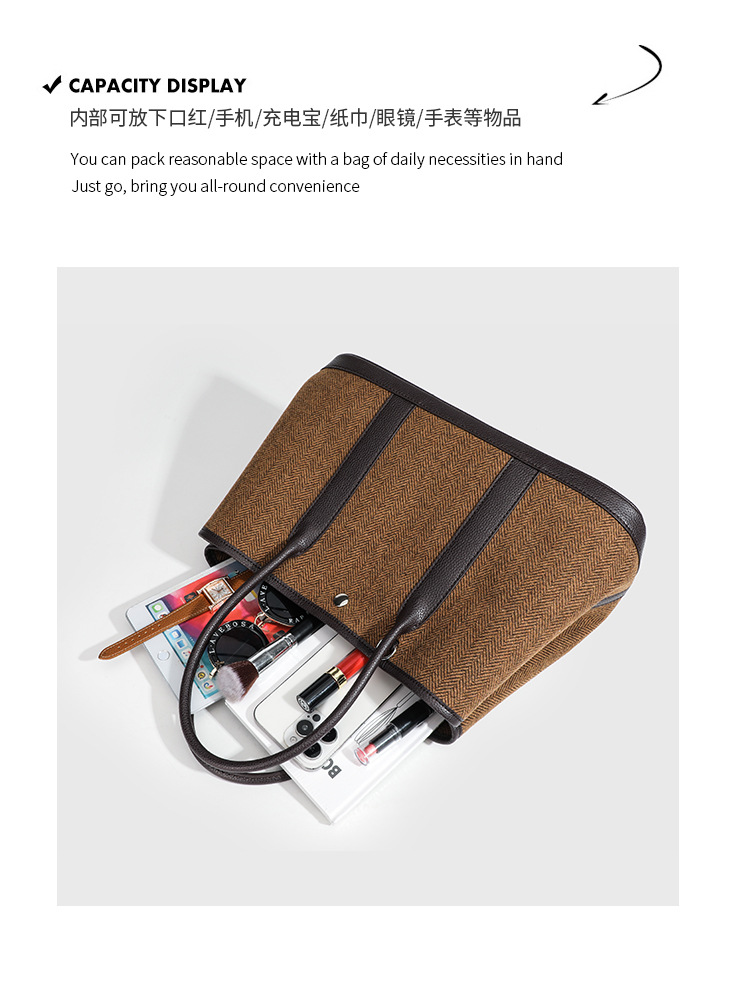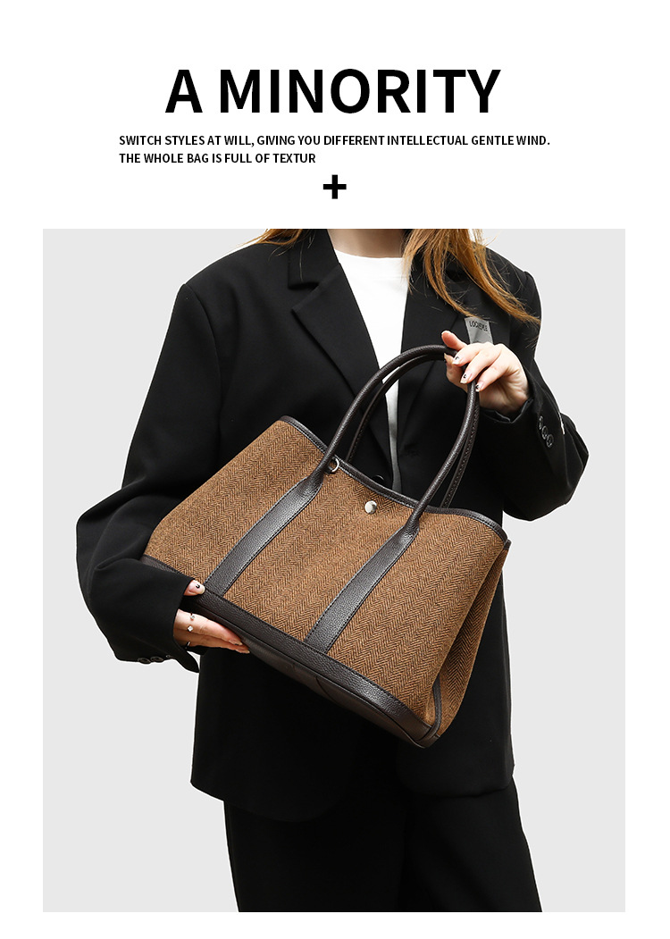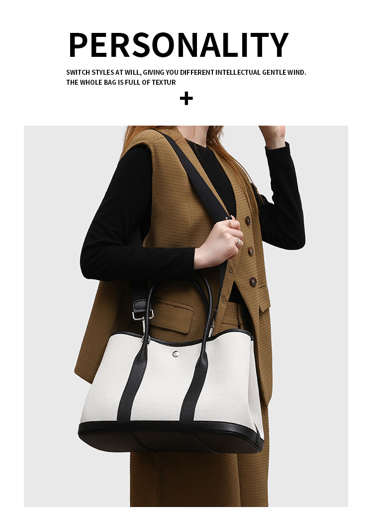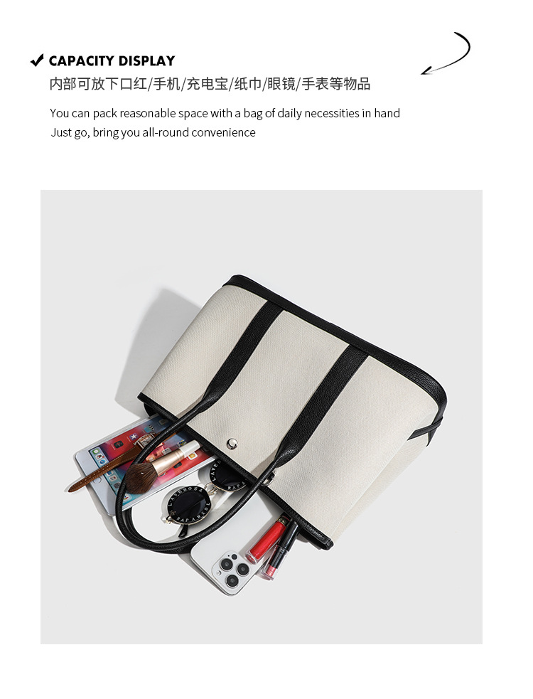 2025년 신상 캔버스 스타일 성숙한 여성 비즈니스 통근용 가든 핸드백, 배색 라이트 럭셔리 토트백스토어 가기