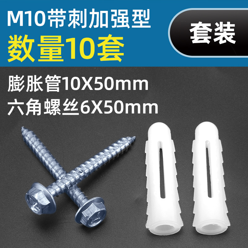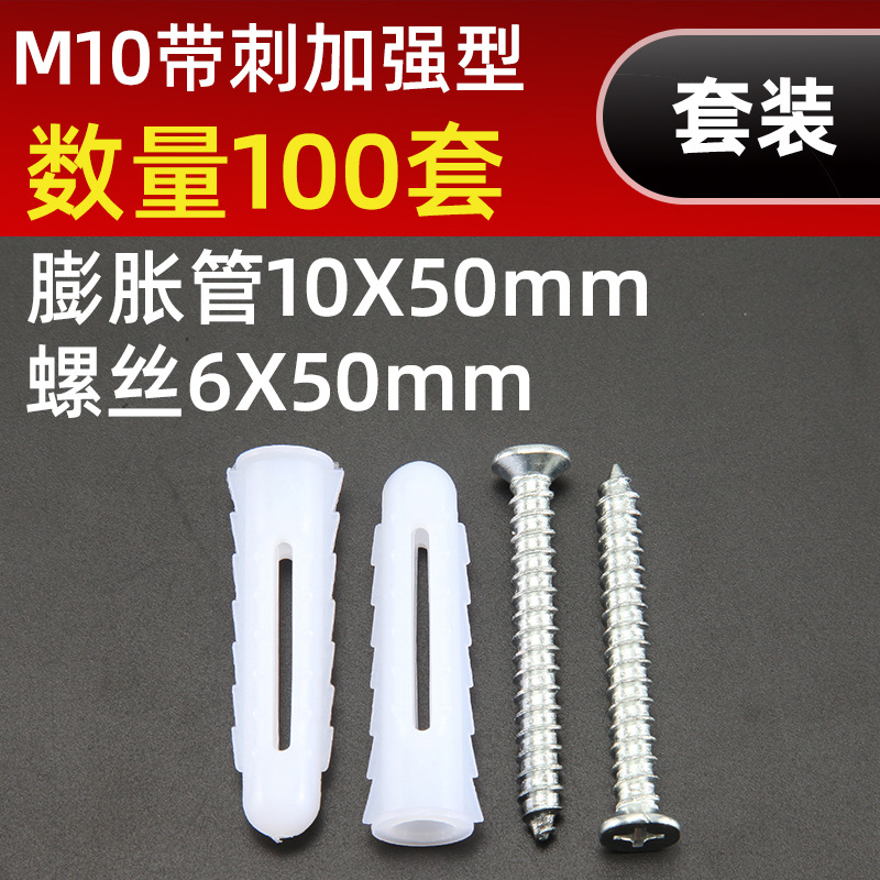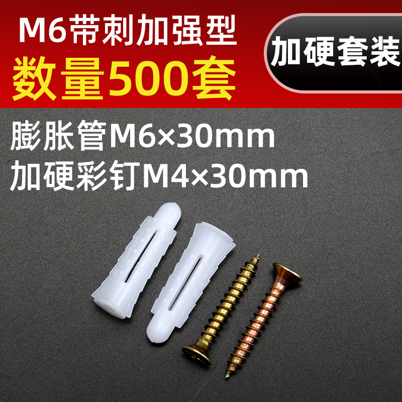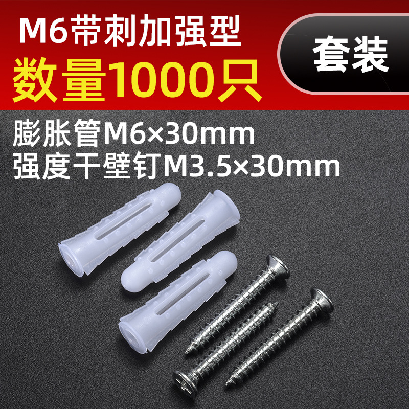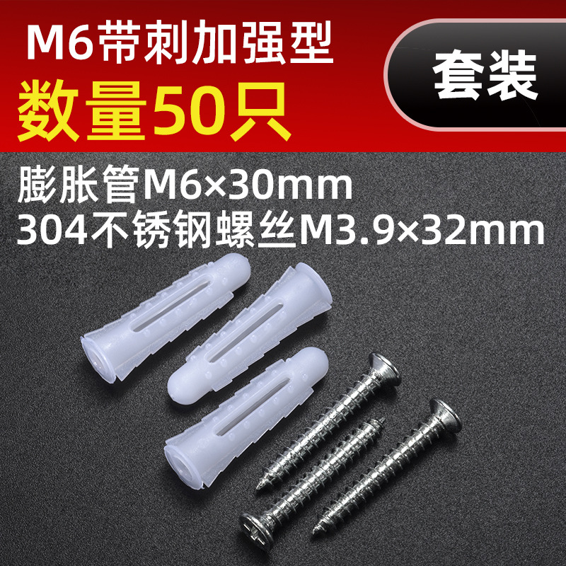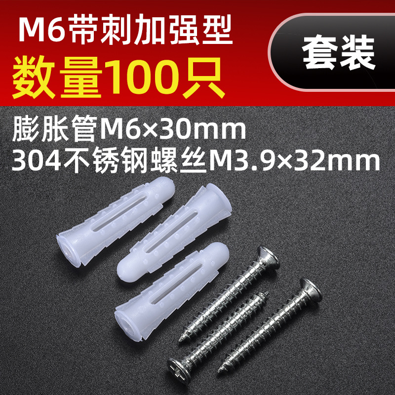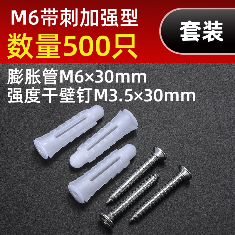 강화 된 가시 플라스틱 확장 파이프 확장 나사 고무 플러그 볼트 확장 플러그 6mm 셀프 태핑 나사 세트 M6