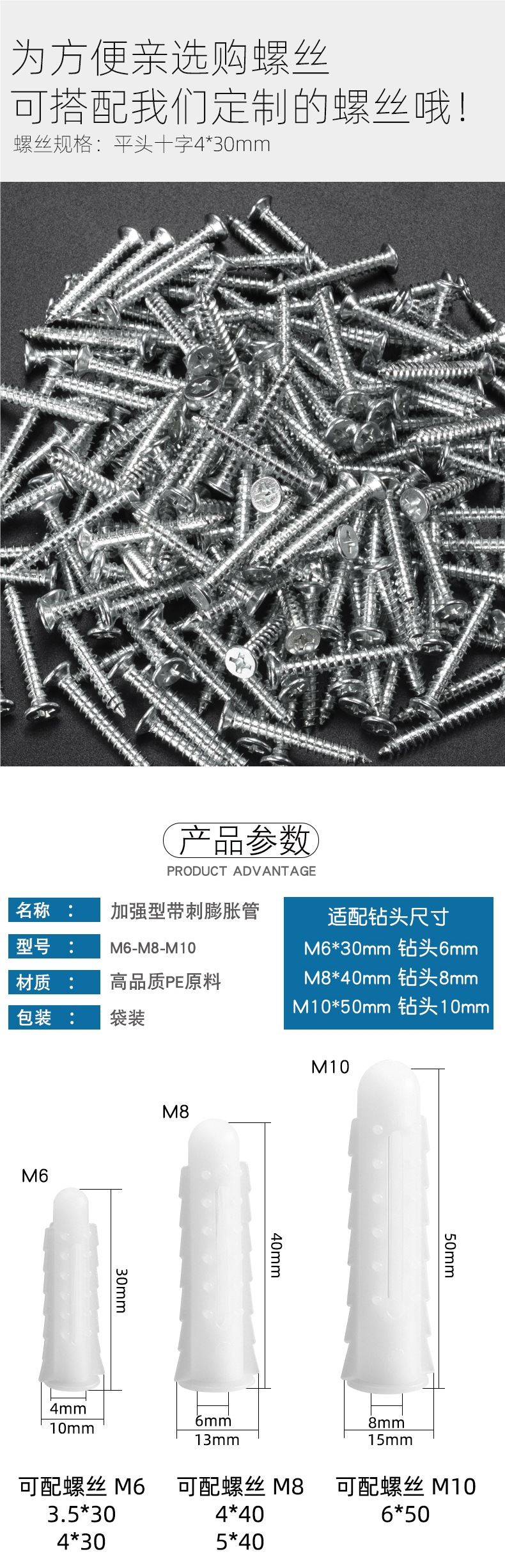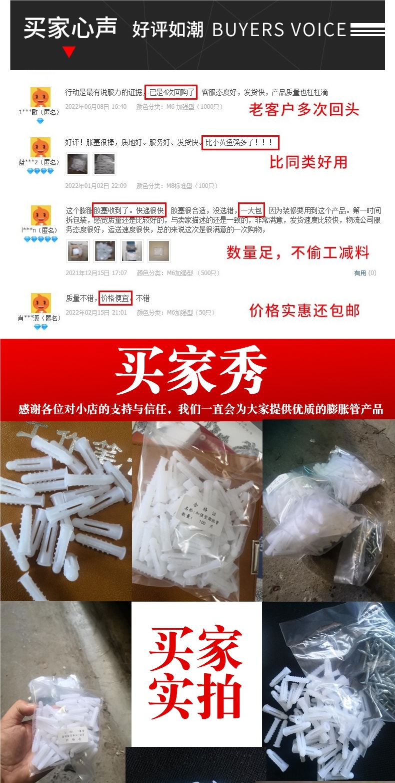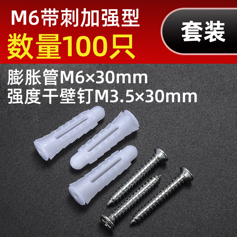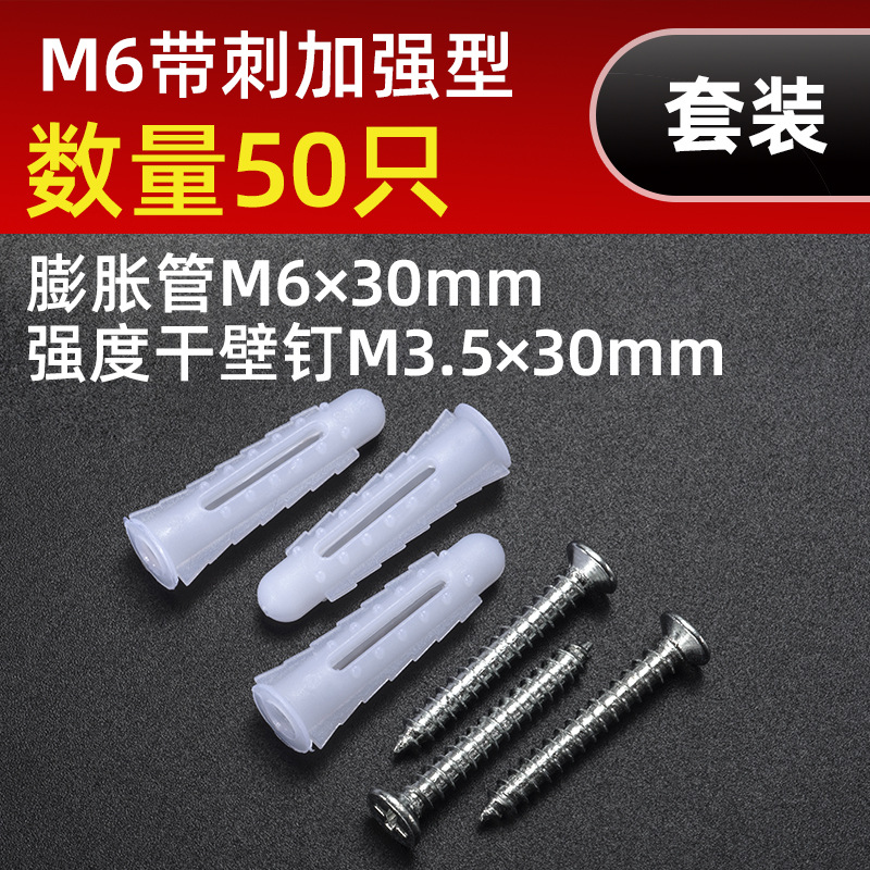 강화 된 가시 플라스틱 확장 파이프 확장 나사 고무 플러그 볼트 확장 플러그 6mm 셀프 태핑 나사 세트 M6스토어 가기