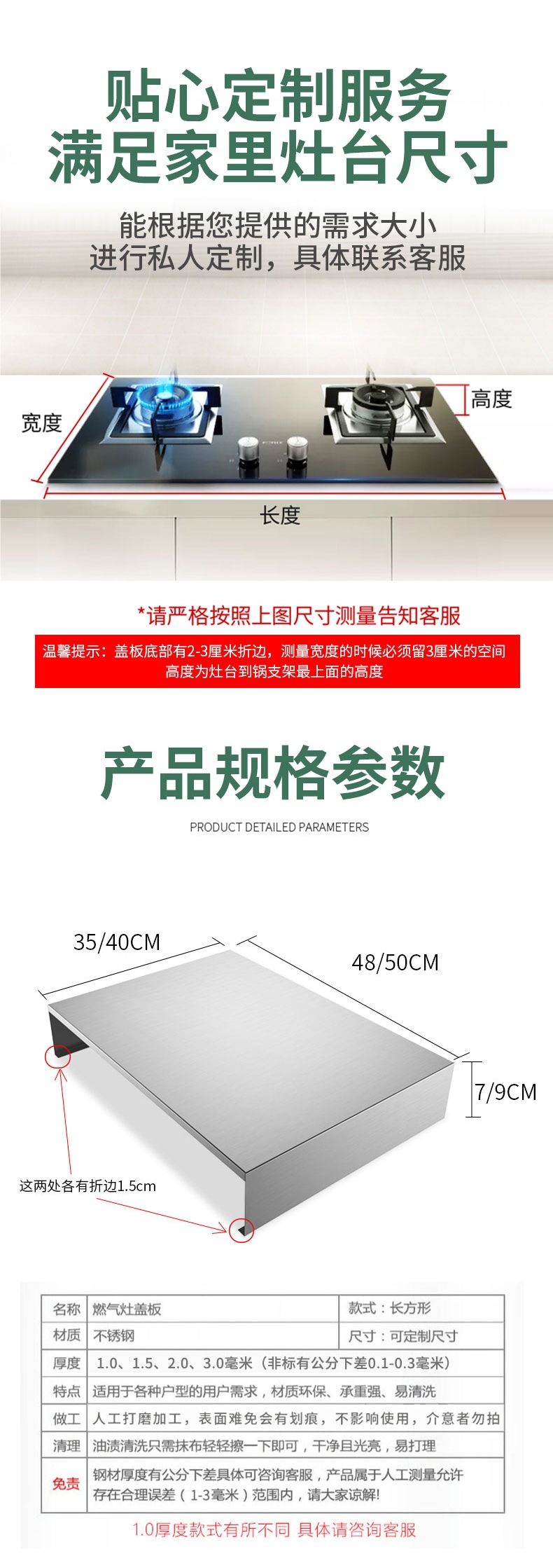 • 싱글 스토브 길이 30*깊이 40*높이 7*두께 1.0 (이 섹션은 일체형 스토브에 사용됩니다)