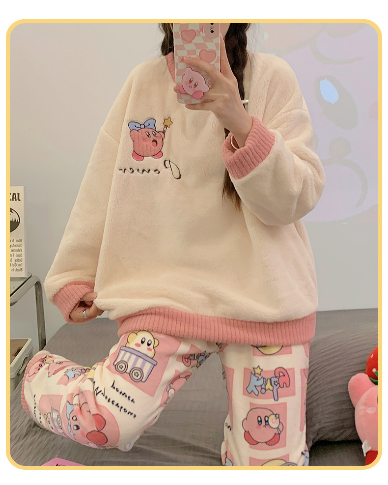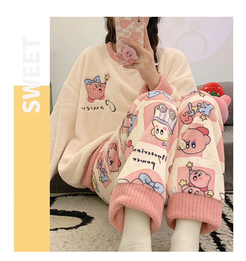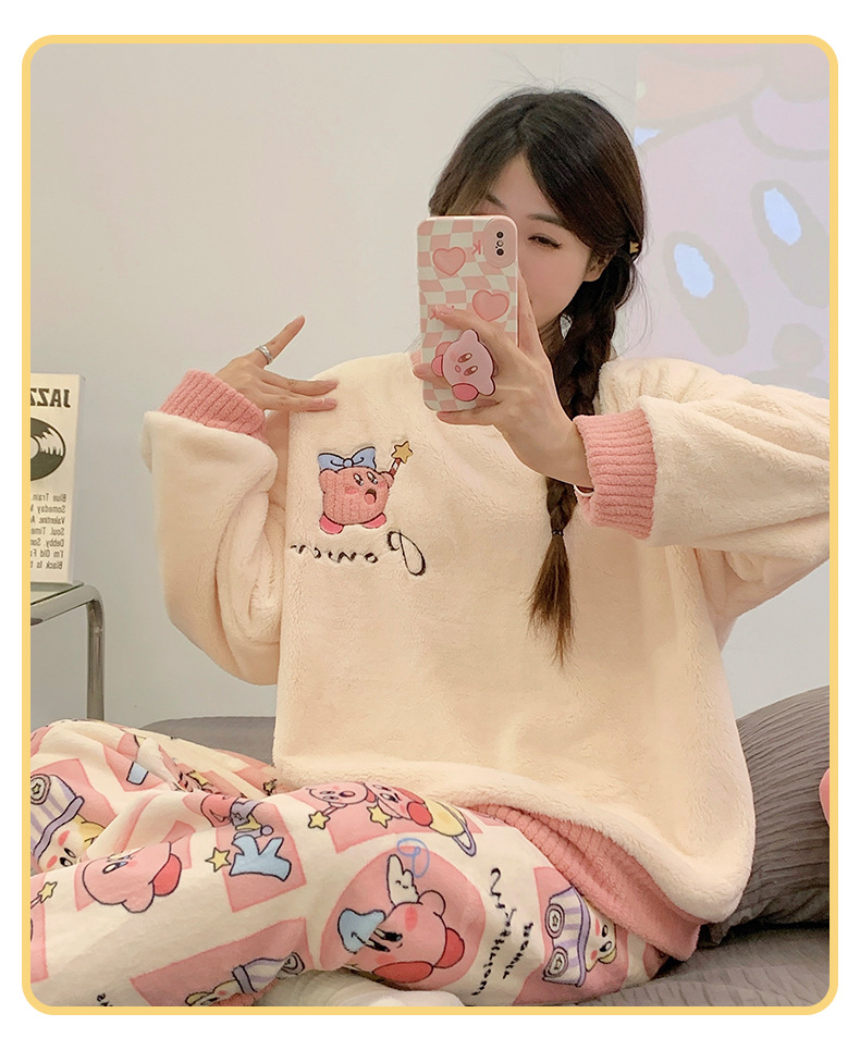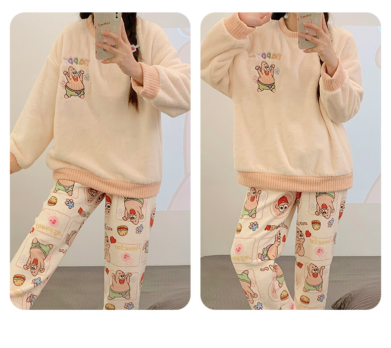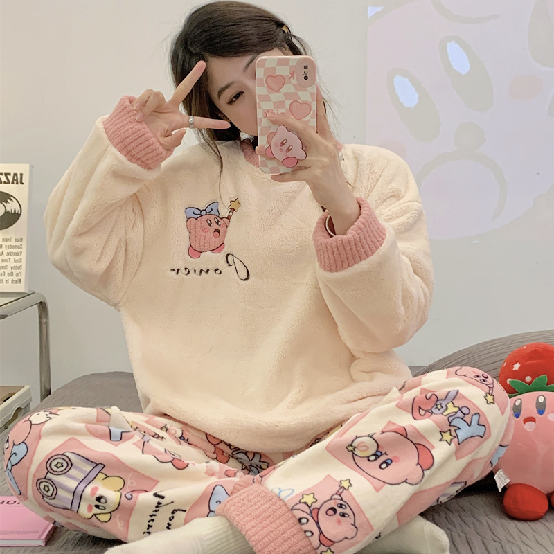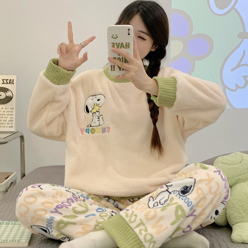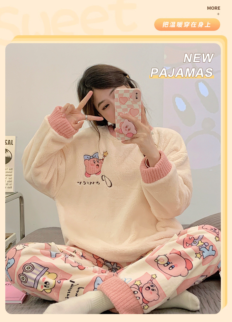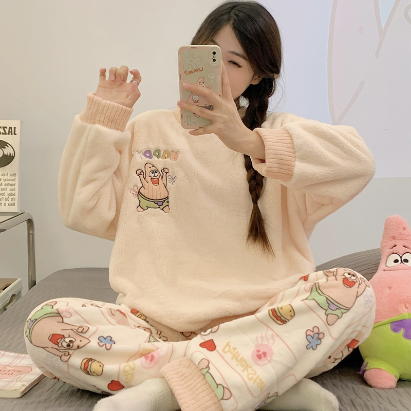 2024 새로운 잠옷 여성 겨울 한국어 버전 만화 만화 스타일 인터넷 연예인 스타일 플란넬 산호 벨벳 슈트스토어 가기