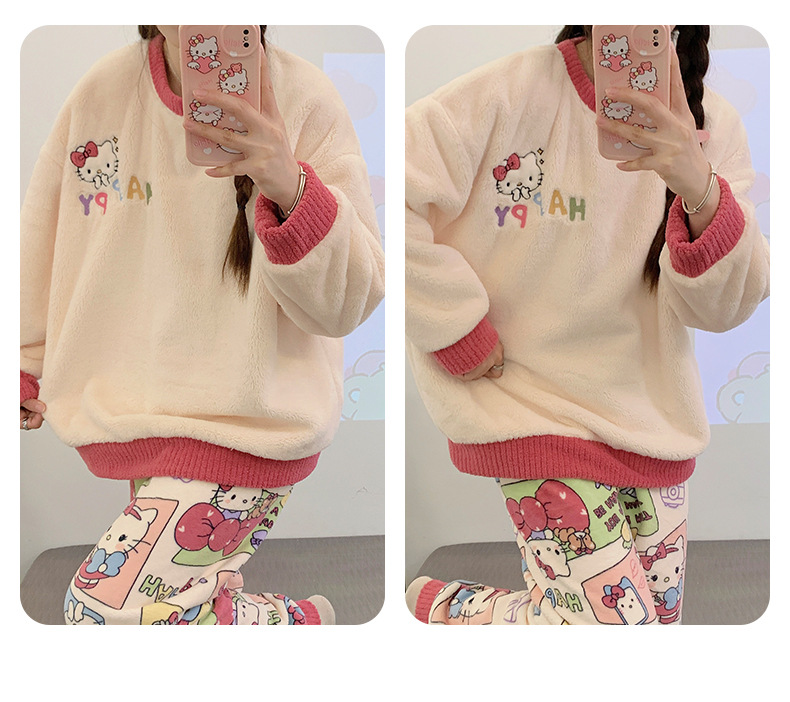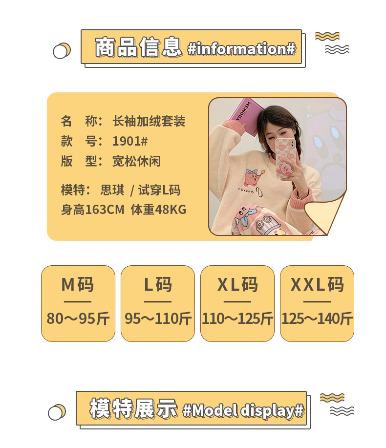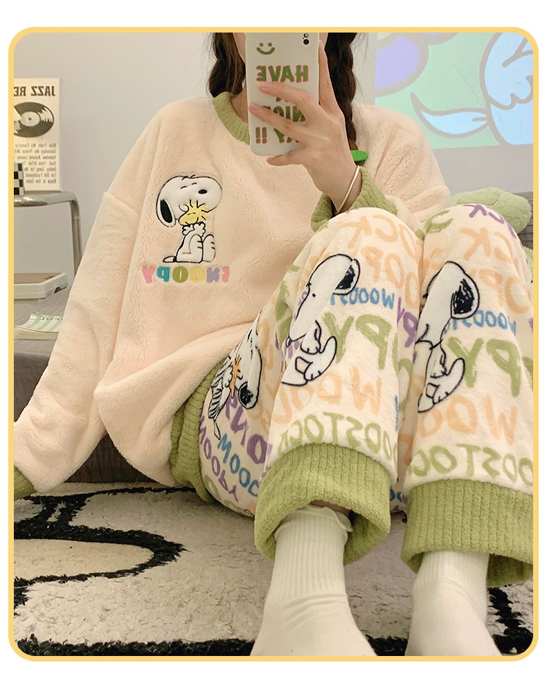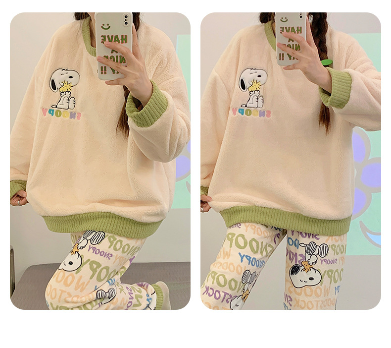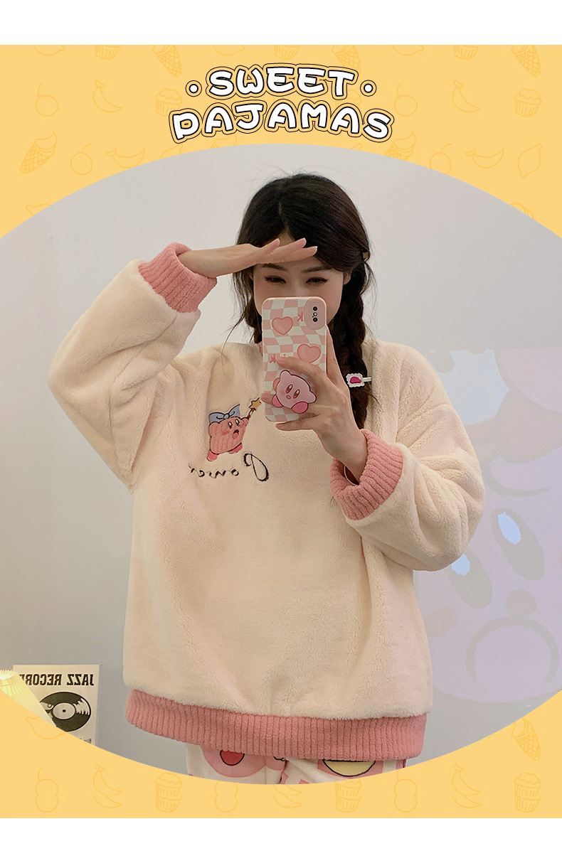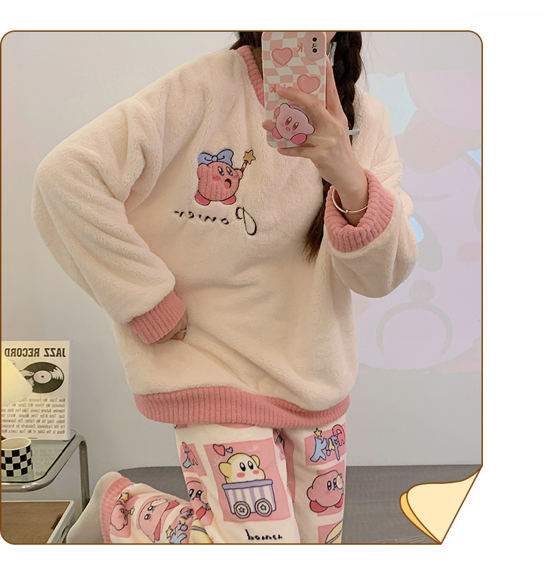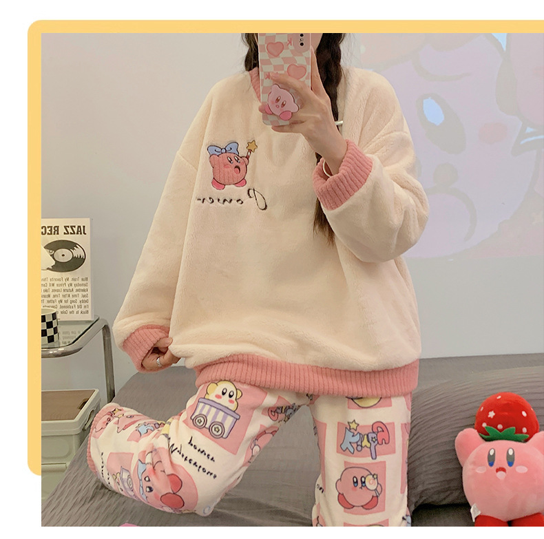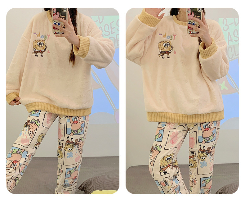 2024 새로운 잠옷 여성 겨울 한국어 버전 만화 만화 스타일 인터넷 연예인 스타일 플란넬 산호 벨벳 슈트스토어 가기