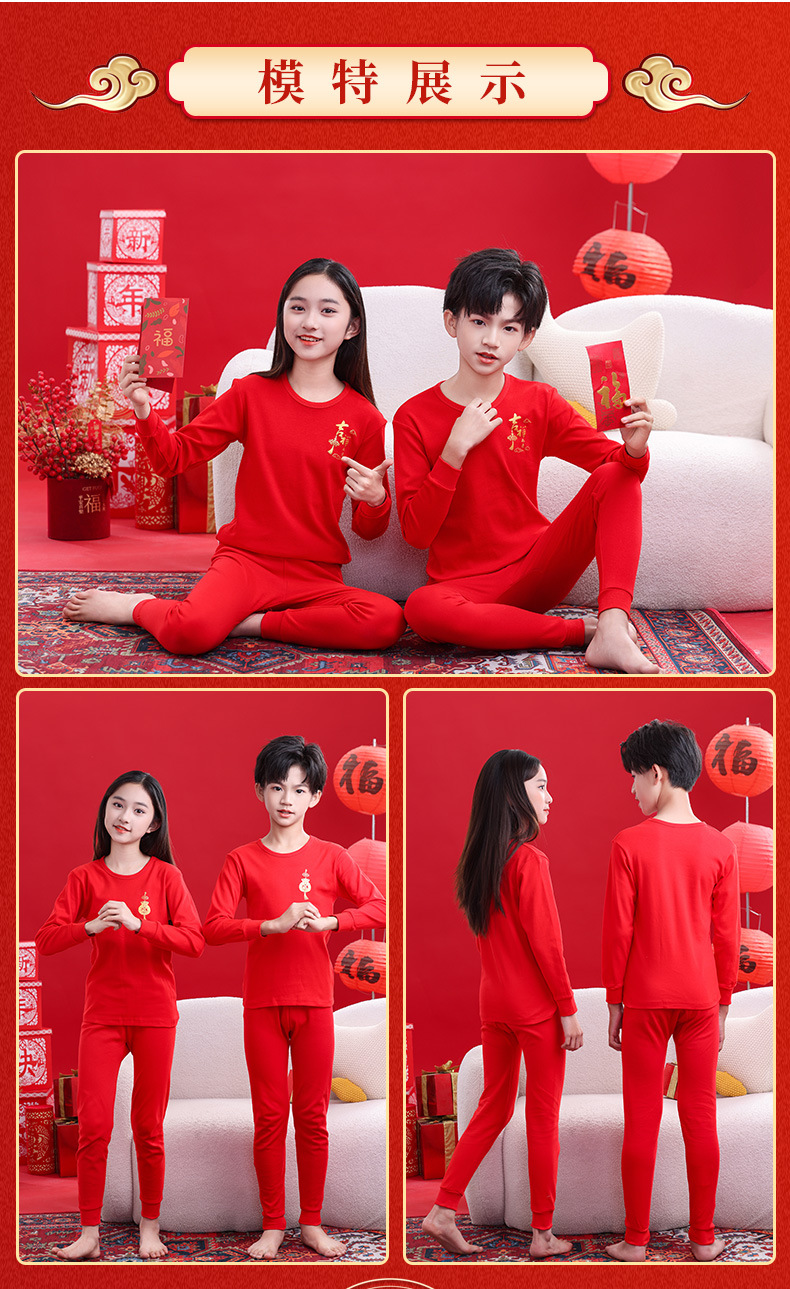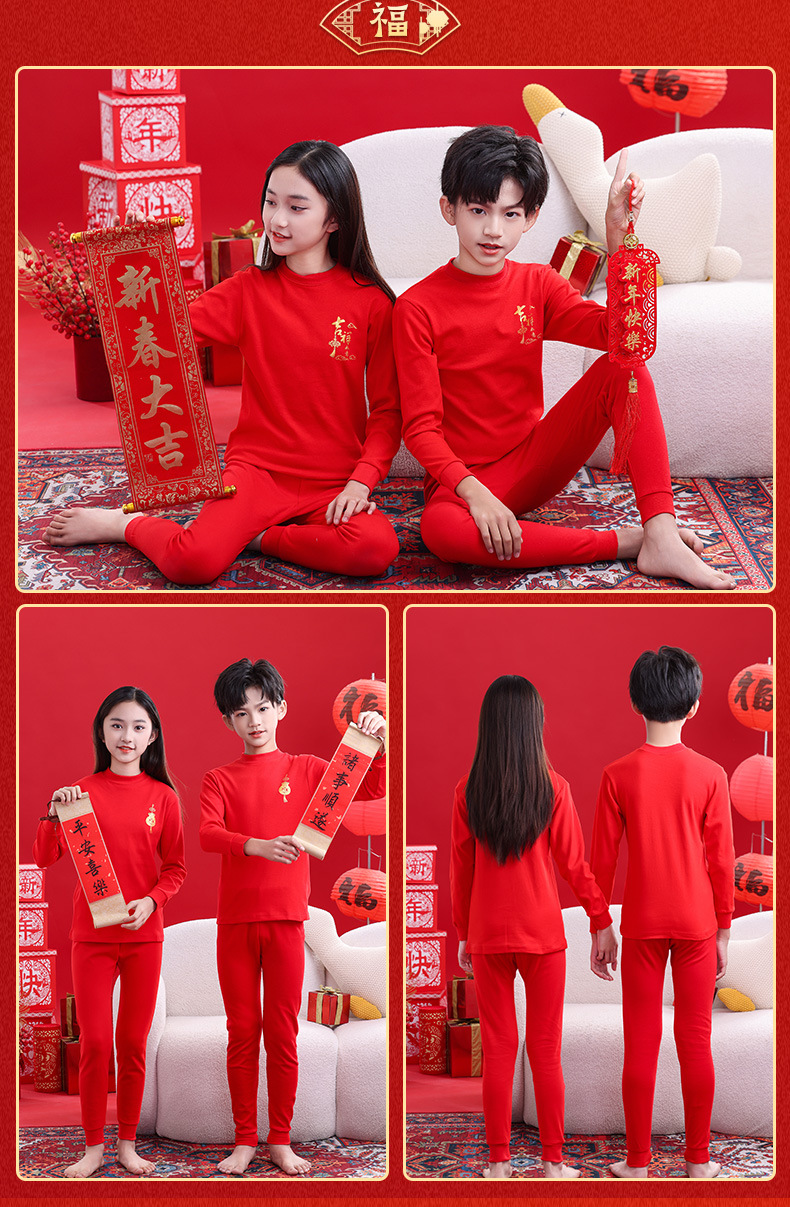 면화 소년들과 소녀들의 붉은 가을 옷과 바지 중 · 대형 어린이 보텀 잠옷을 세트 어린이 연열 속옷스토어 가기