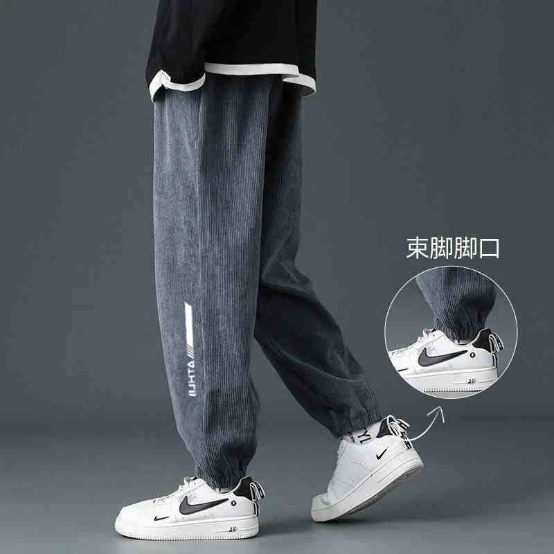 남자 코듀로이 바지 봄 가을과 겨울 사계절 새로운 캐주얼 바지 소년 느슨한 직선 투약 넓은 다리 기모 운동복스토어 가기