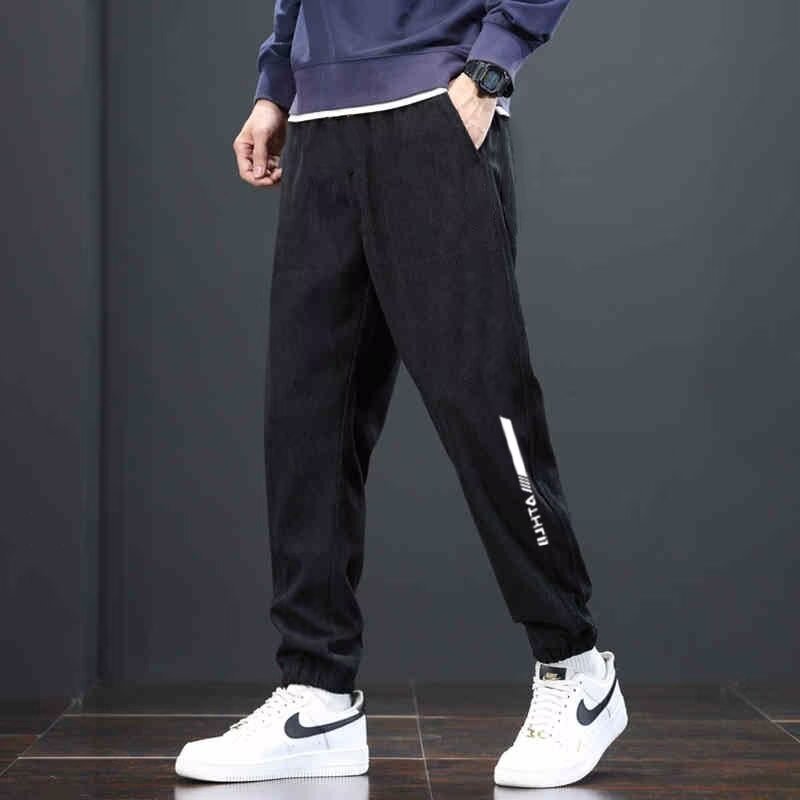 남자 코듀로이 바지 봄 가을과 겨울 사계절 새로운 캐주얼 바지 소년 느슨한 직선 투약 넓은 다리 기모 운동복