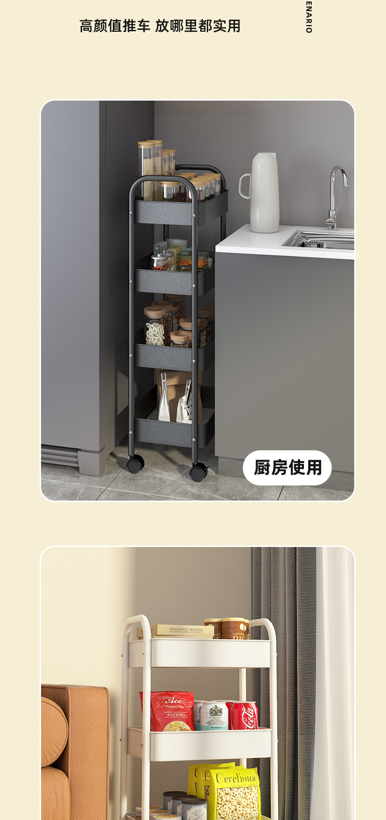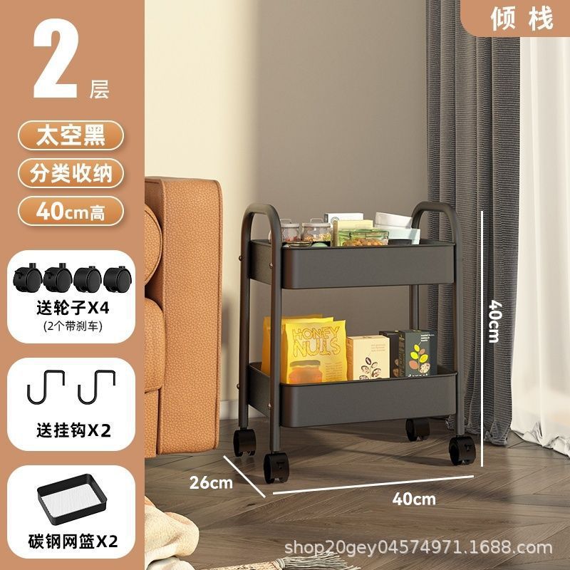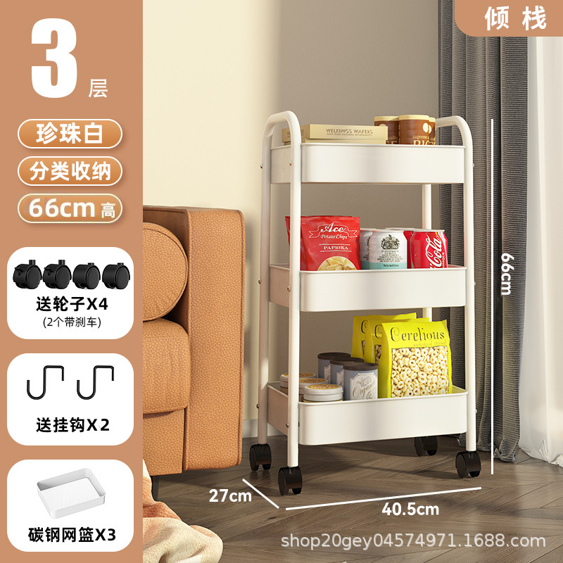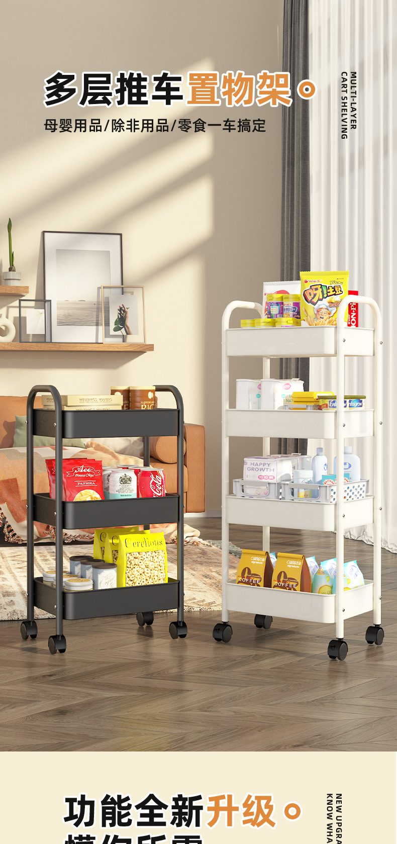 두꺼운 트롤리 탄소강 보관 랙 주방 거실 바닥 스탠딩 모바일 침실 다층 야채 재료 보관 랙스토어 가기