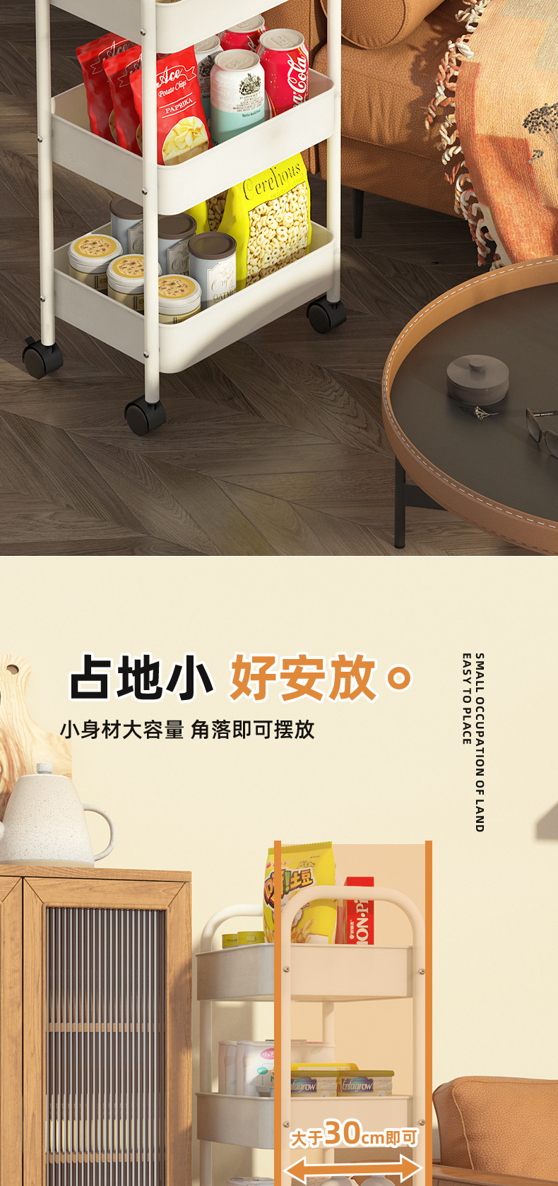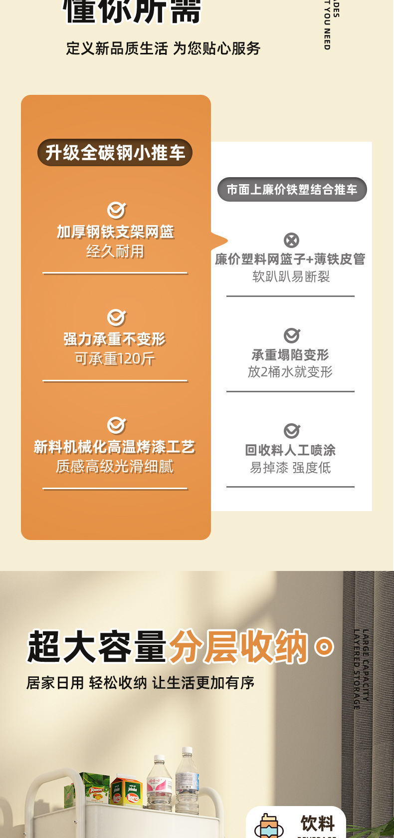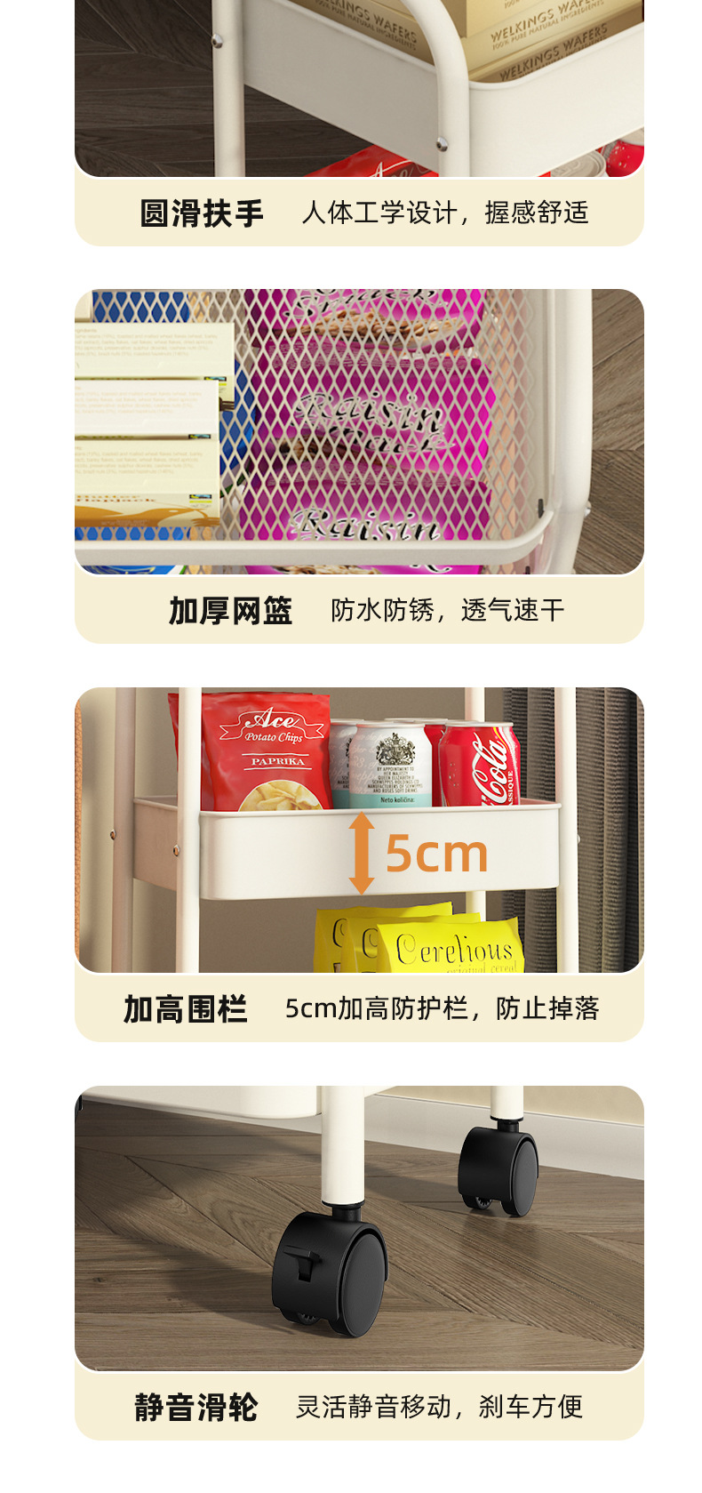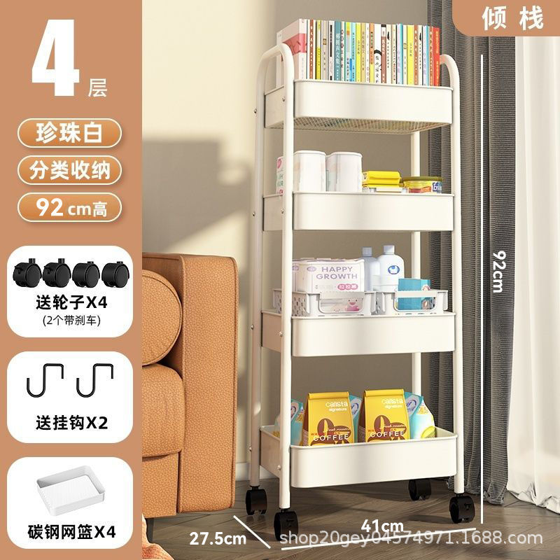 두꺼운 트롤리 탄소강 보관 랙 주방 거실 바닥 스탠딩 모바일 침실 다층 야채 재료 보관 랙스토어 가기