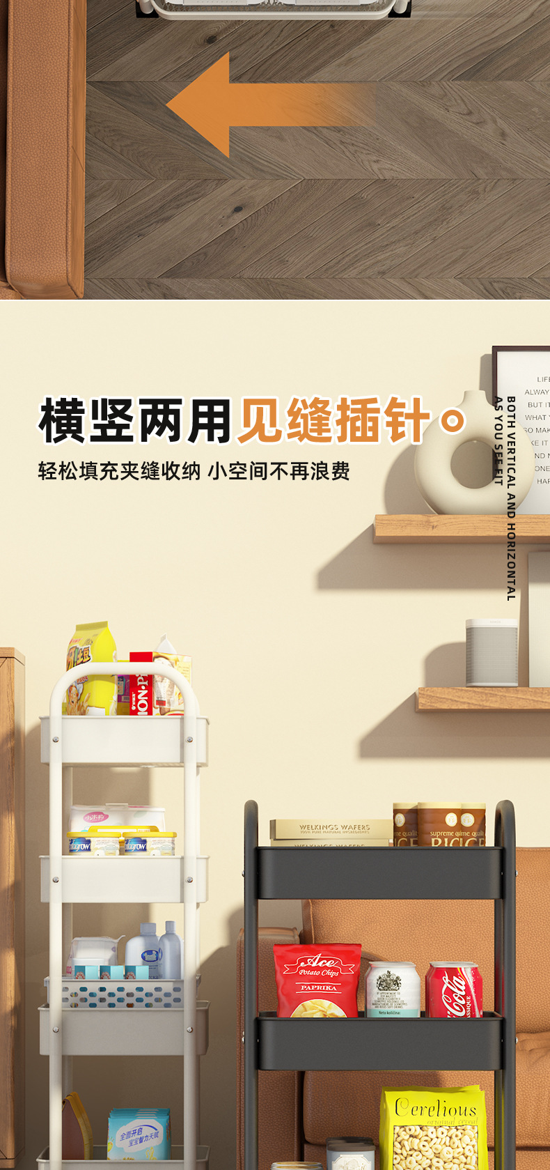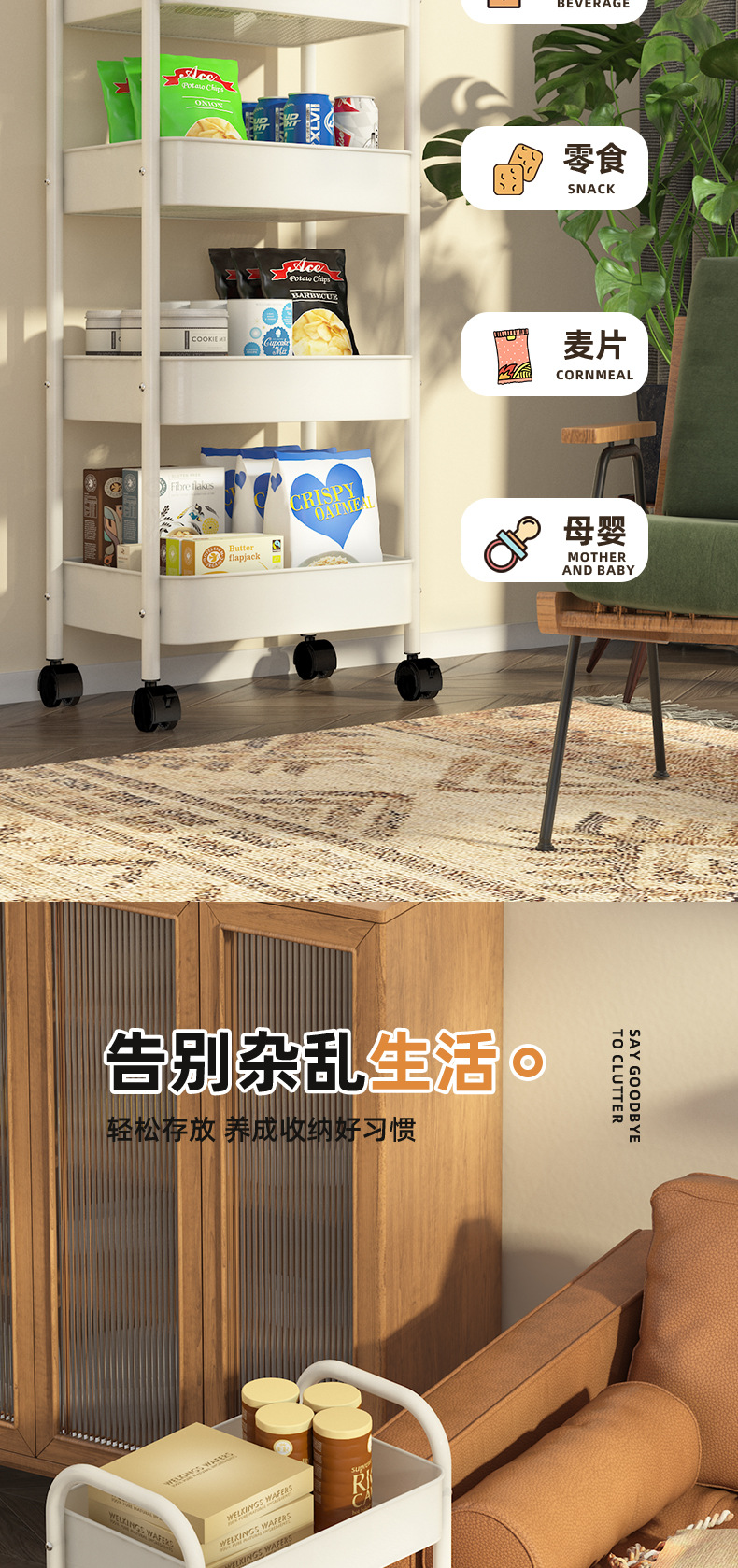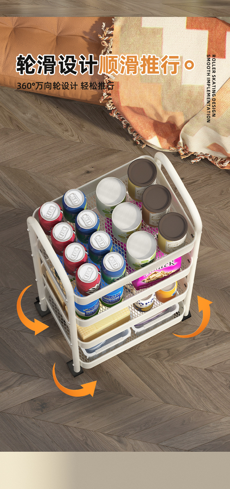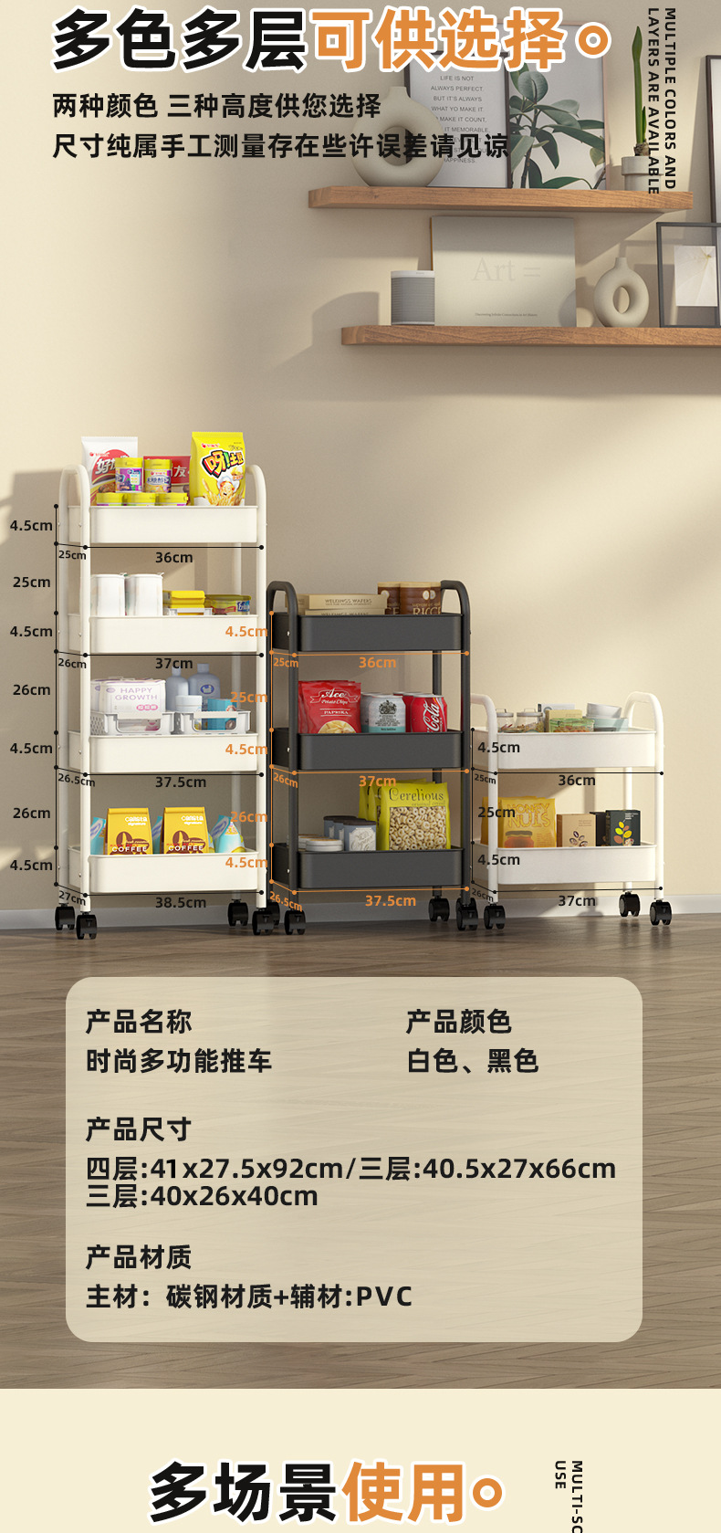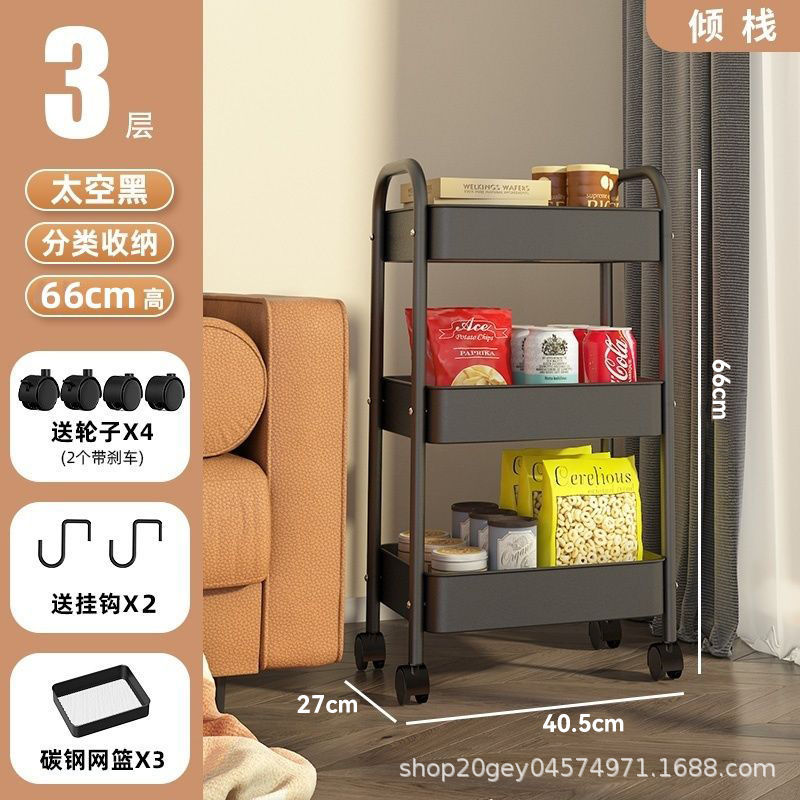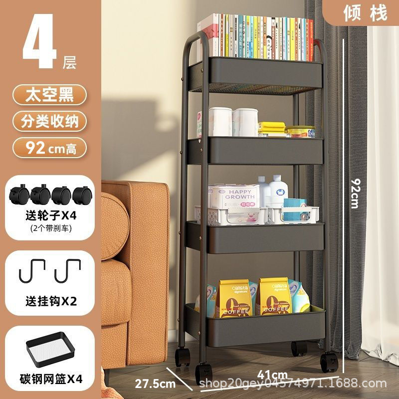 두꺼운 트롤리 탄소강 보관 랙 주방 거실 바닥 스탠딩 모바일 침실 다층 야채 재료 보관 랙