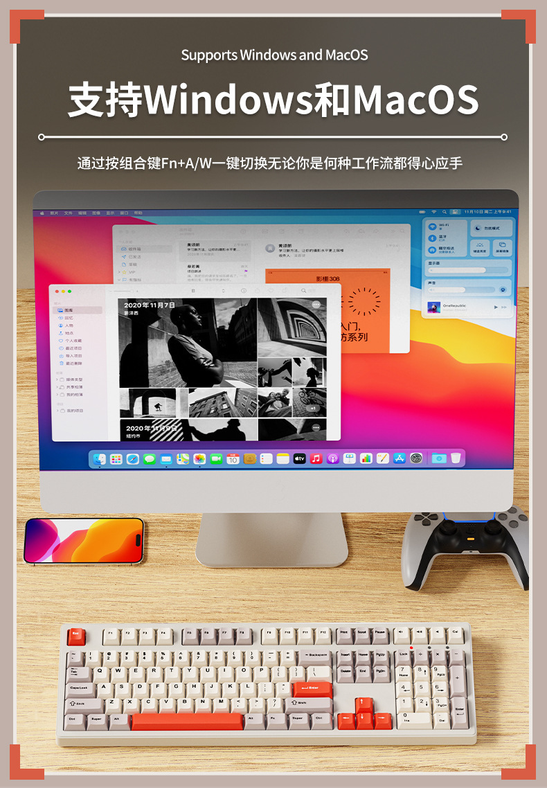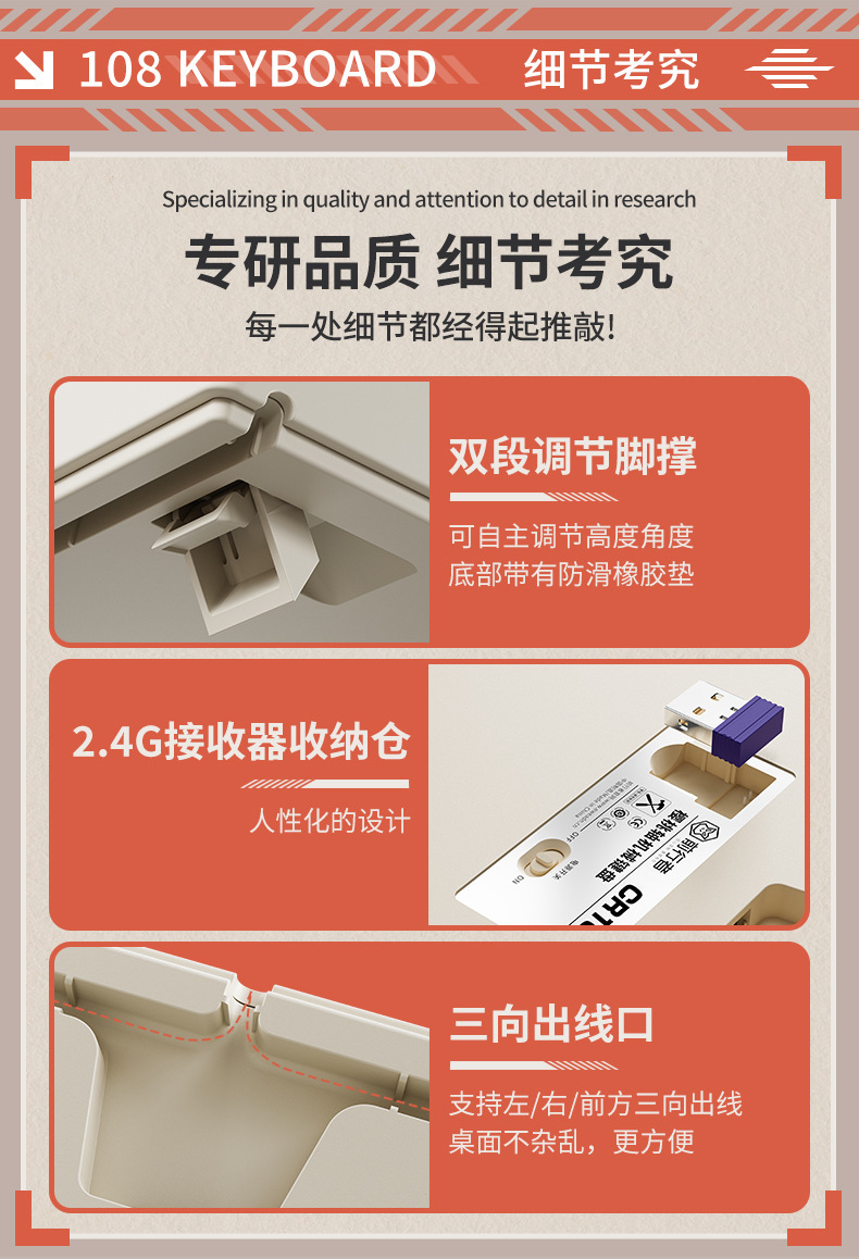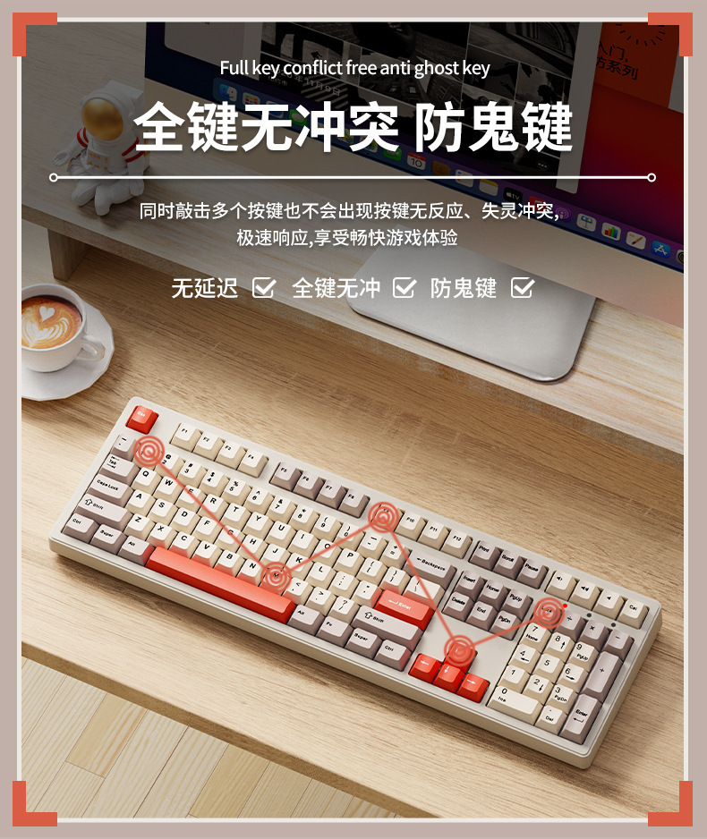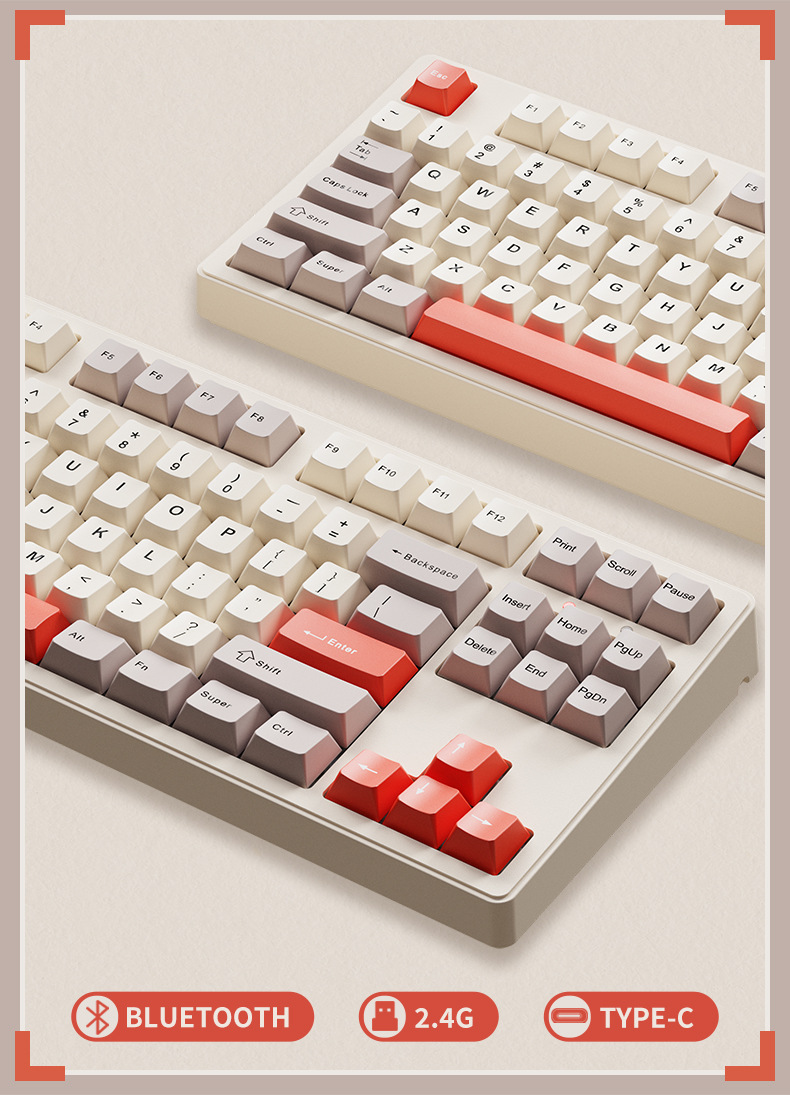 • [108키] 레트로 브라운-무선 블루투스 3모드 버전 + 3모드 무음 마우스