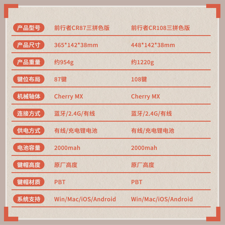 프리런더 CR108 체리 스위치 기계식 키보드 마우스 세트 무선 3모드 키보드 게임용 사무용 키보드스토어 가기