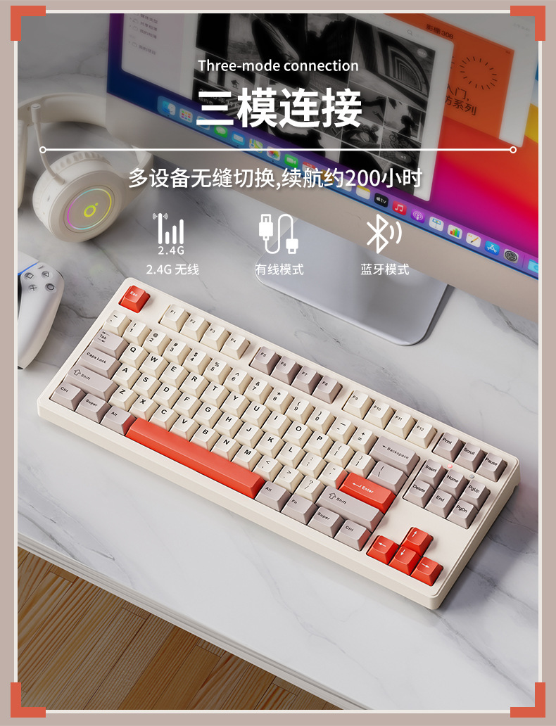 • Knight Black [108 키 - 일반 흰색 축] 무선 블루투스 3 모드