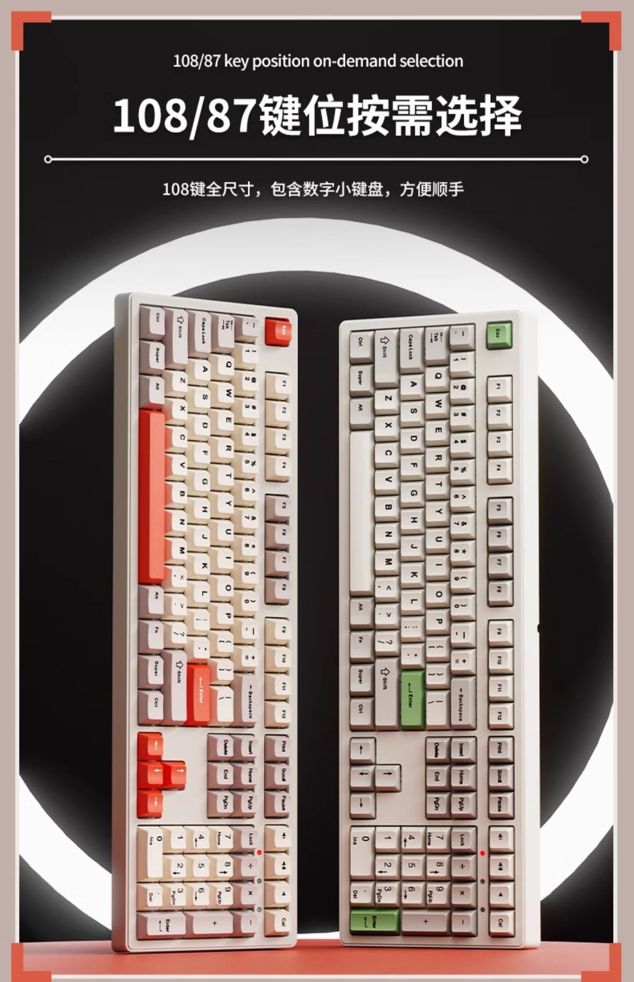 • 나이트 블랙 [108키 - 일반 녹색 축] 무선 블루투스 3모드