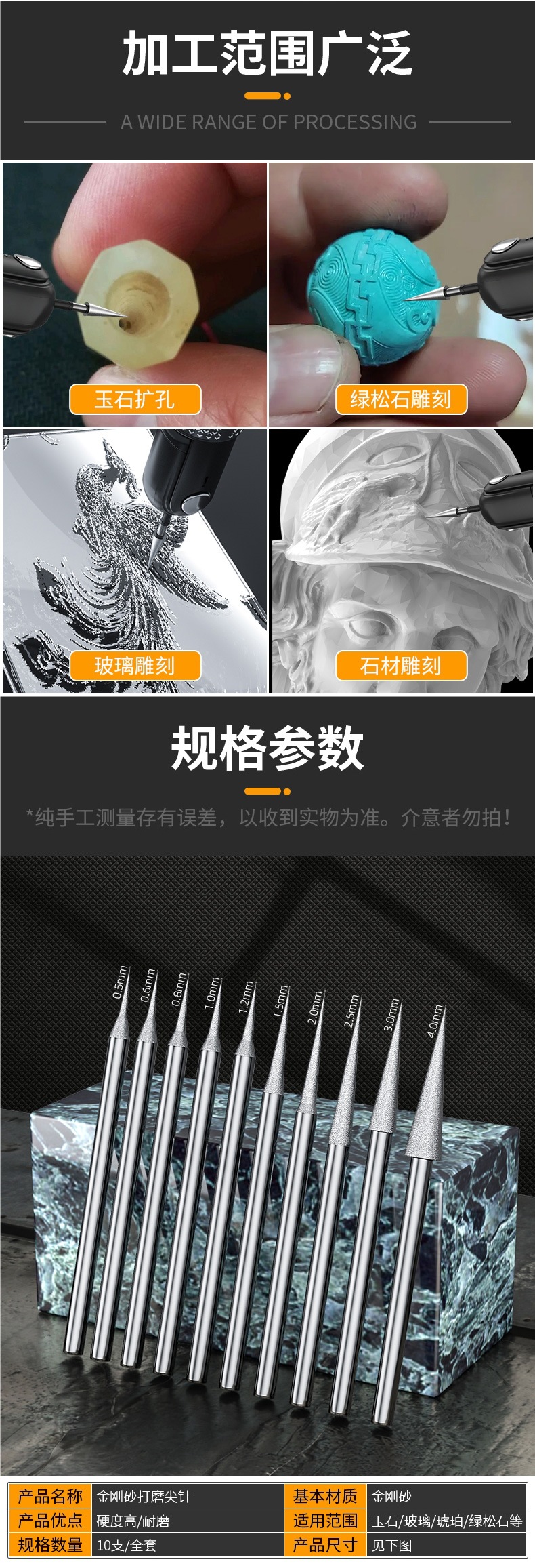 에머리 연삭 바늘 길어진 옥 연마 도구 Wen 놀이 옥 조각 진주 리밍 미세 모래 팁 연삭 헤드