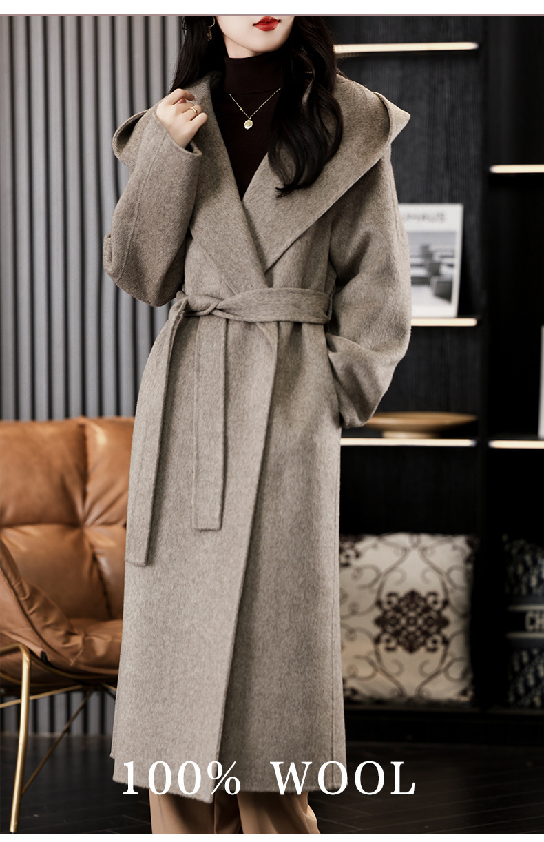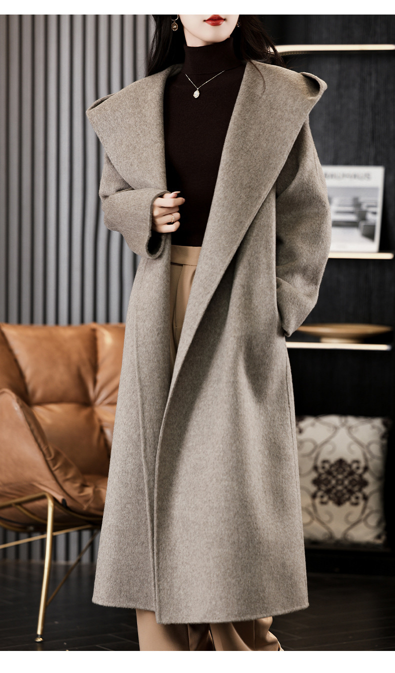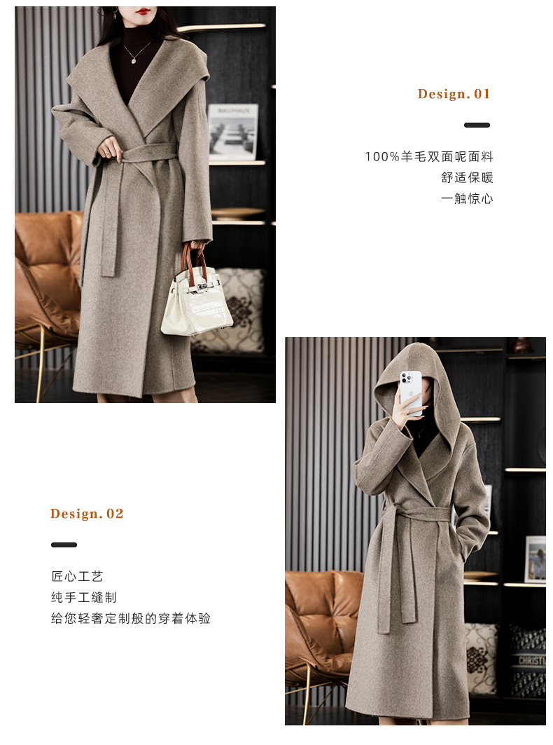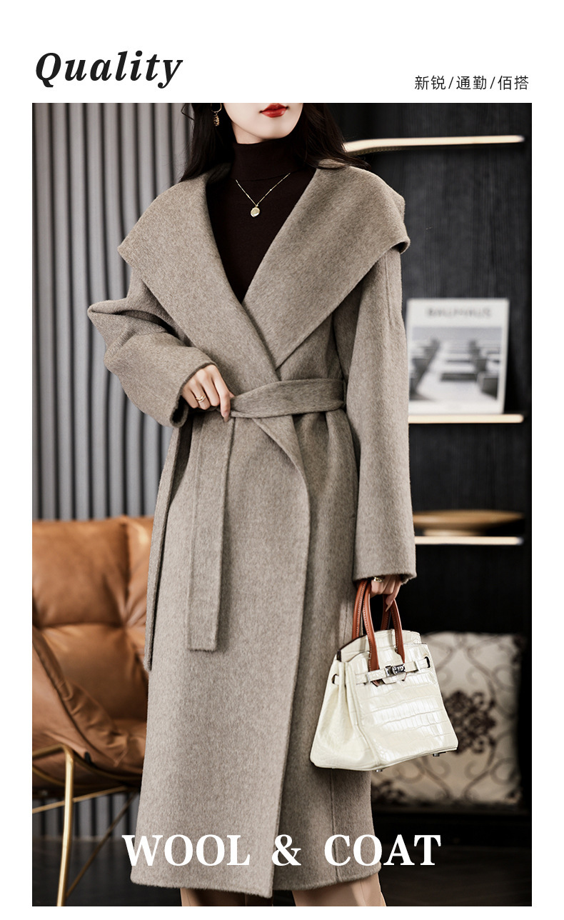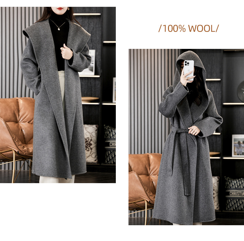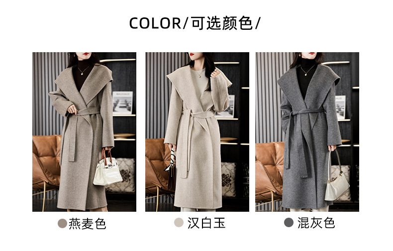 가을과 겨울 후드 코트 여성의 새로운 양면 캐시미어 하이 엔드 루즈 플러스 사이즈 롱 모직 세트 재킷스토어 가기