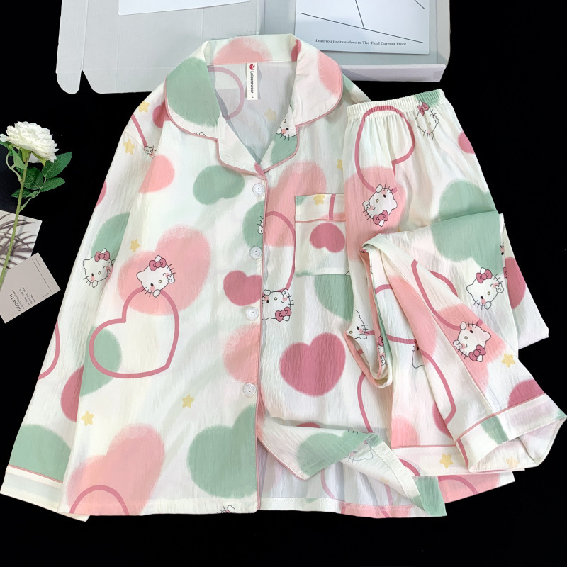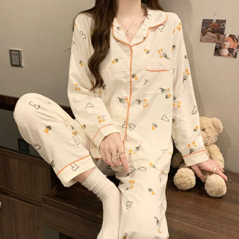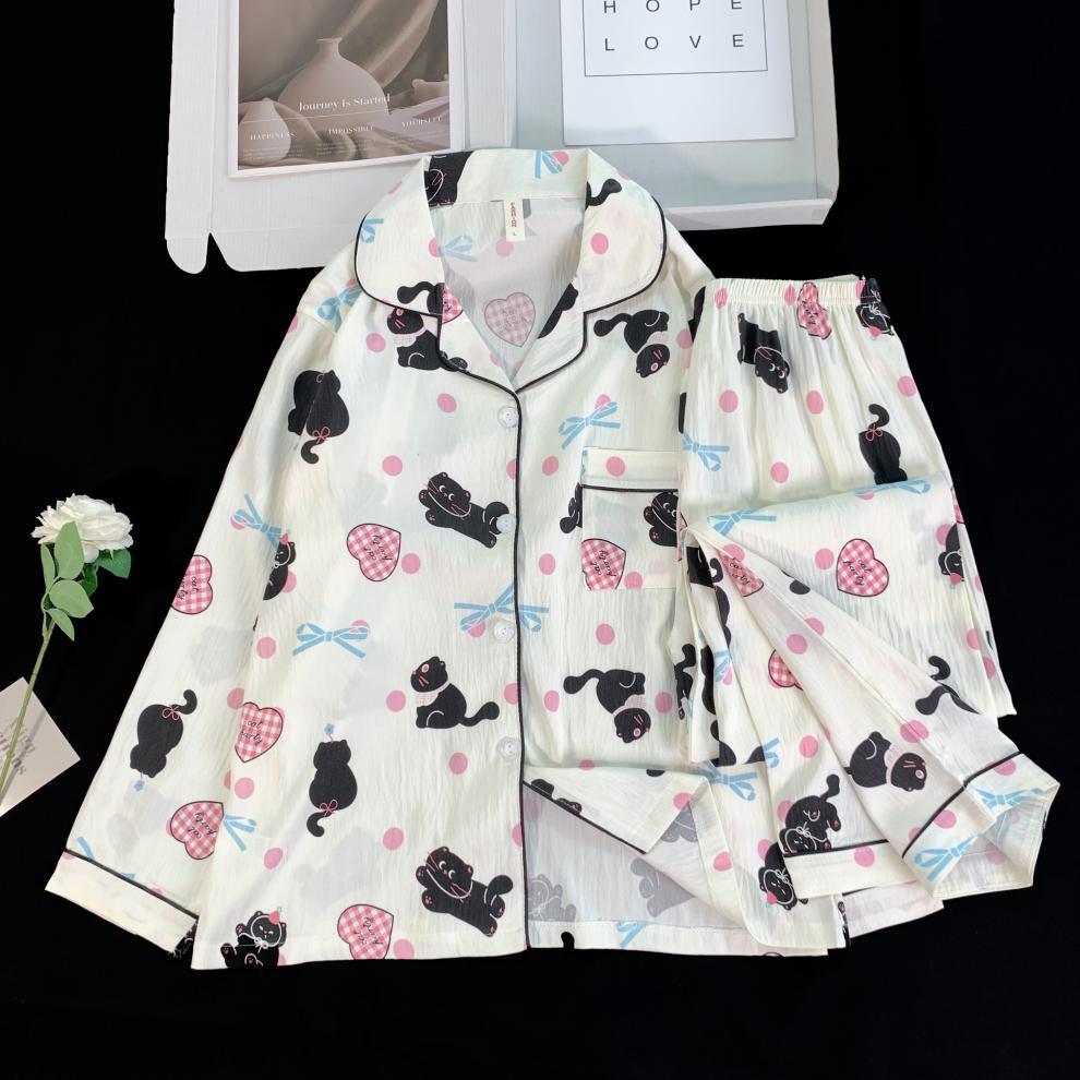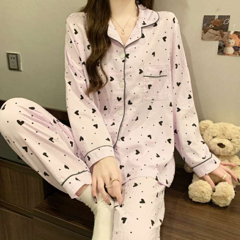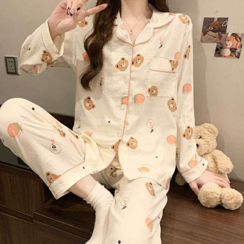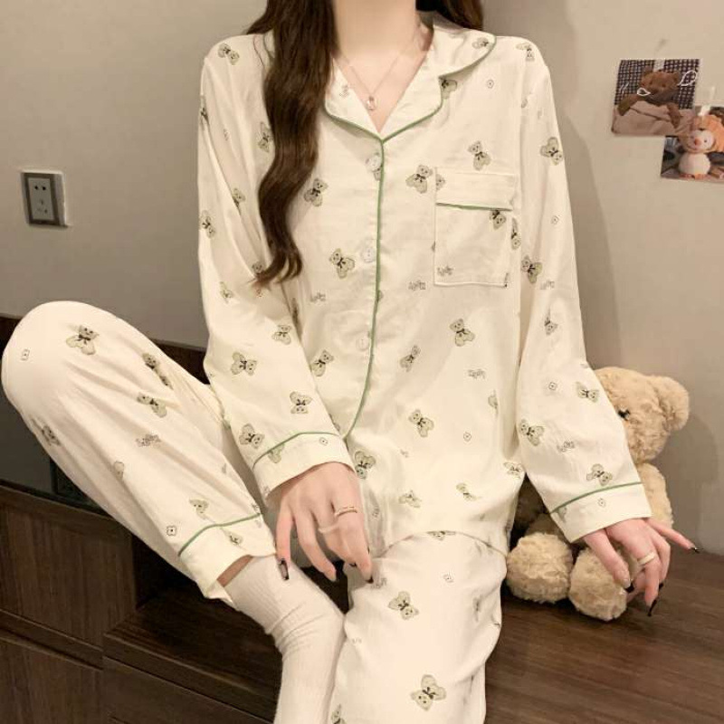 여성용 잠옷 봄 가을 투피스 세트 만화 긴팔 구름면 학생 홈웨어 세트 인스 소녀 스타일스토어 가기