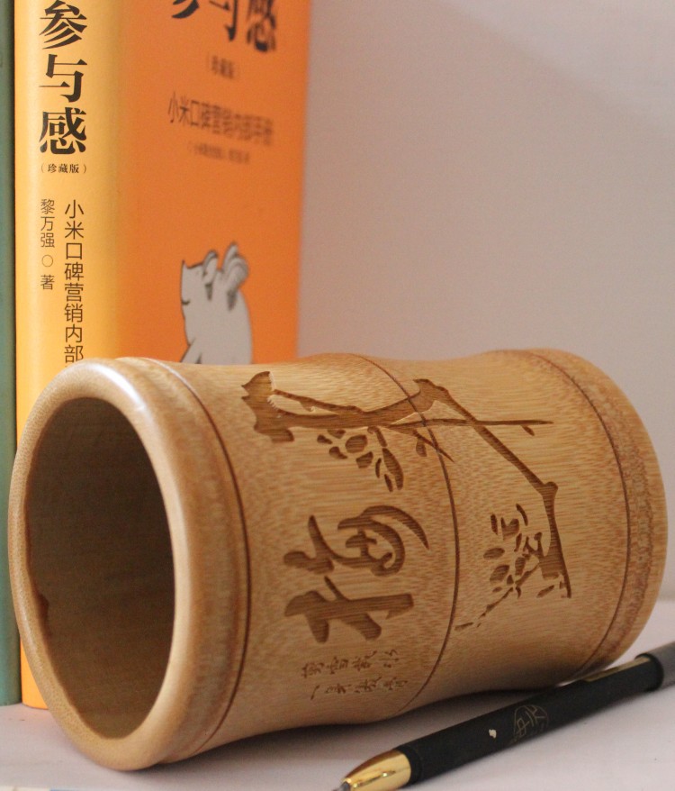 원래 대나무 펜 저장 상자 조각 빈티지 나무 자연 창조적 인 사무실 책상 Meilan 국화 간단한 장식 펜 배럴