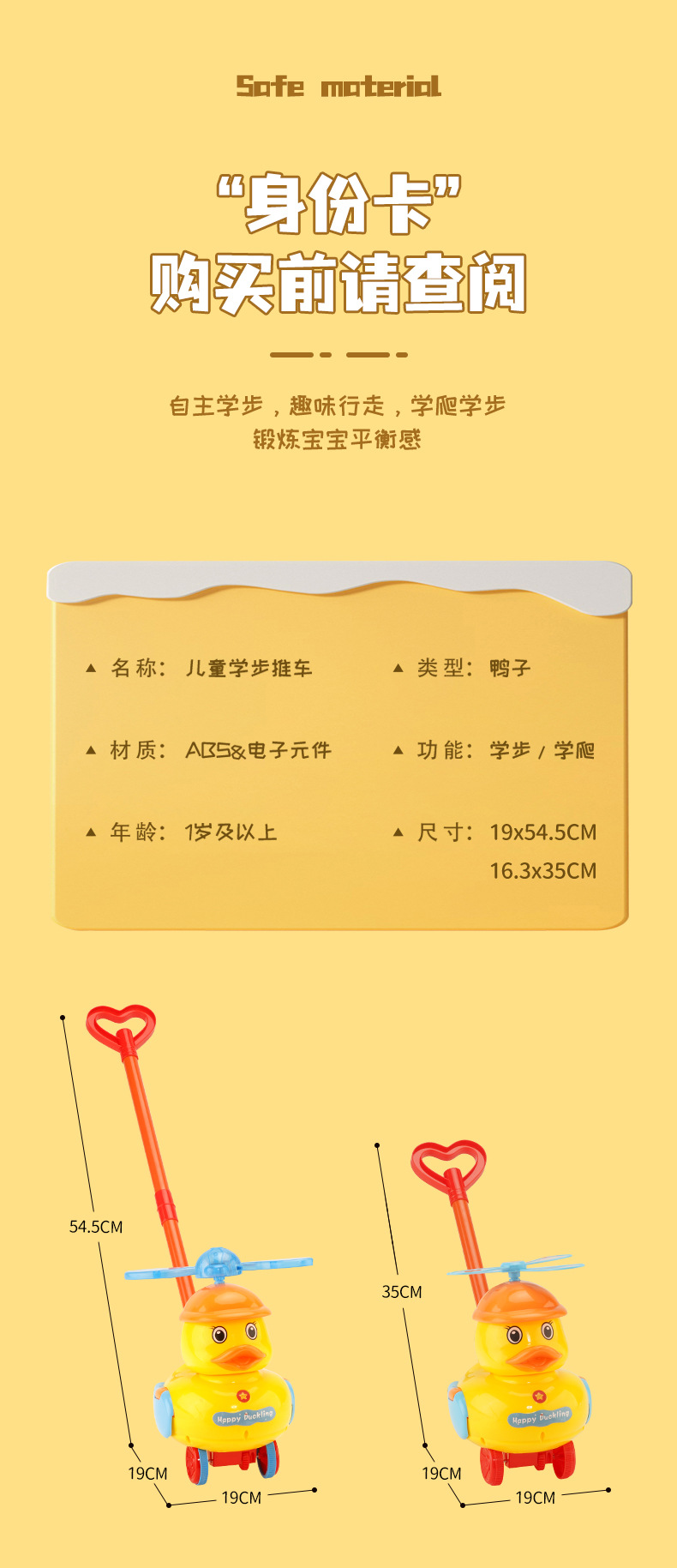 아기 유아 트롤리 다기능 워커 링 핸드 푸시 스톨 장난감 선물 작은 오리 푸시 음악