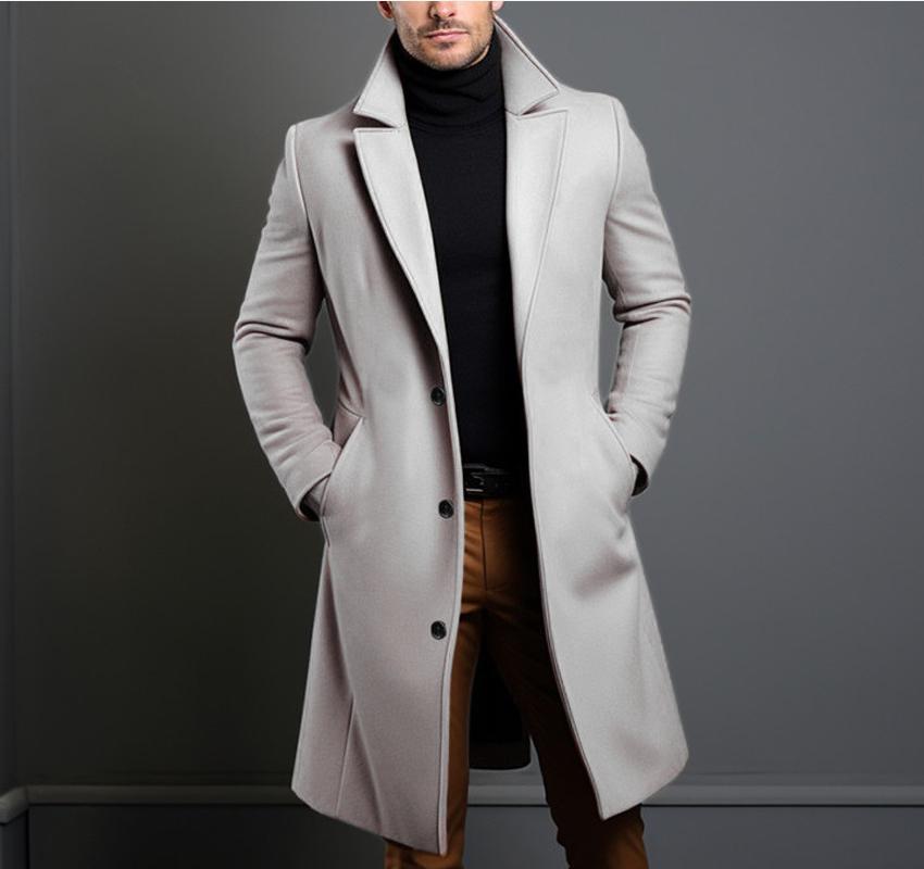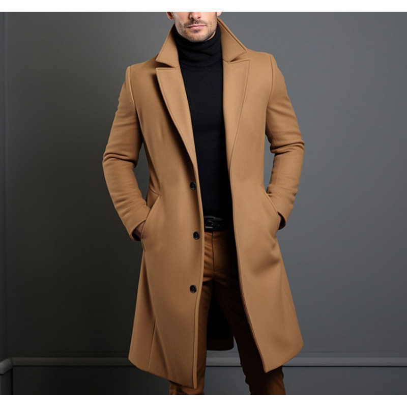 2025 신상 남성용 중간 길이 단색 가을 겨울 모직 코트 따뜻한 청년용 코트