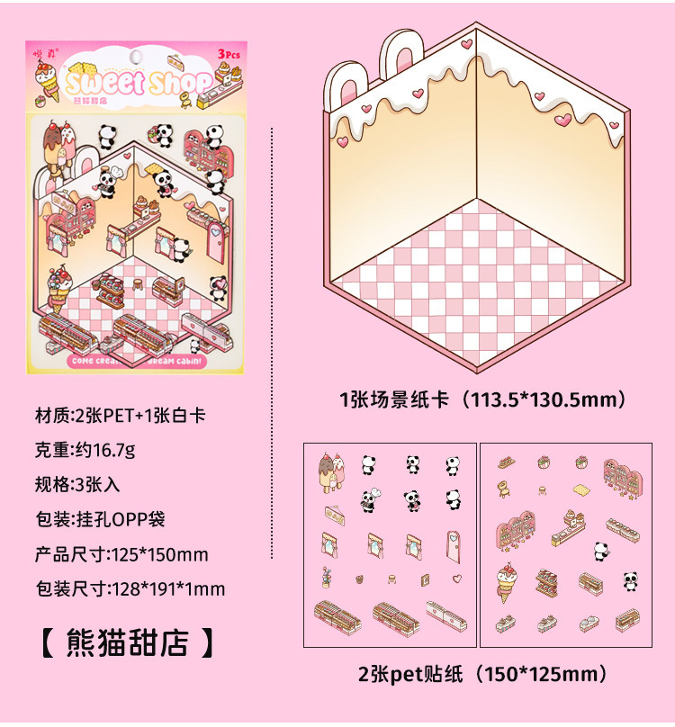 팬더 하우스 3D 입체 풍경 애완 동물 스티커 DIY 창조적 인 미니어처 만화 손 계정 장식 장면 퍼즐 스티커스토어 가기