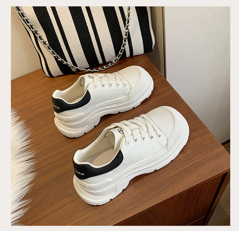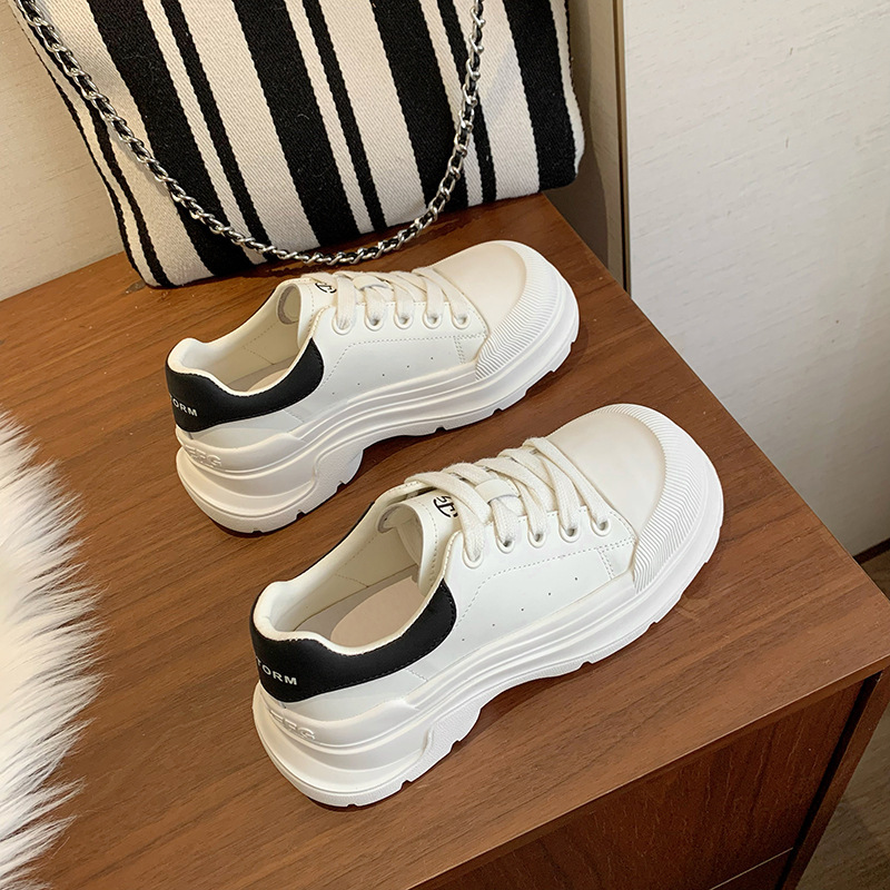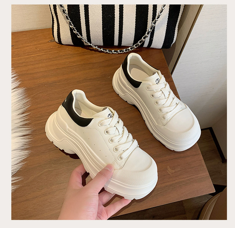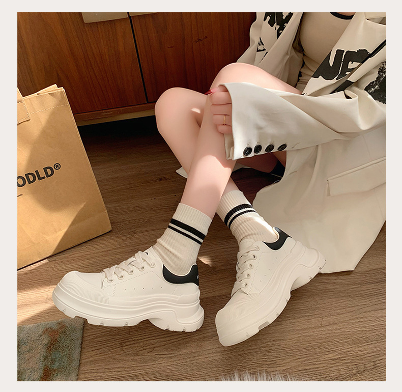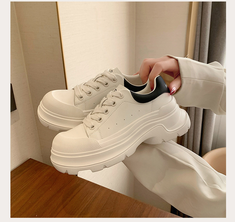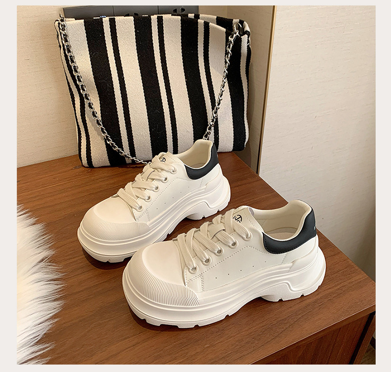 두꺼운 바닥 작은 흰색 신발 여자 2025 봄 새로운 올 매치 한국식 스케이트 신발 폭발적인 하이 센스 레이스 업 스포츠 캐주얼 신발스토어 가기