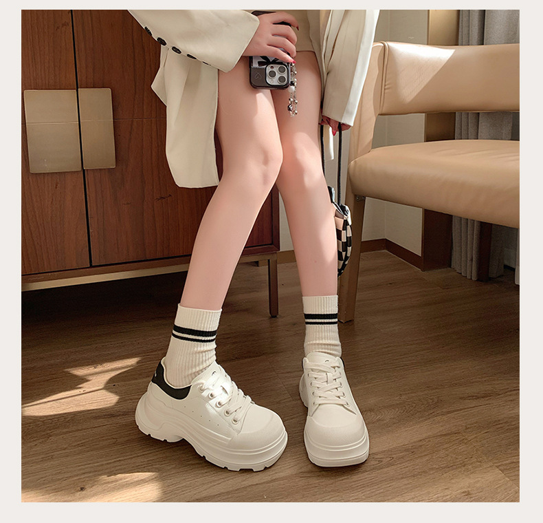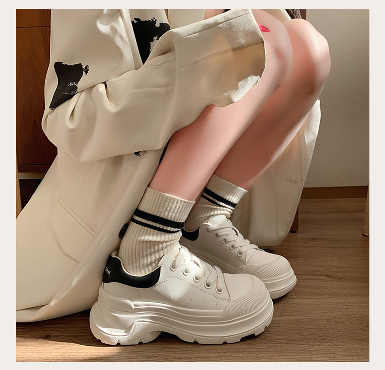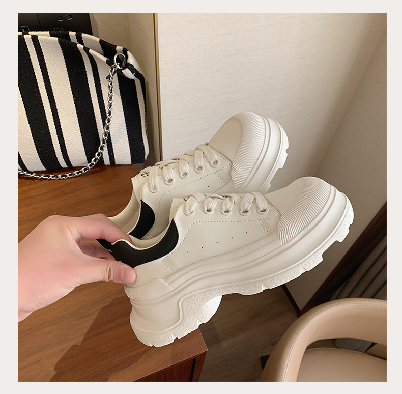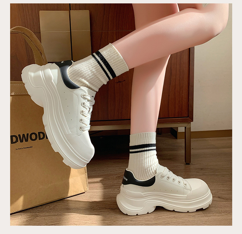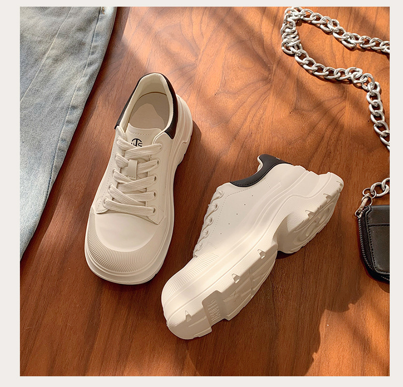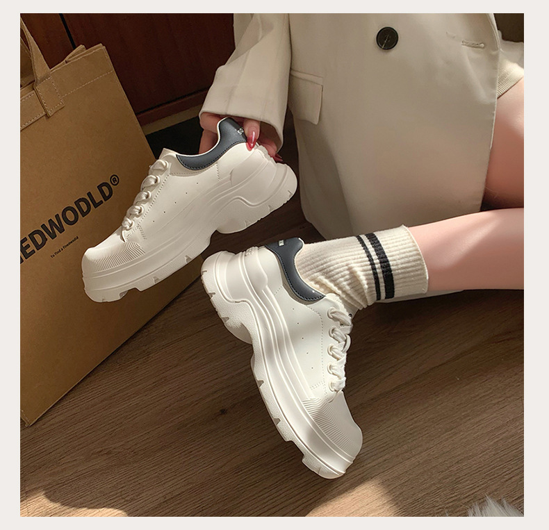 두꺼운 바닥 작은 흰색 신발 여자 2025 봄 새로운 올 매치 한국식 스케이트 신발 폭발적인 하이 센스 레이스 업 스포츠 캐주얼 신발스토어 가기