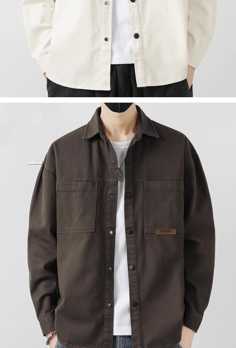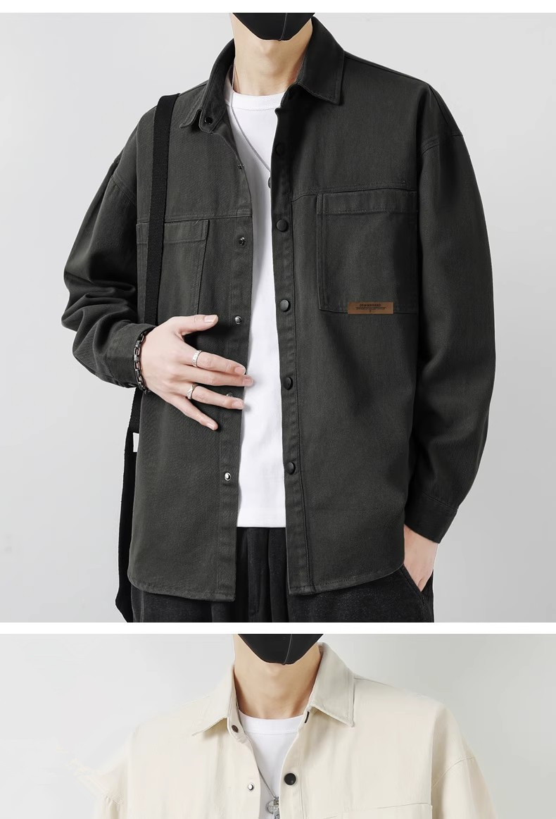 크록 셔츠 코트 남자의 느슨한 캐주얼 2025 봄 패션 브랜드 일본 스타일 빈티지 코튼 카디건 셔츠스토어 가기