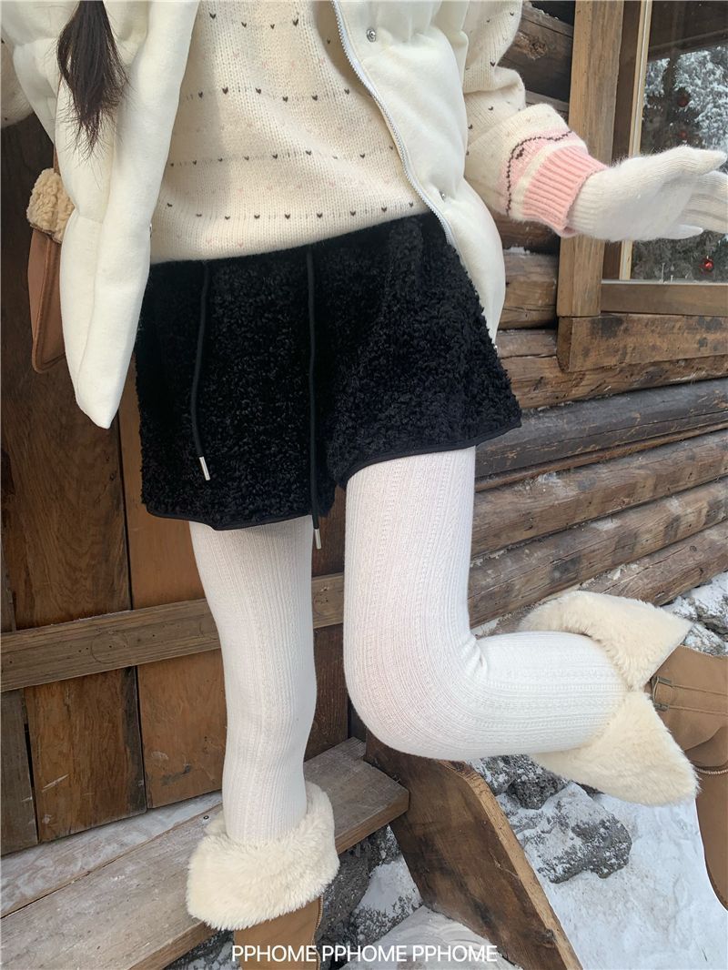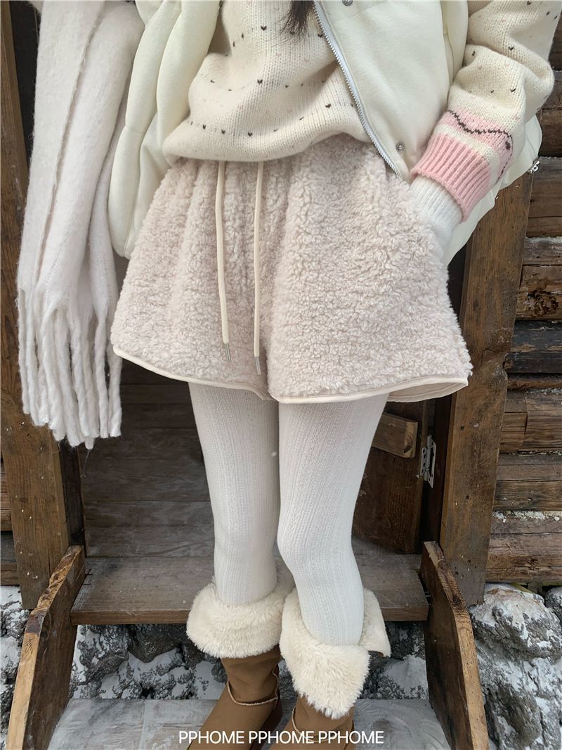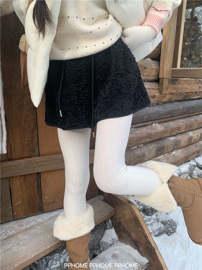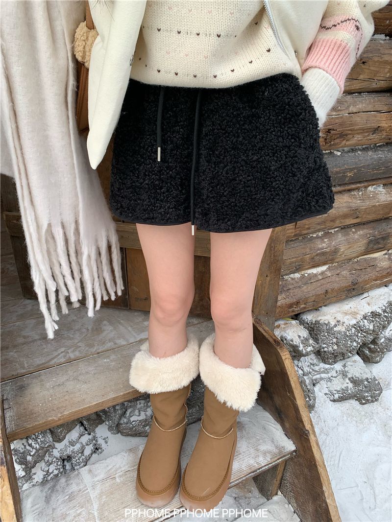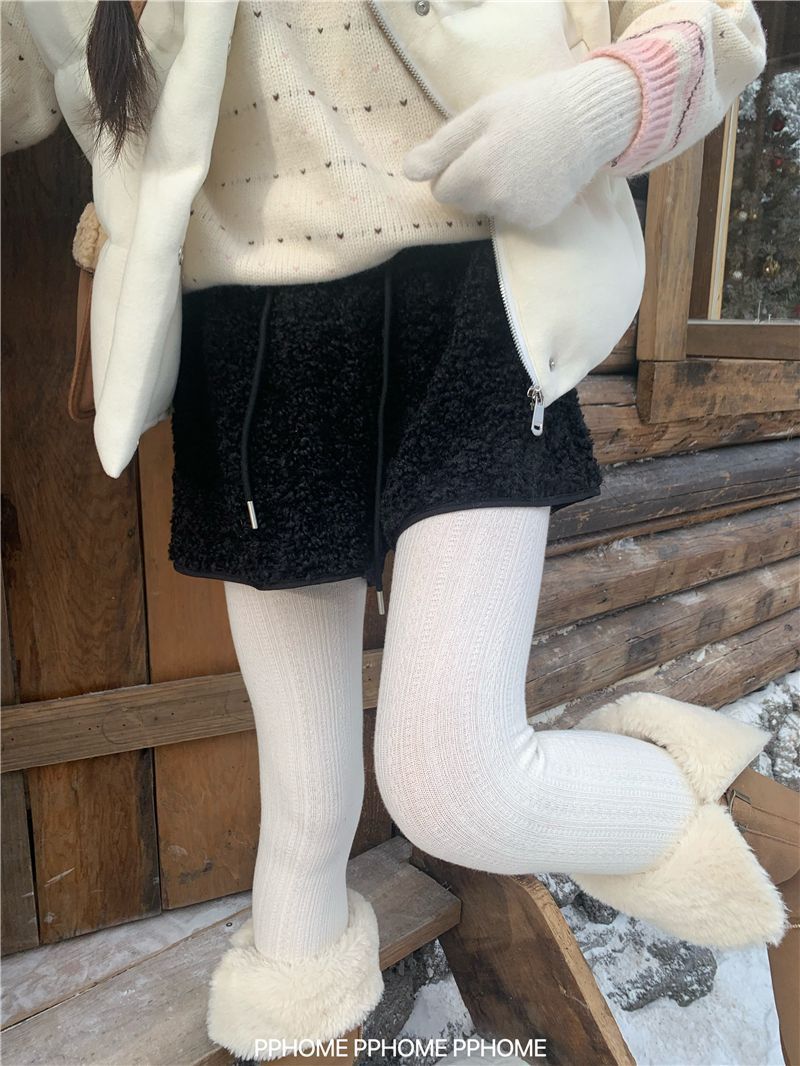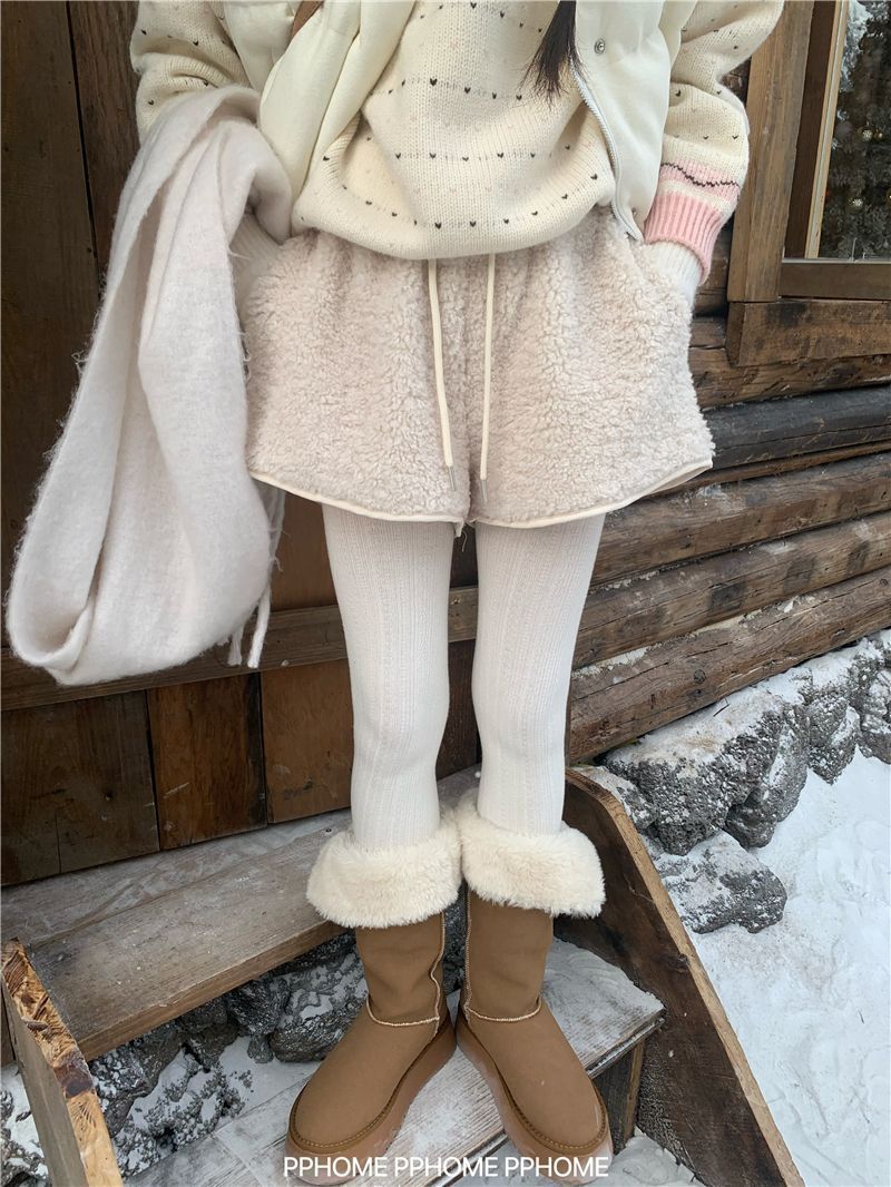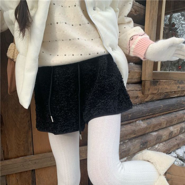 탄성 허리 양모 캐주얼 바지 여성의 겨울 작은 패딩 플러시 넓은 다리 반바지 회색 핫 팬츠