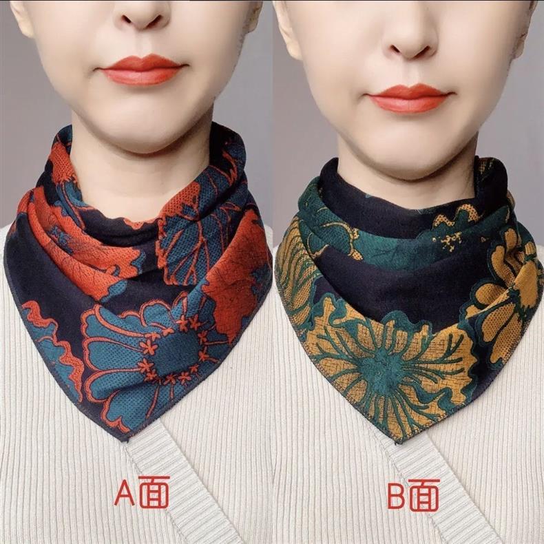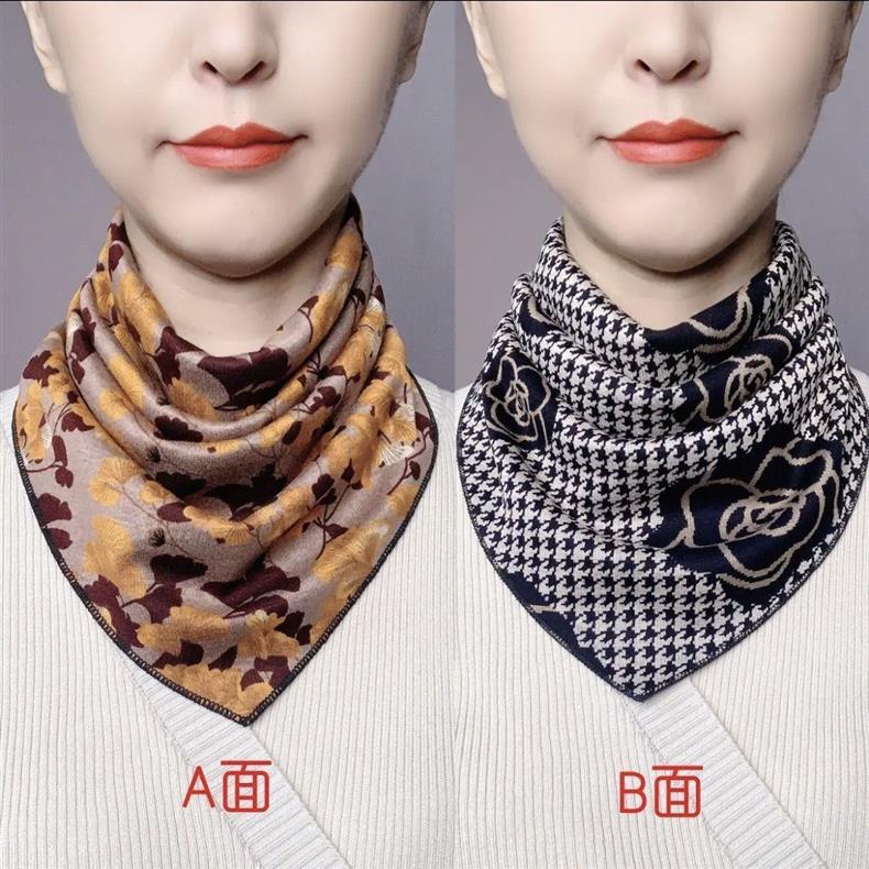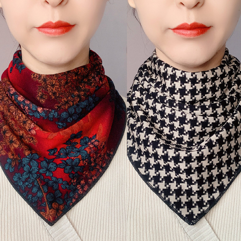 [양면 더블 레이어 버튼 삼각형 타월] 호주 벨벳 코튼 가을과 겨울 목 보호 따뜻한 스카프 브로치와 새로운 팡