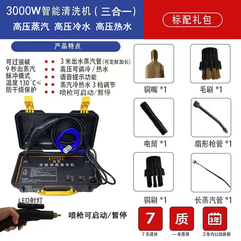 • 3000W 가정용 표준 구성 - 수압 9KG [스팀 + 냉수 + 온수] 스프레이 건 시작 및 정지 + 음성
