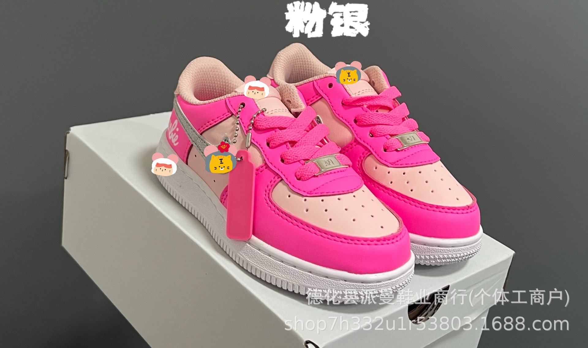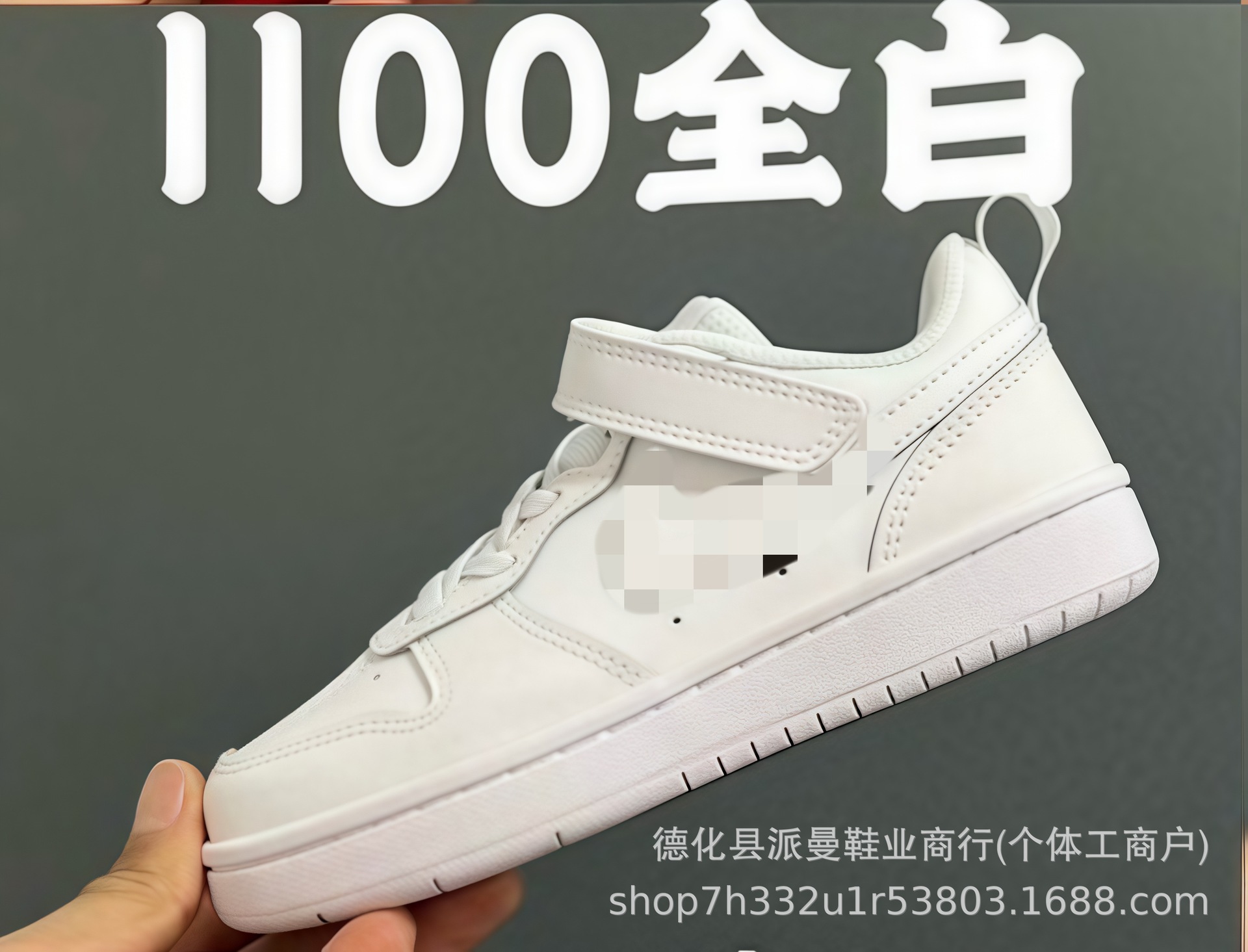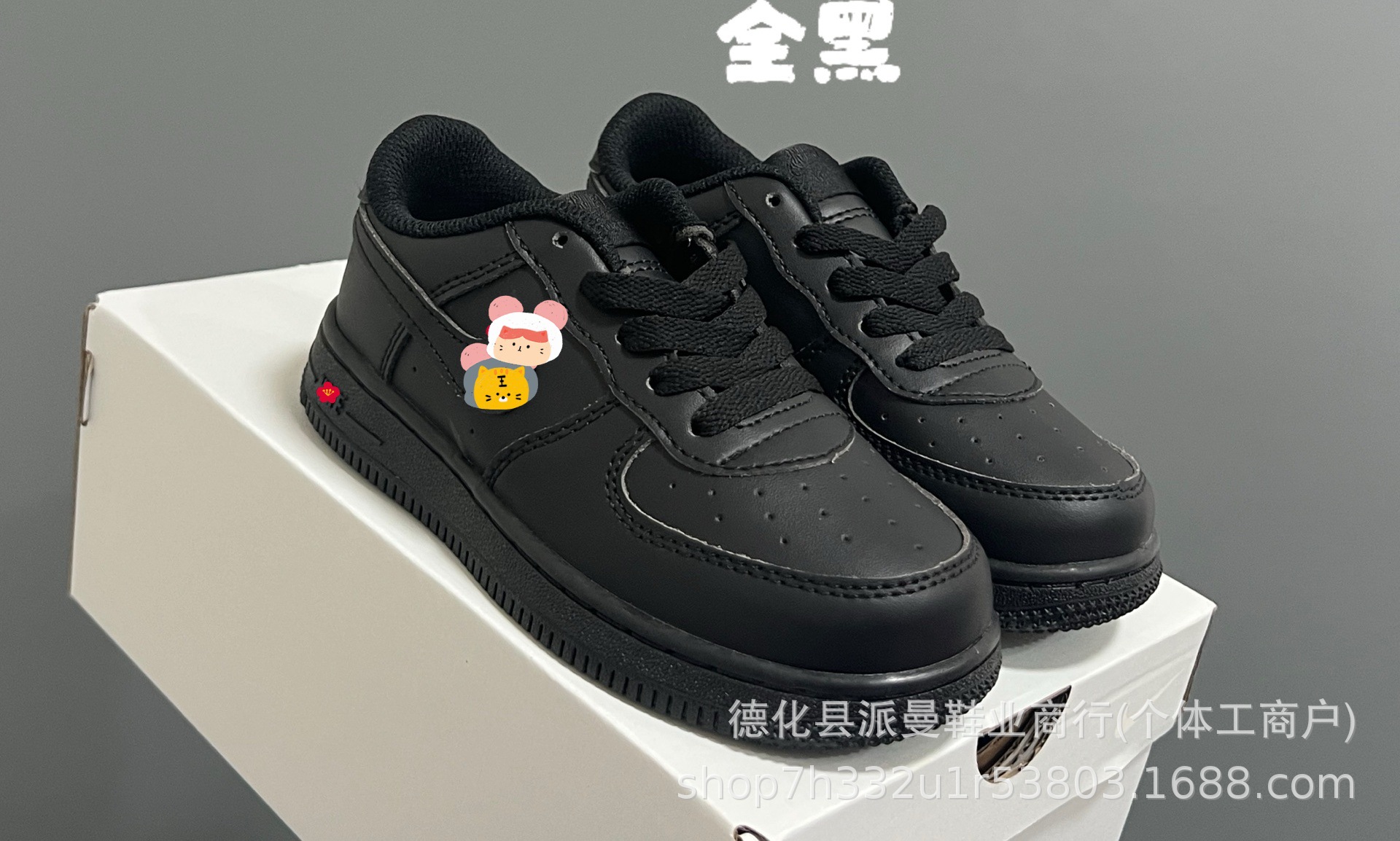 푸티안 아동화 에어포스원(1) 봄 가을 트렌디한 스포츠 로우탑 벨크로 스니커즈 화이트 슈즈