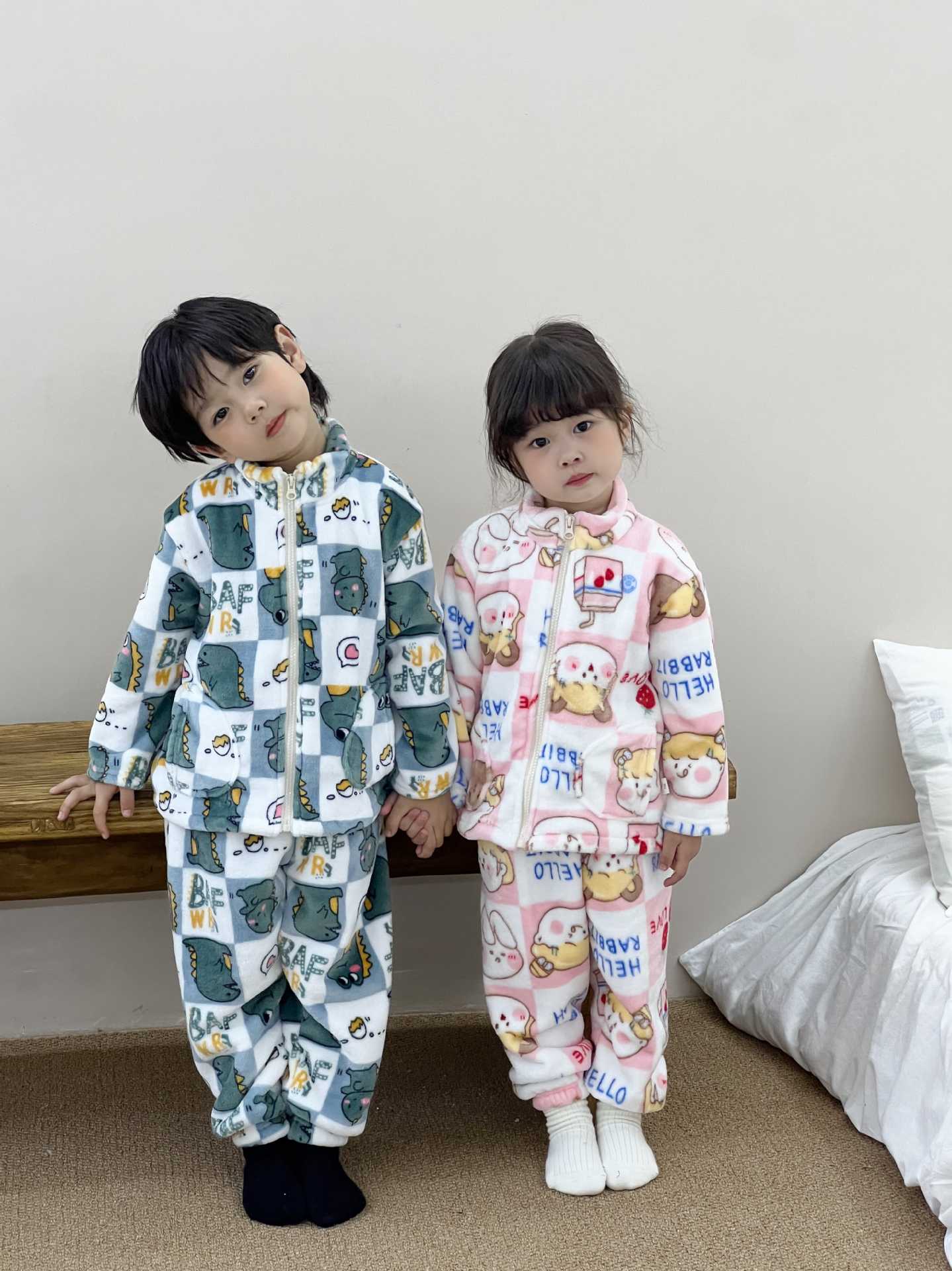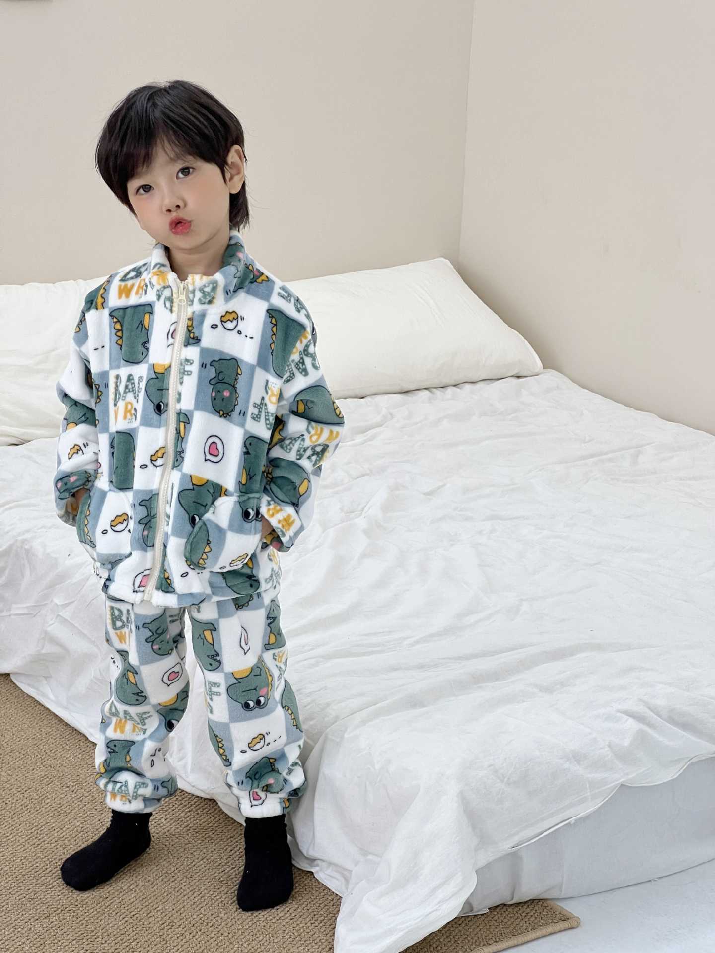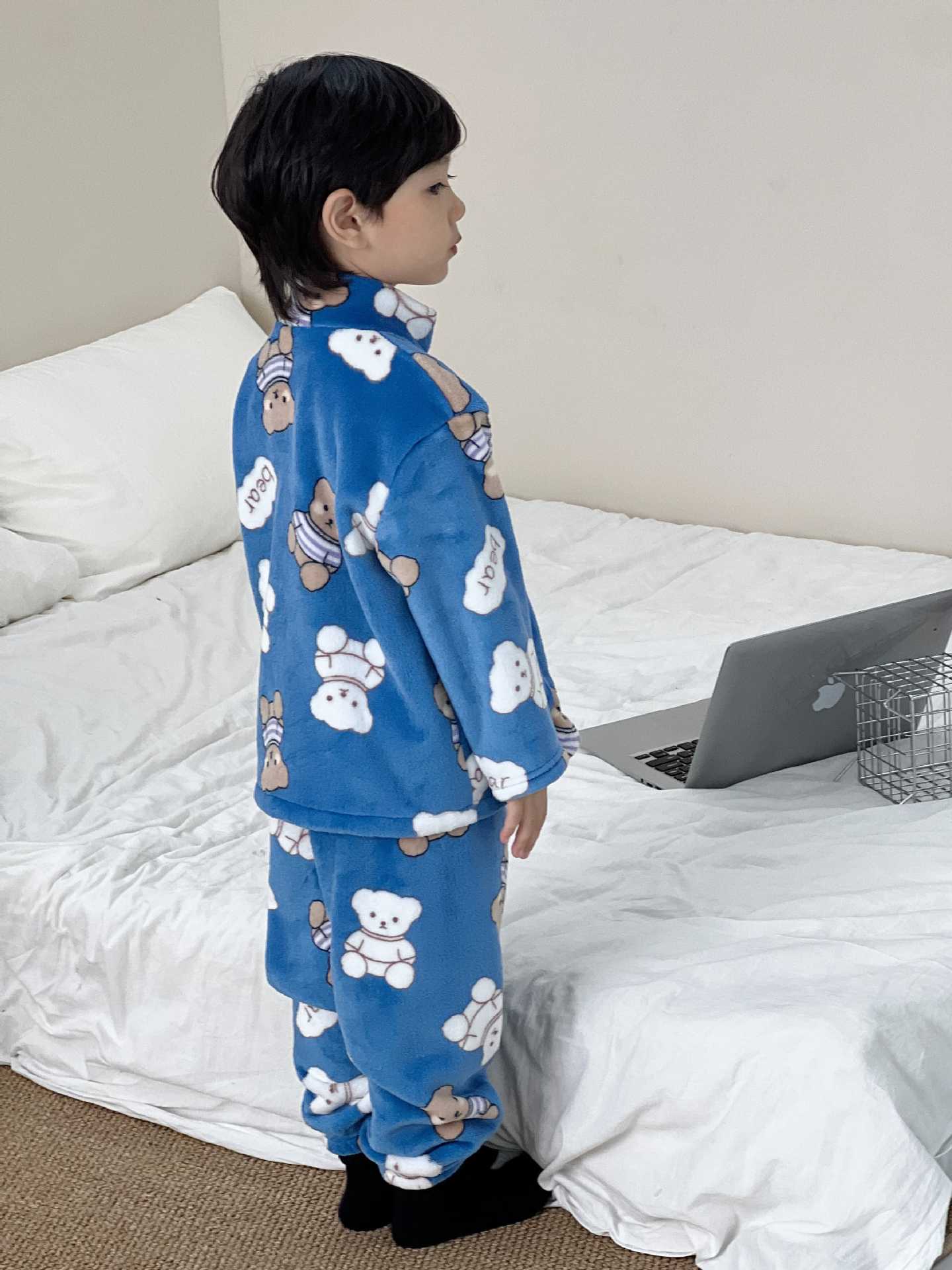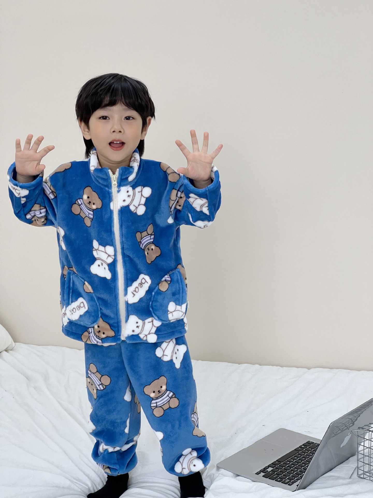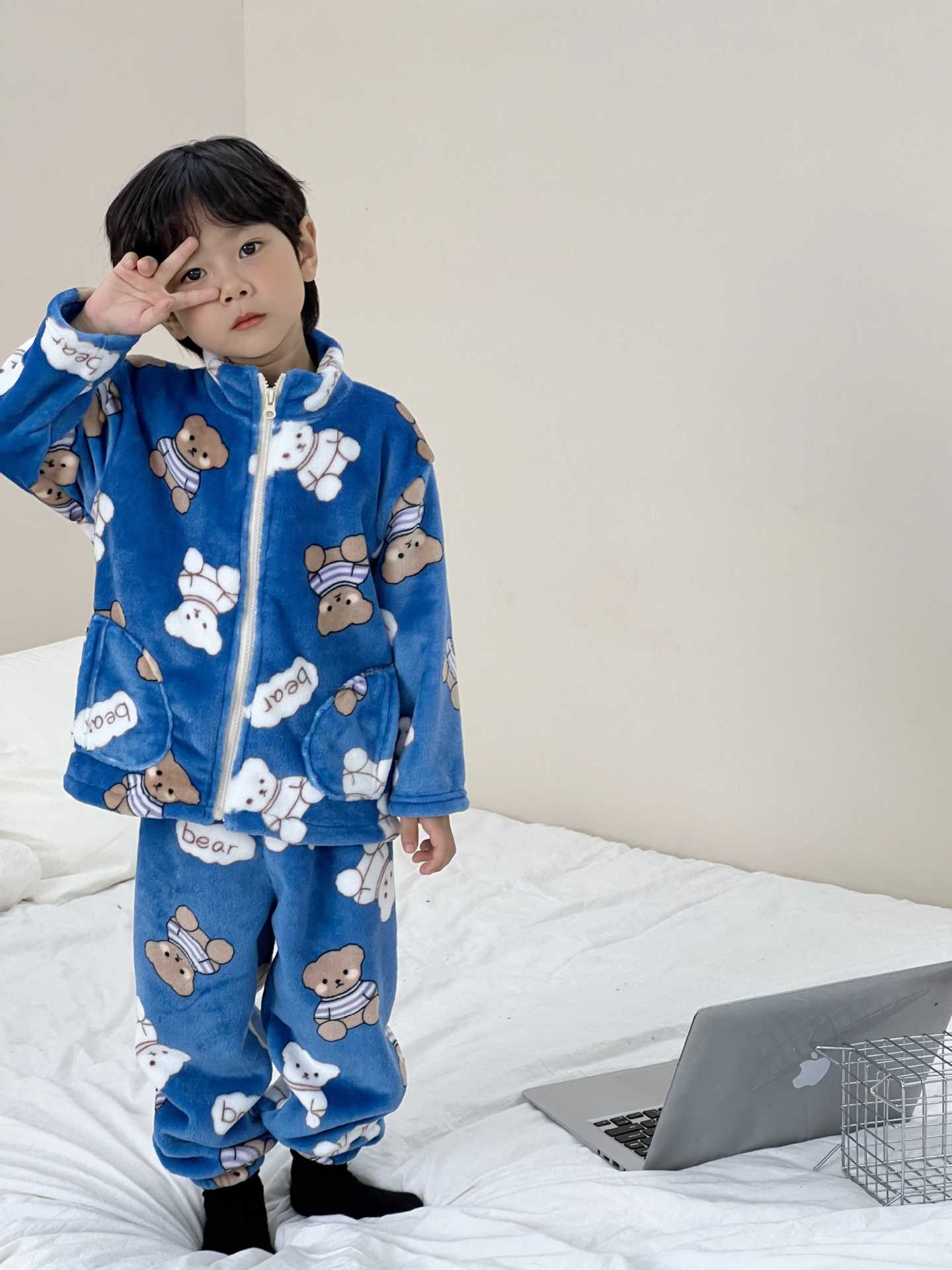 어린이 잠옷 가을과 겨울 플란넬 산호 양털 기모 두꺼운 겨울 소년의 집 옷 아기 세트 만화스토어 가기