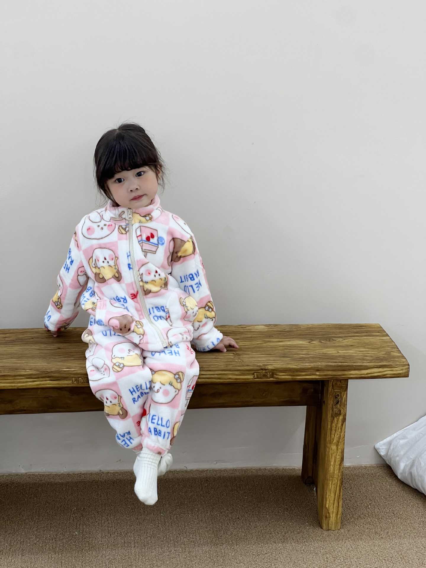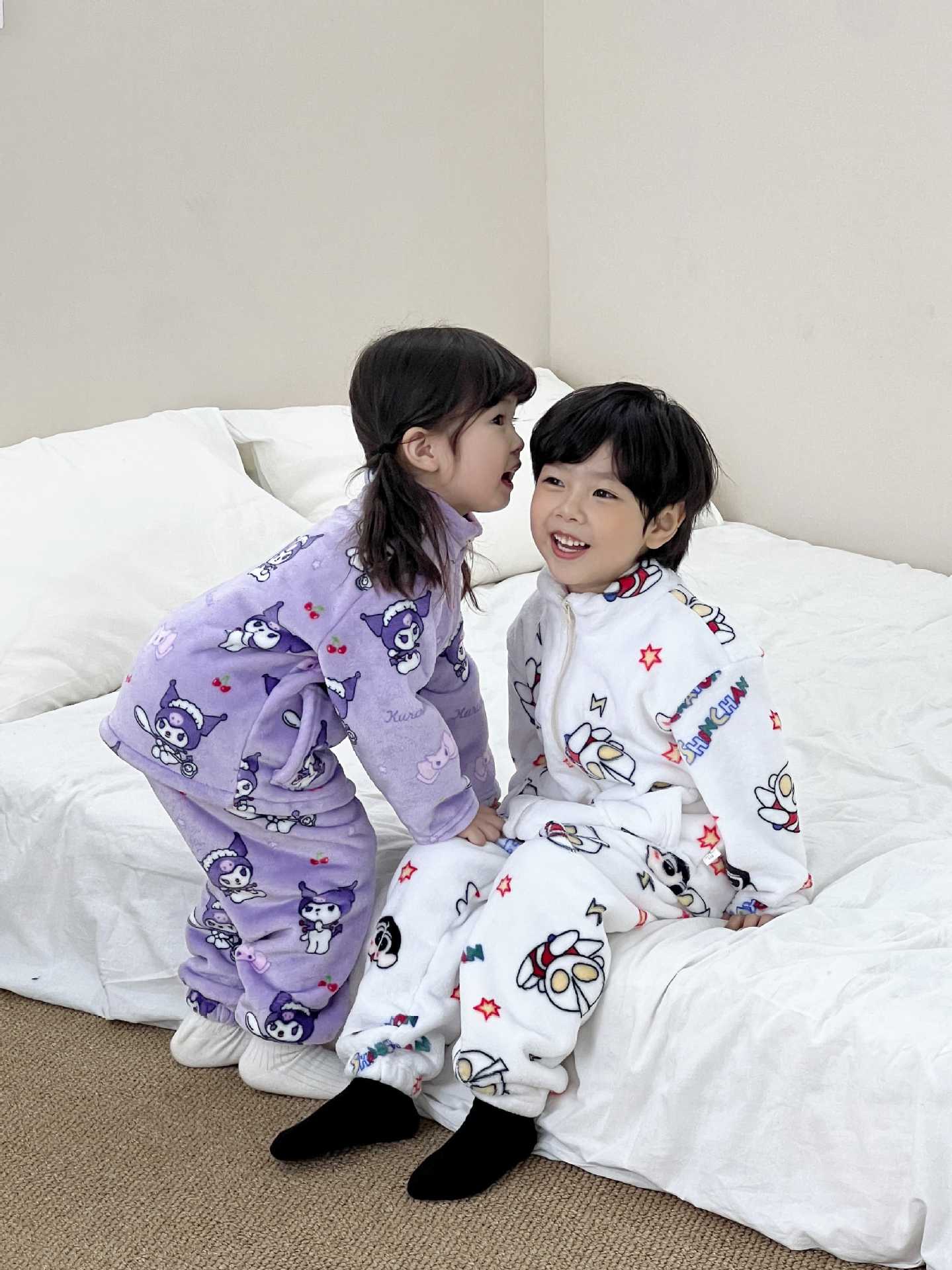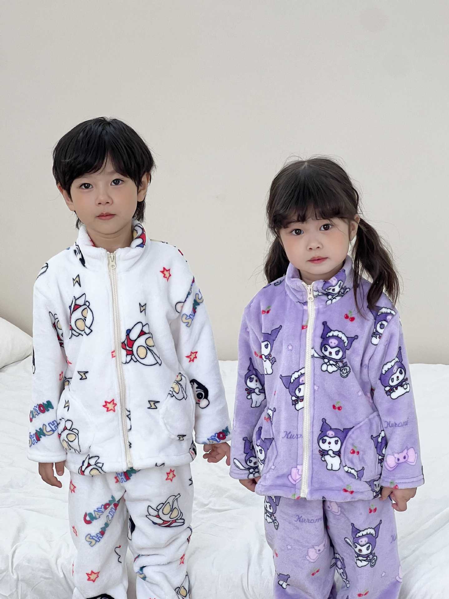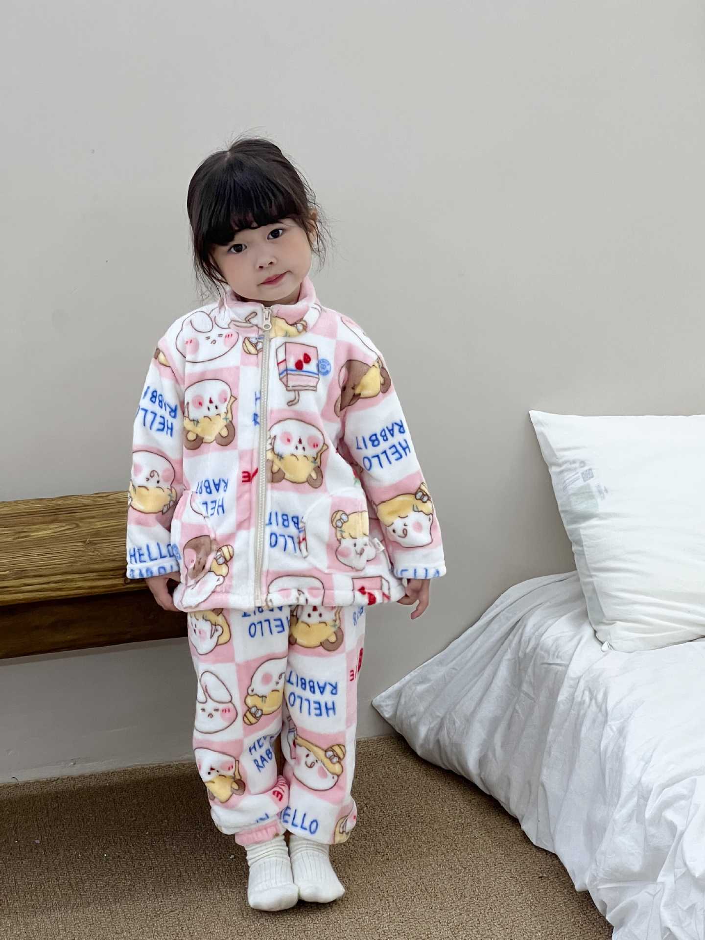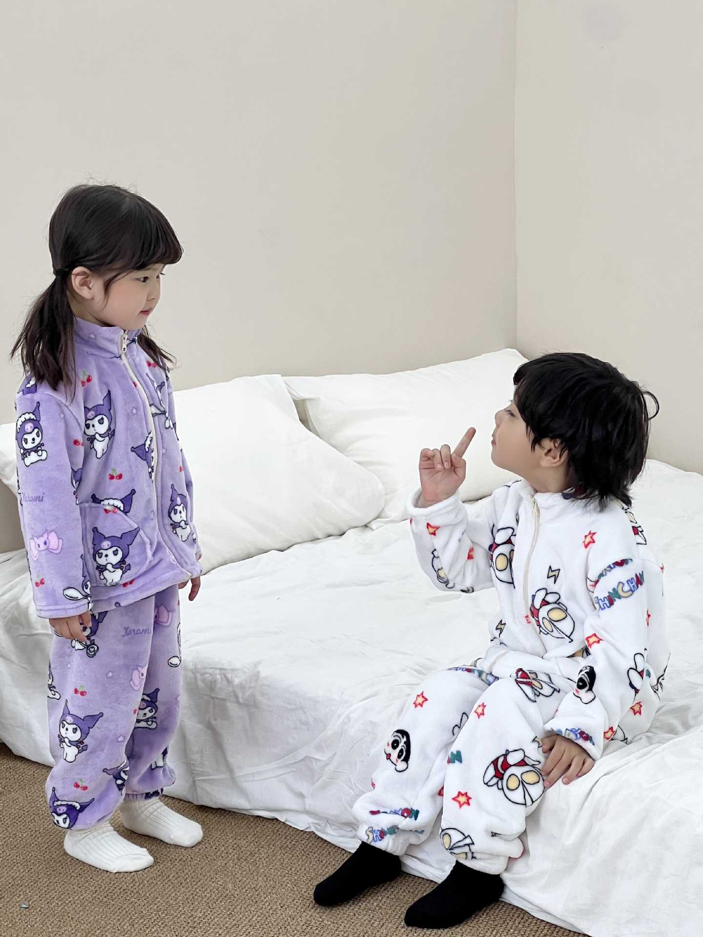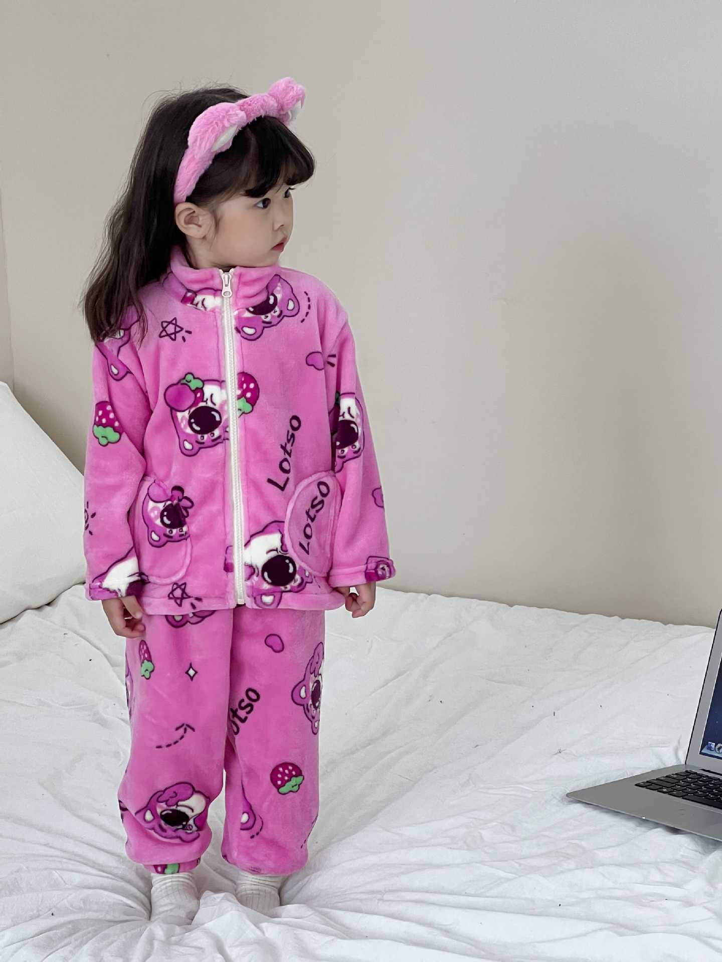 어린이 잠옷 가을과 겨울 플란넬 산호 양털 기모 두꺼운 겨울 소년의 집 옷 아기 세트 만화스토어 가기