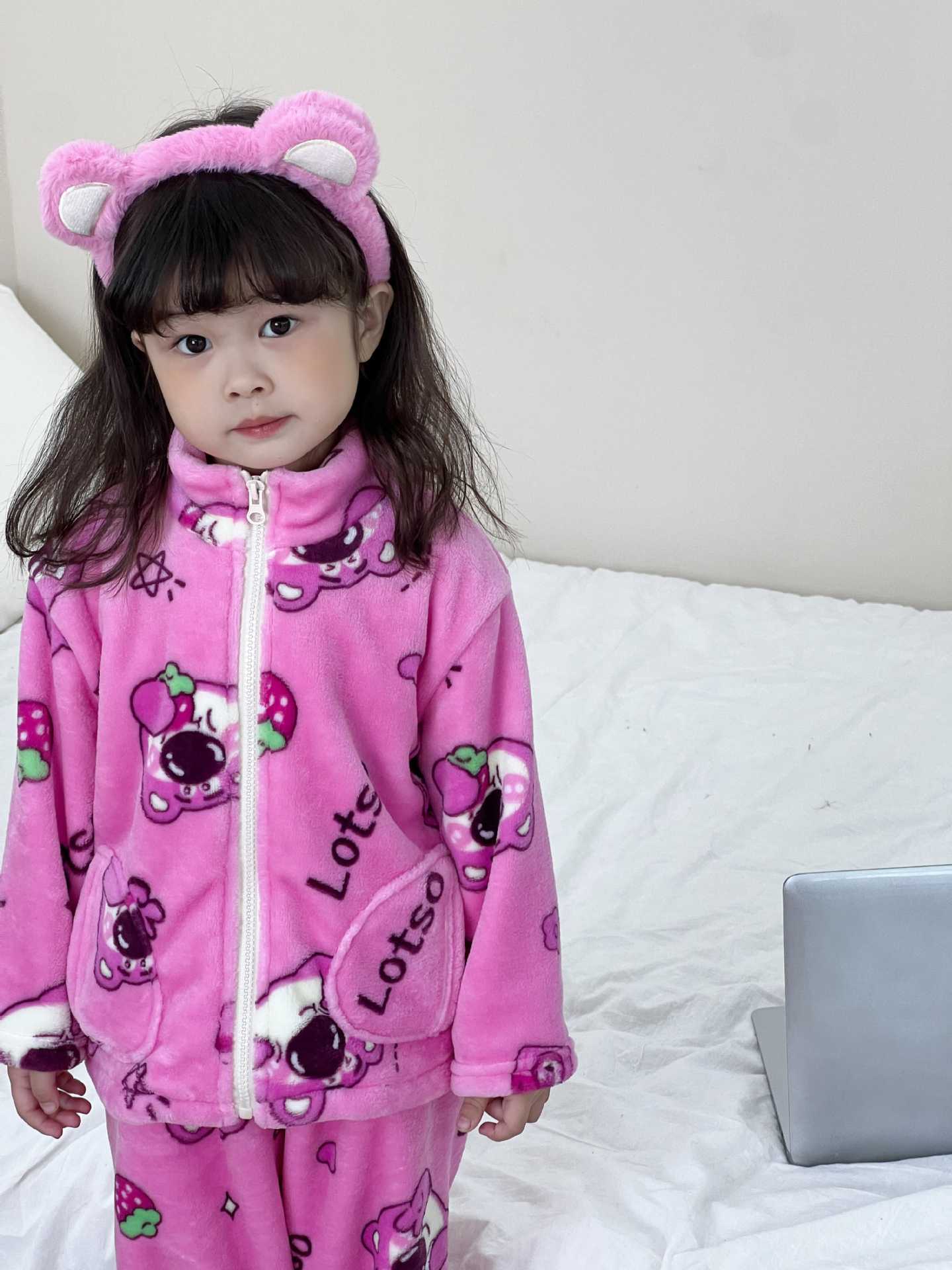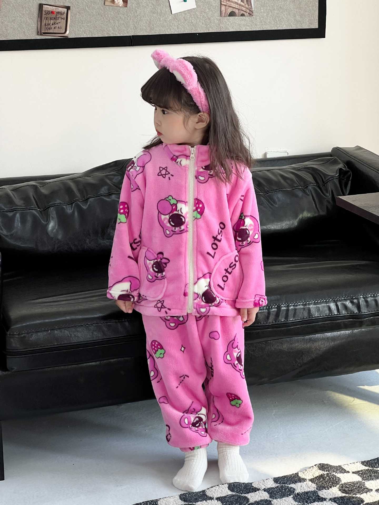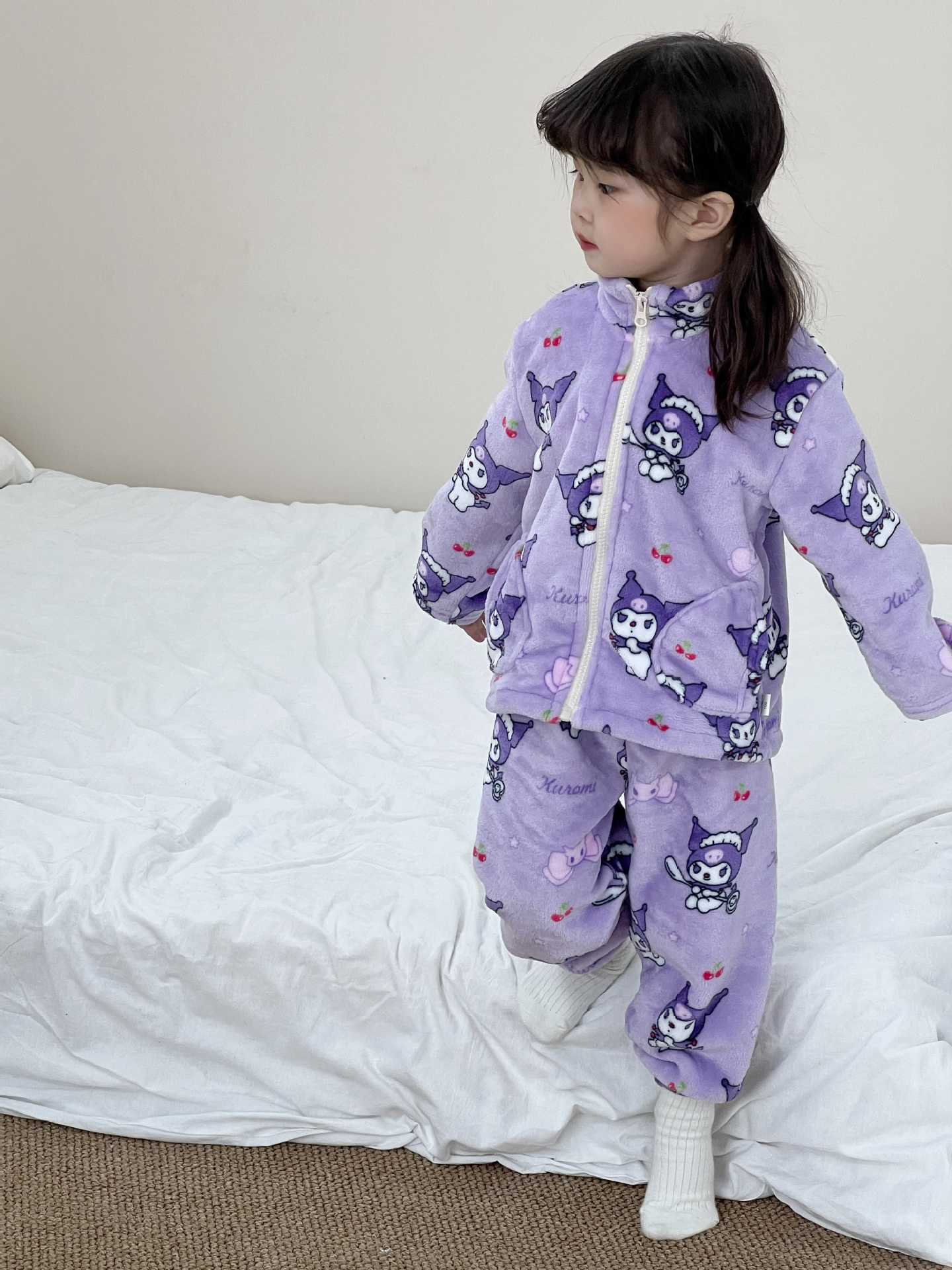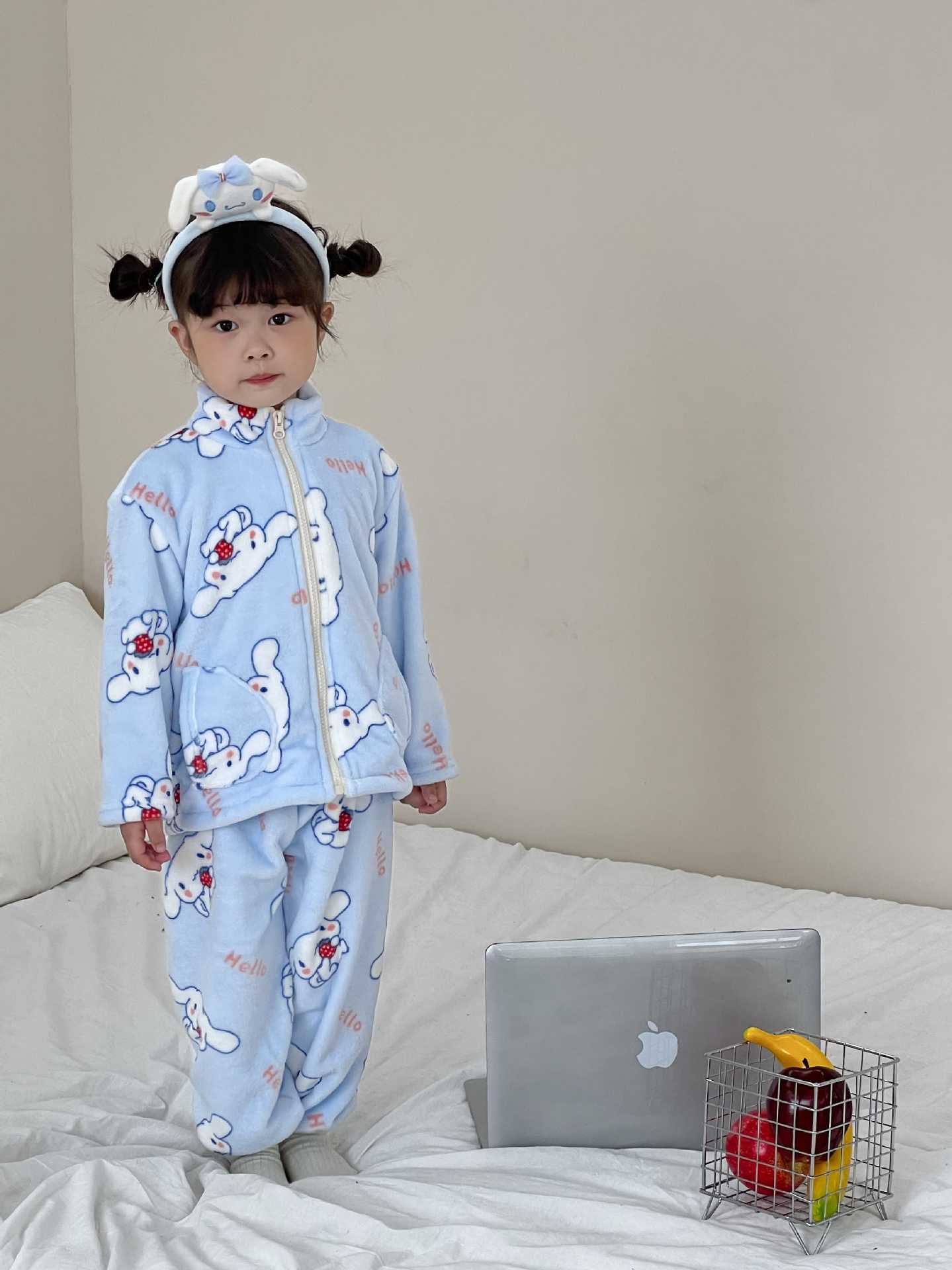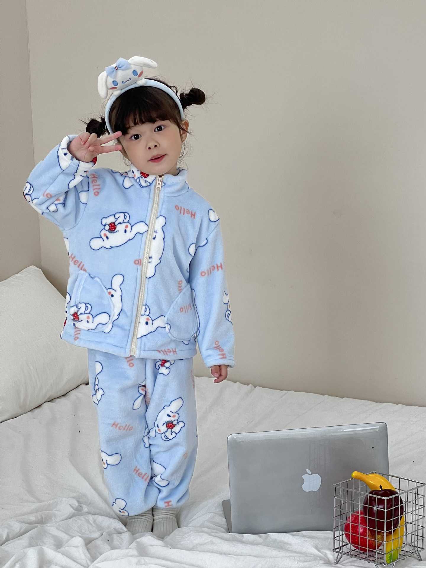 어린이 잠옷 가을과 겨울 플란넬 산호 양털 기모 두꺼운 겨울 소년의 집 옷 아기 세트 만화스토어 가기
