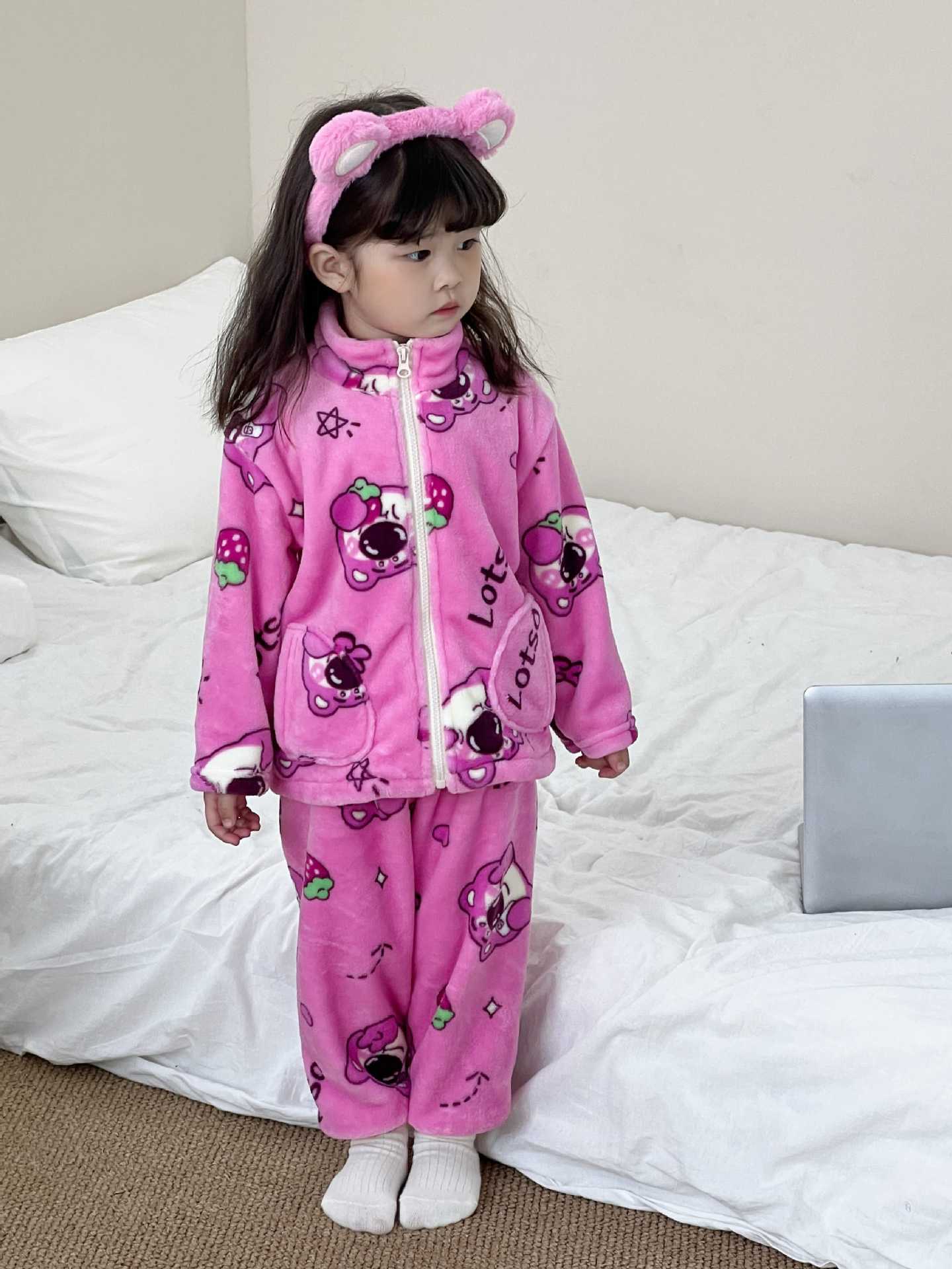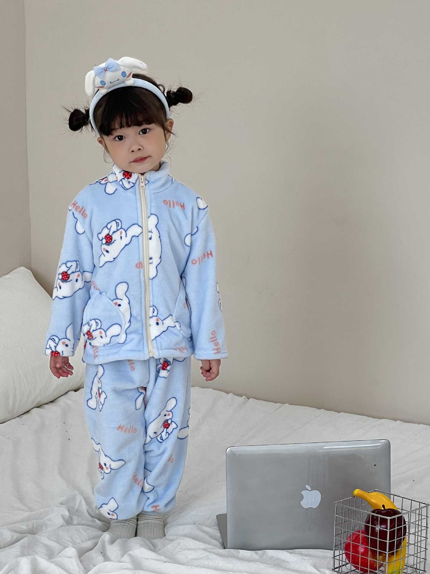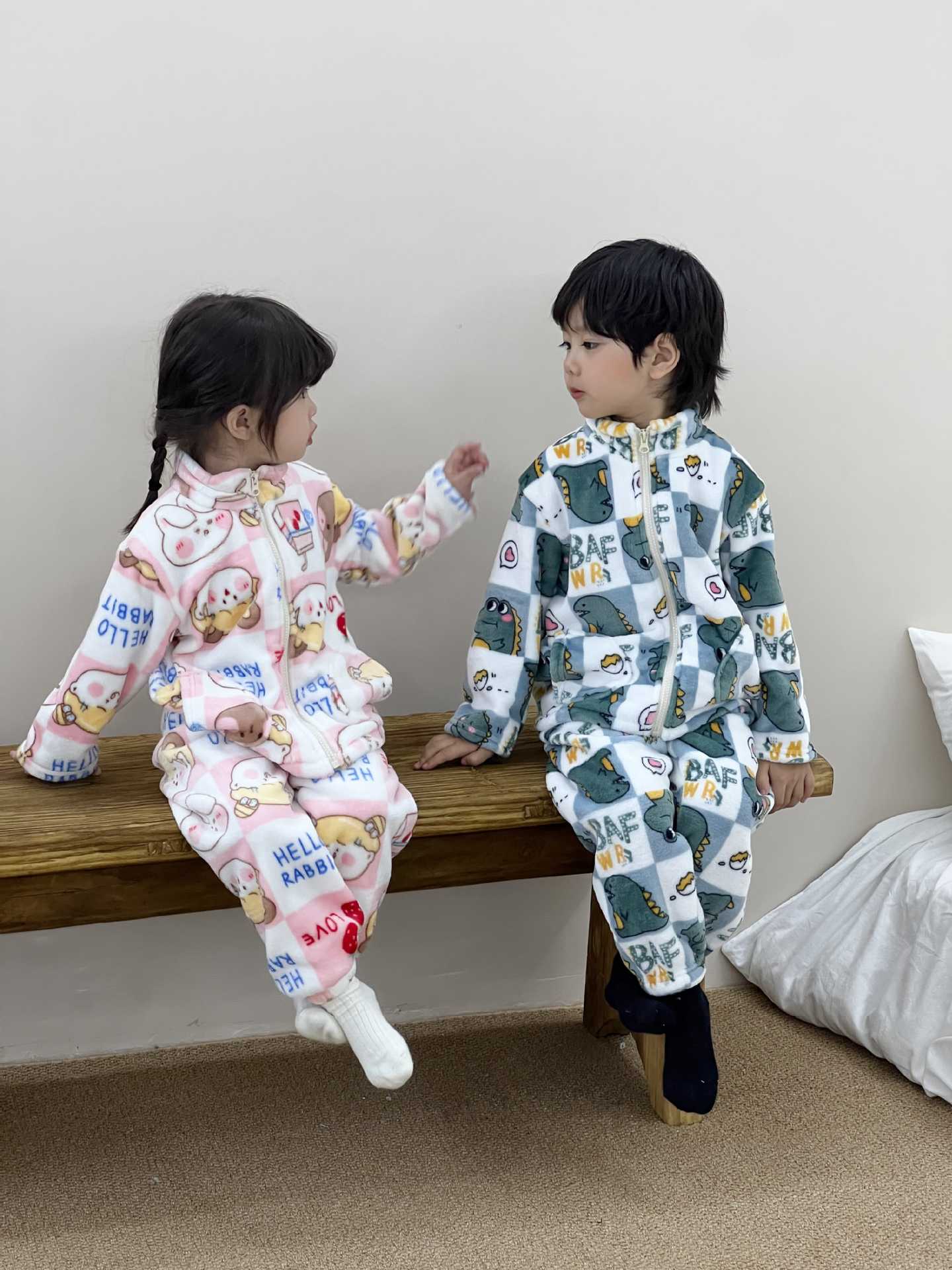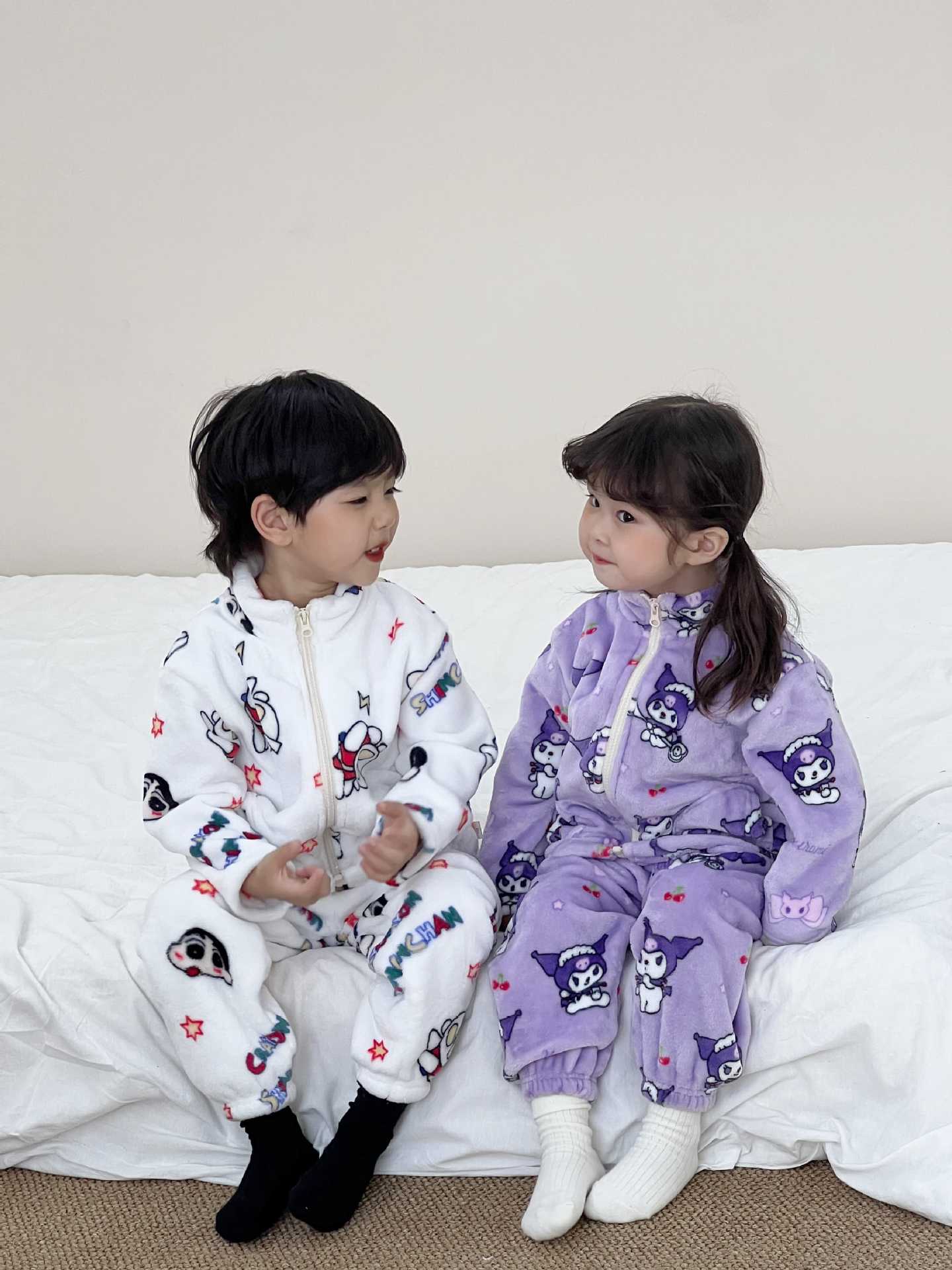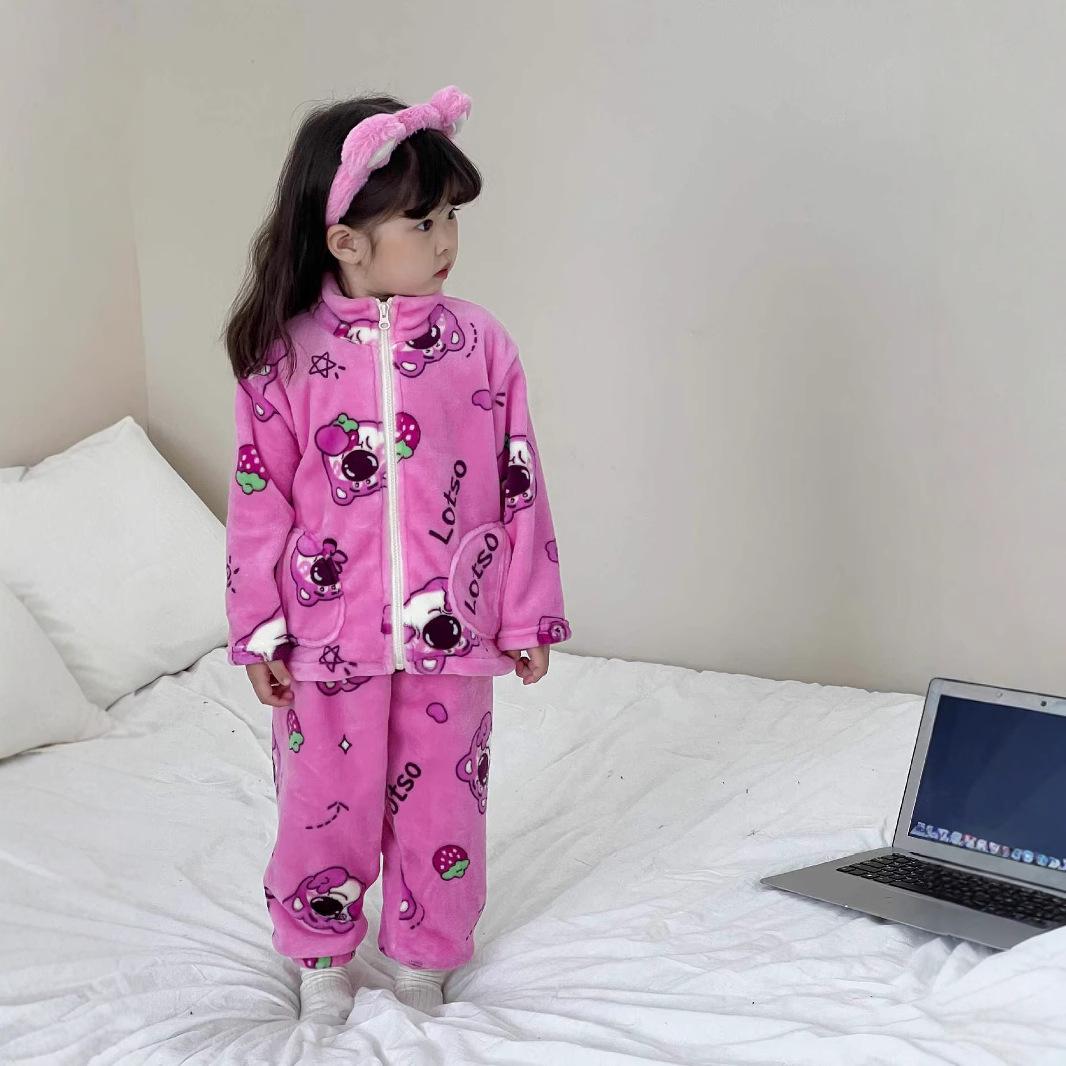 어린이 잠옷 가을과 겨울 플란넬 산호 양털 기모 두꺼운 겨울 소년의 집 옷 아기 세트 만화스토어 가기