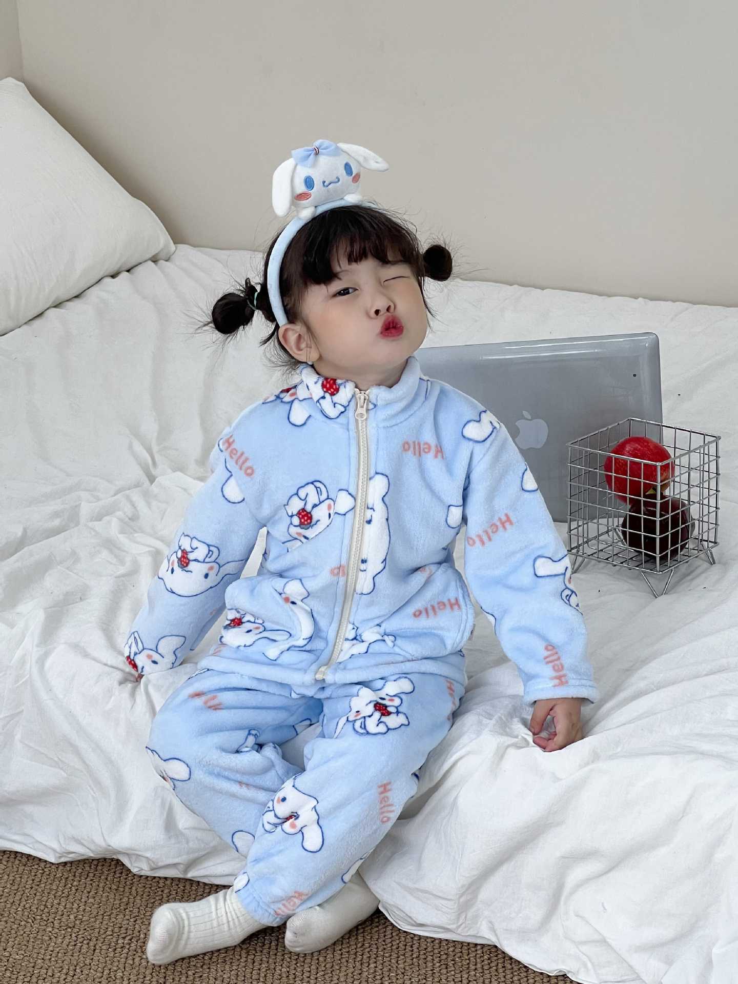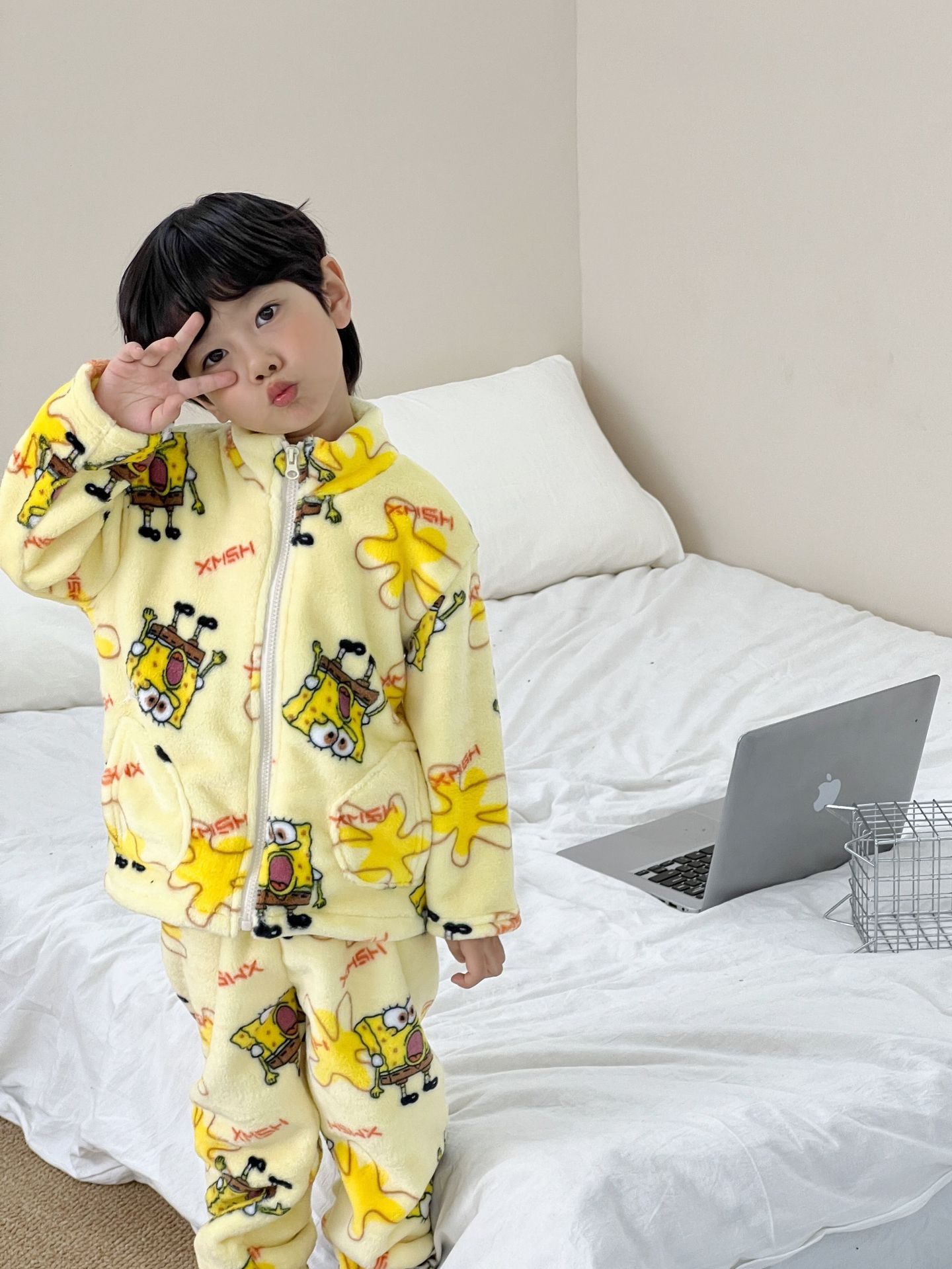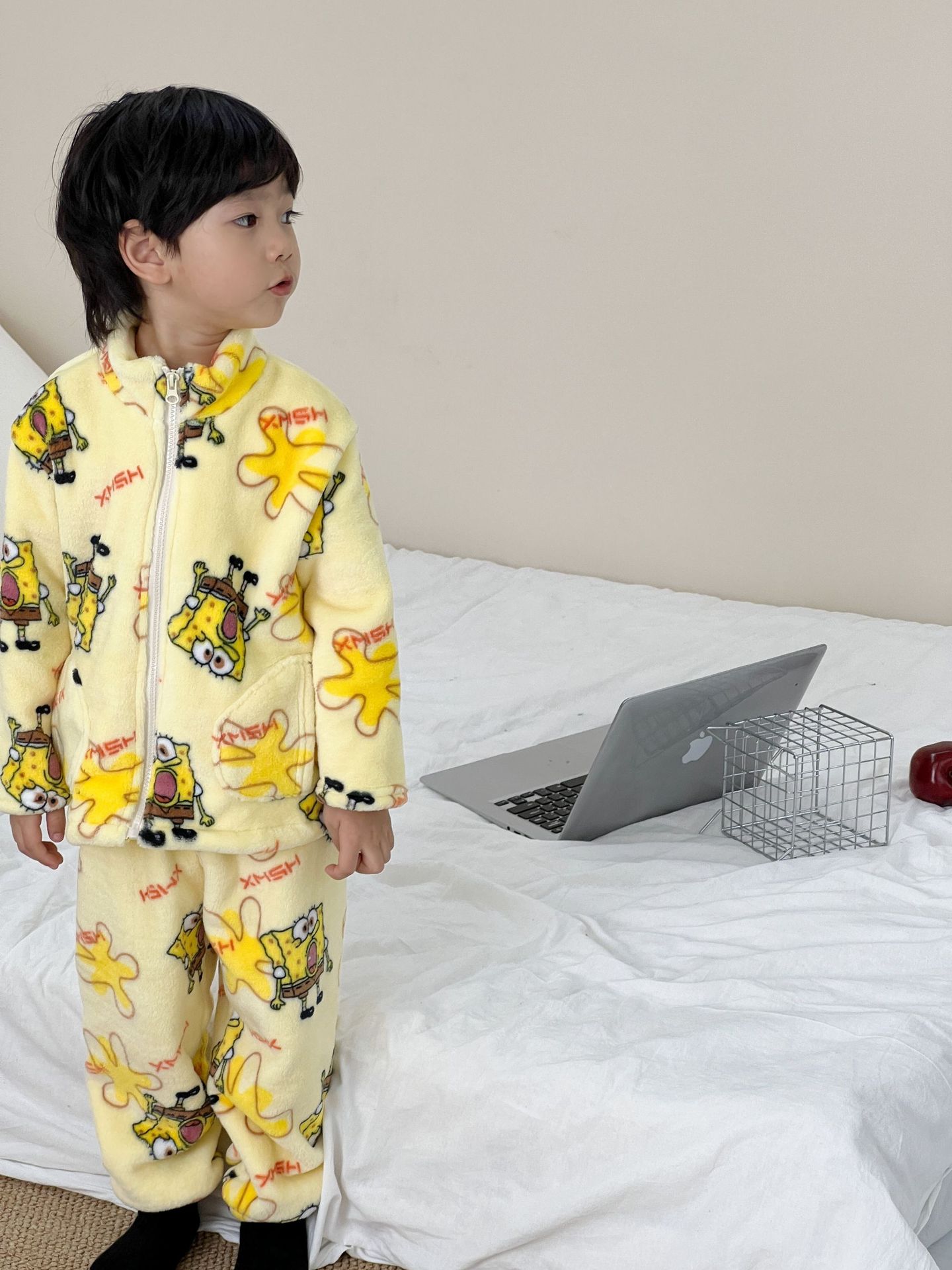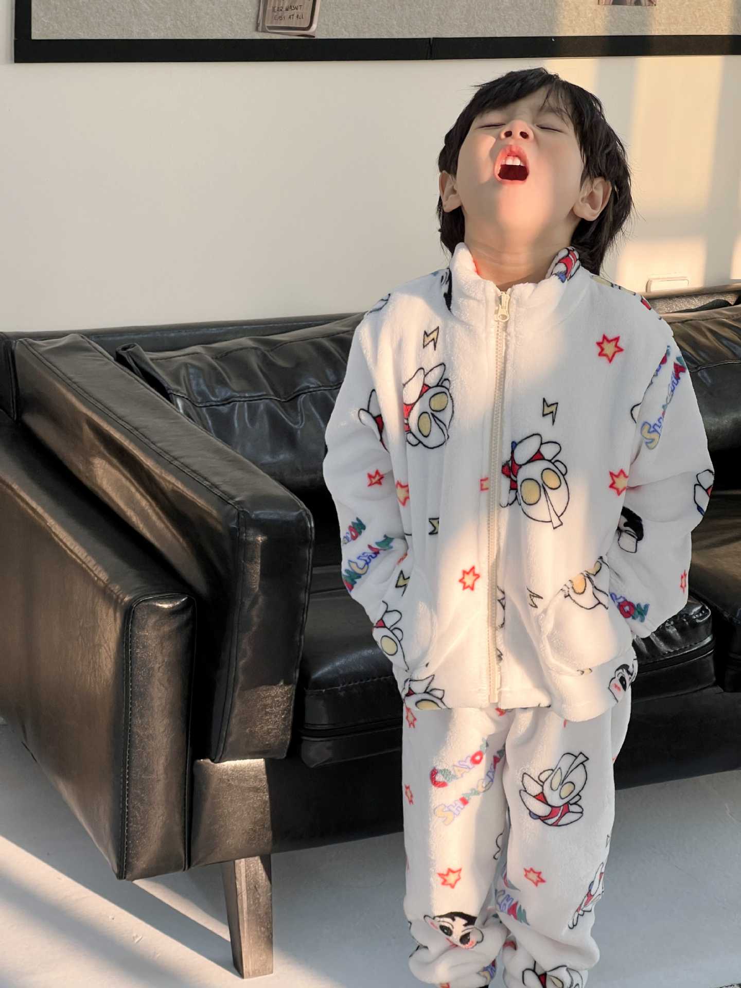 어린이 잠옷 가을과 겨울 플란넬 산호 양털 기모 두꺼운 겨울 소년의 집 옷 아기 세트 만화