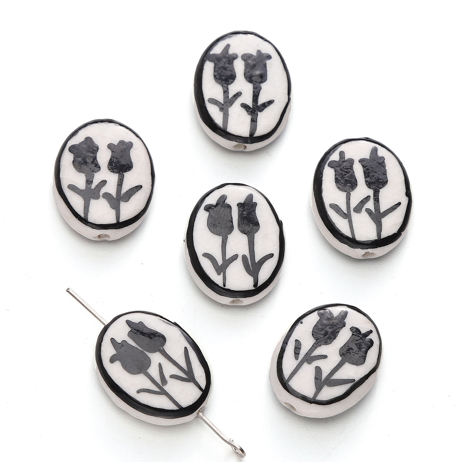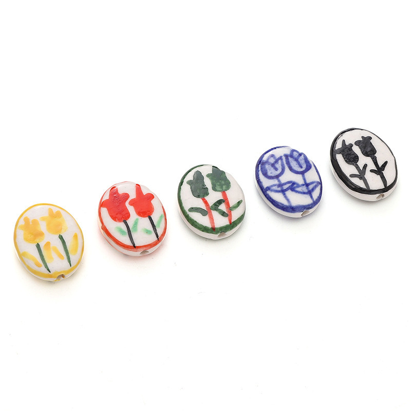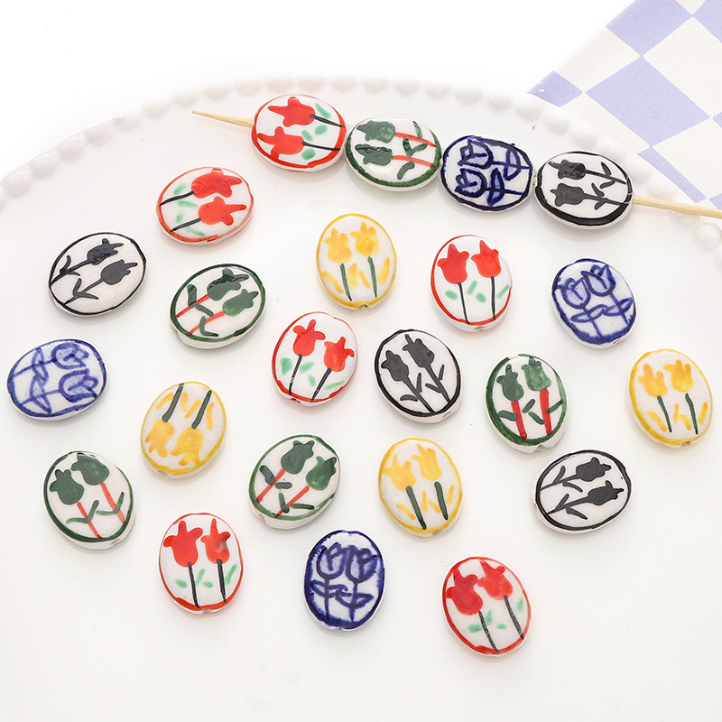 1 레트로 튤립 복고풍 세라믹 손으로 그린 구슬 DIY 손 구슬 액세서리 느슨한 구슬 팔찌 휴대 전화 체인 소재