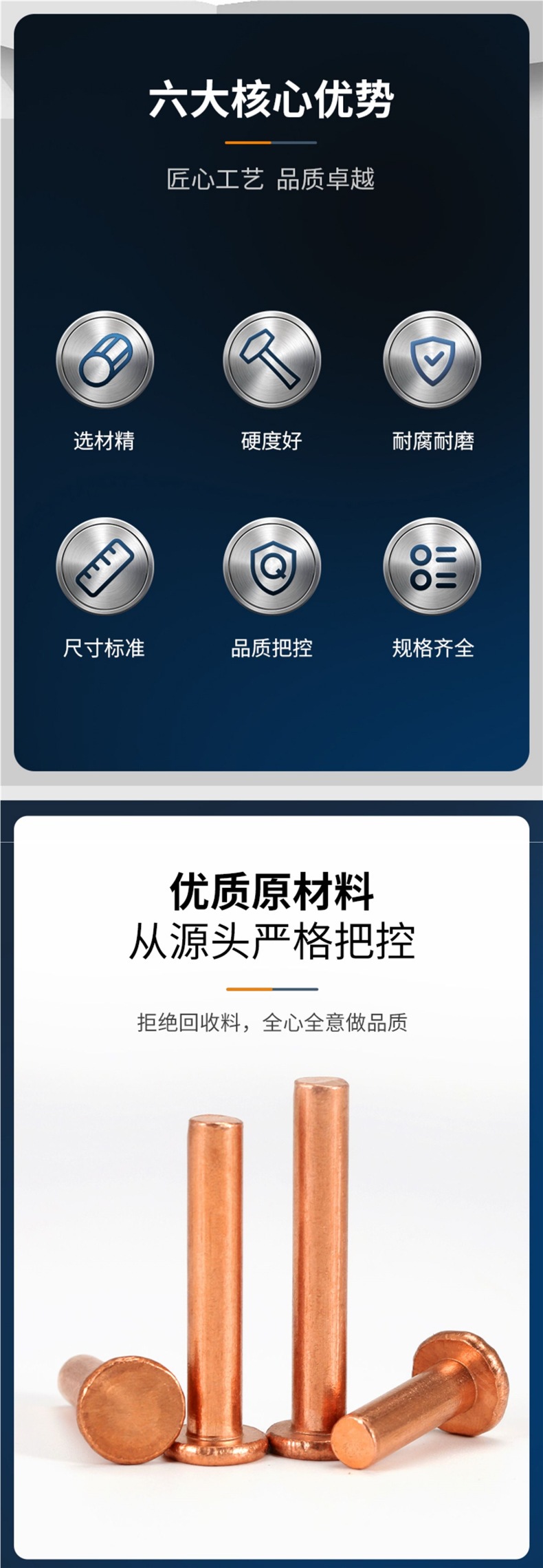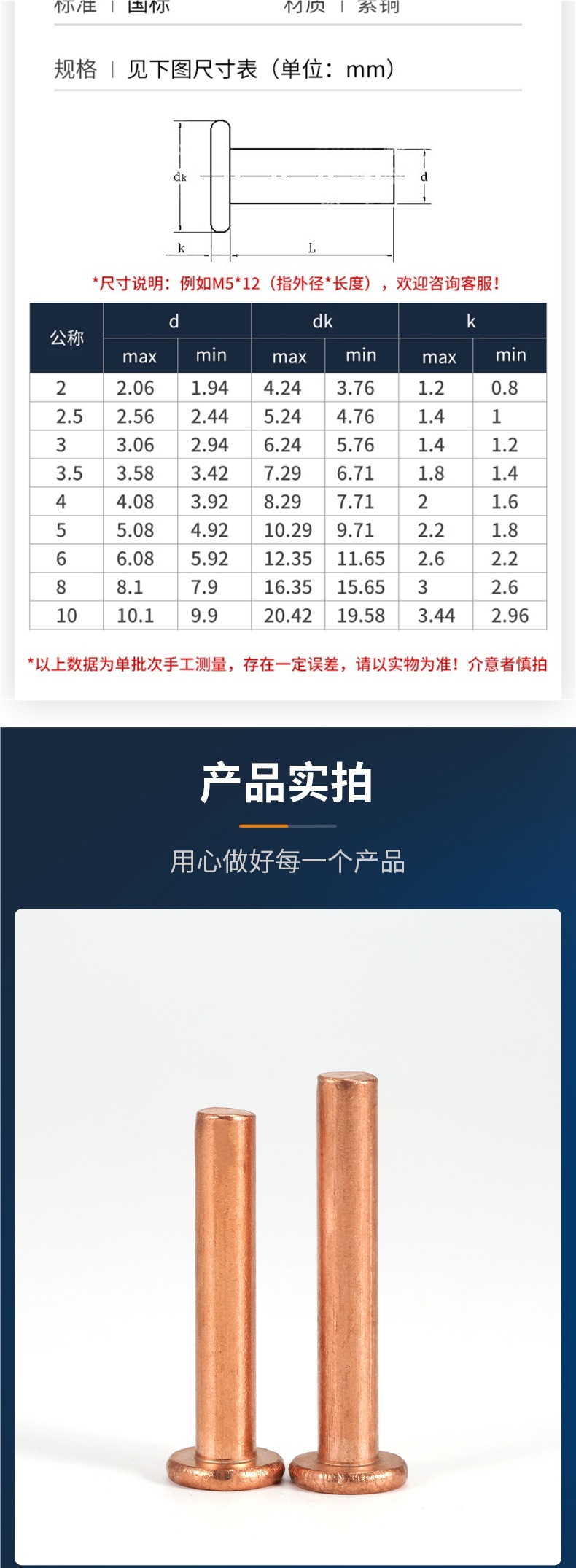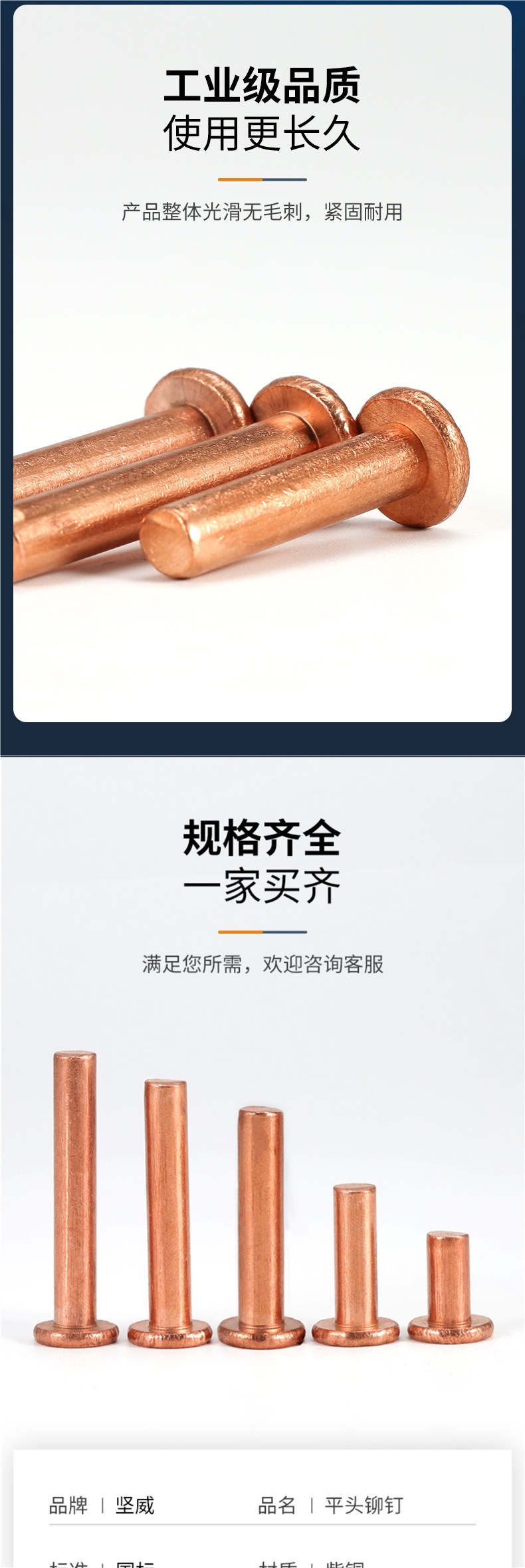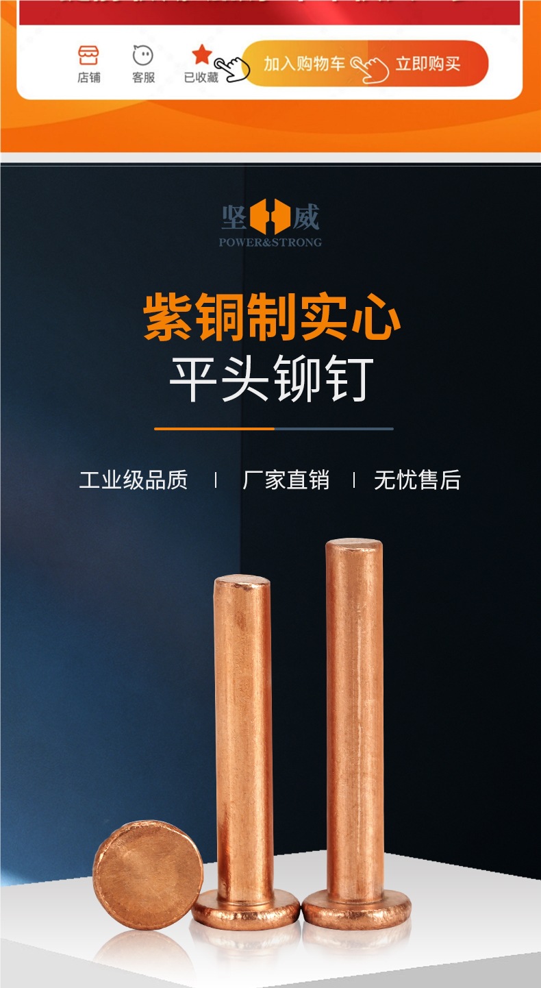 구리 리벳 플랫 헤드 솔리드 리벳 플랫 캡 구리 네일 타악기 플랫 라운드 헤드 나사 M2M2.5M3M4M5M6M8