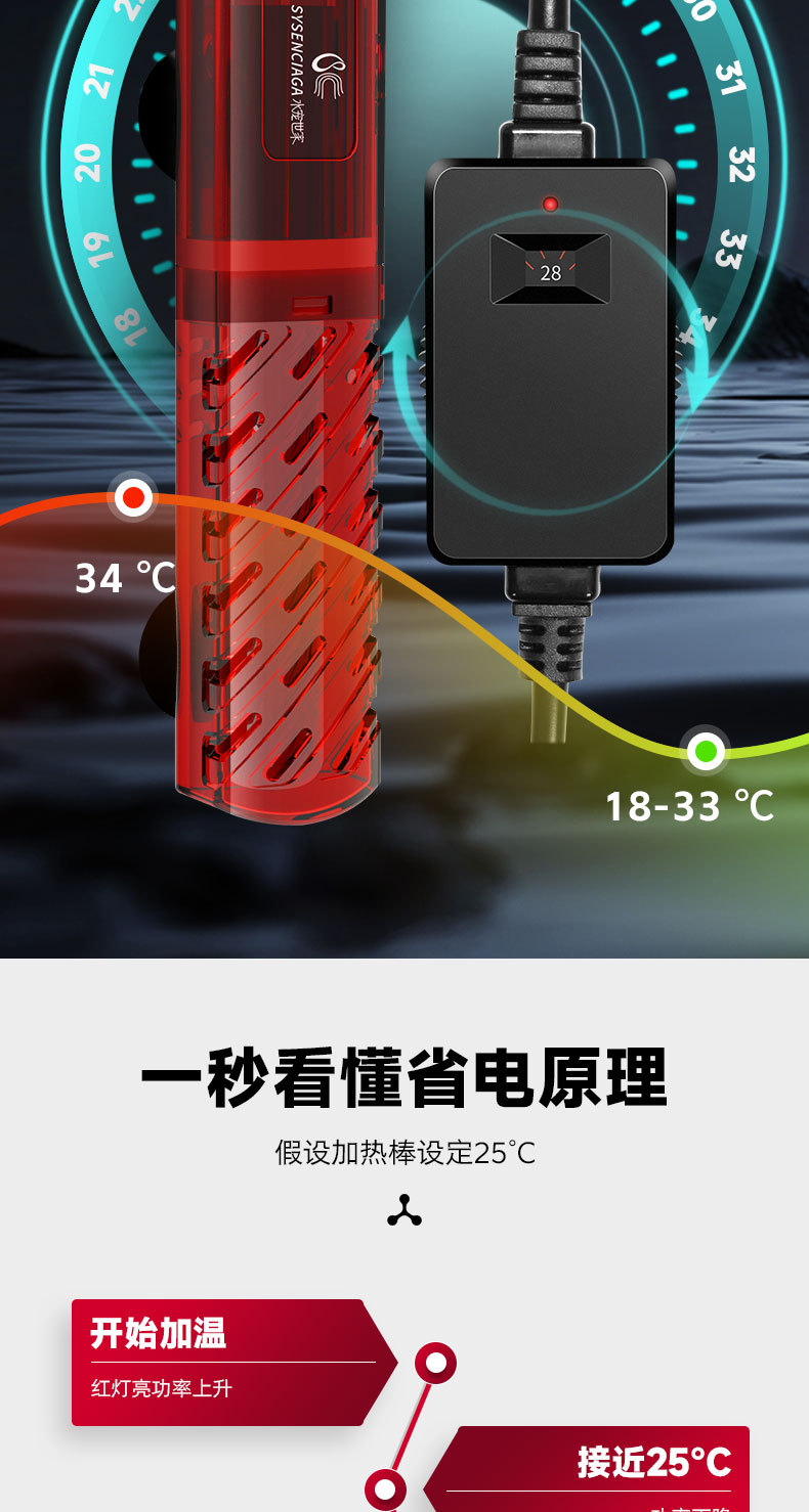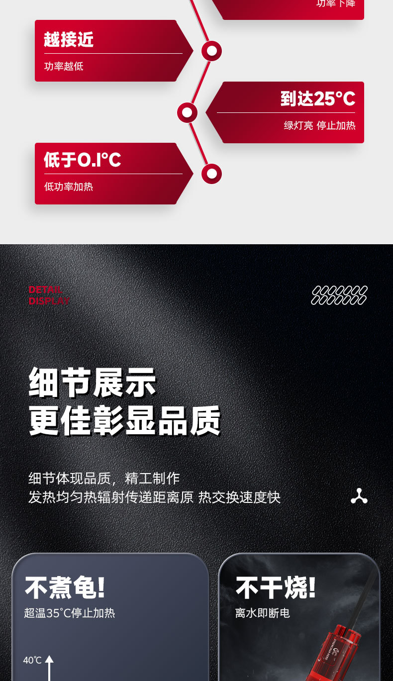 • 50W 빨간색 디지털 디스플레이 모델 [20-34℃조정 가능】 안전하고 방폭형 - 정밀한 온도 제어
