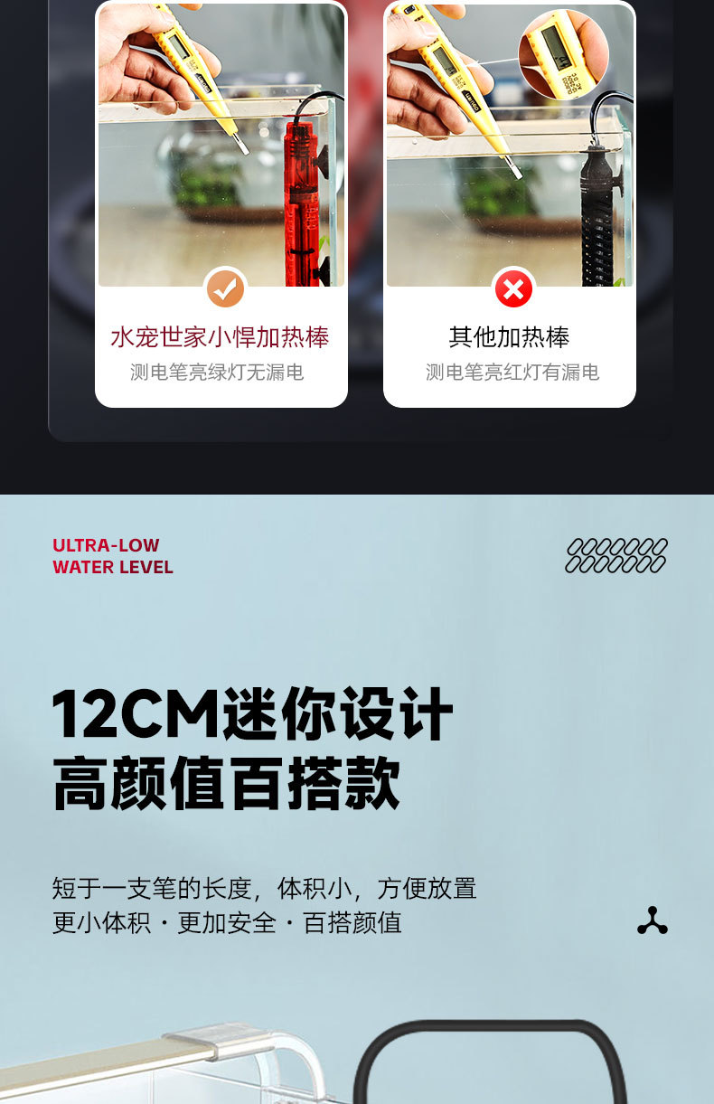 미니 어항 가열 막대 작은 히터 자동 일정한 온도 막대 정밀한 온도 제어 석영 폭발 방지 디지털 디스플레이 가열 막대