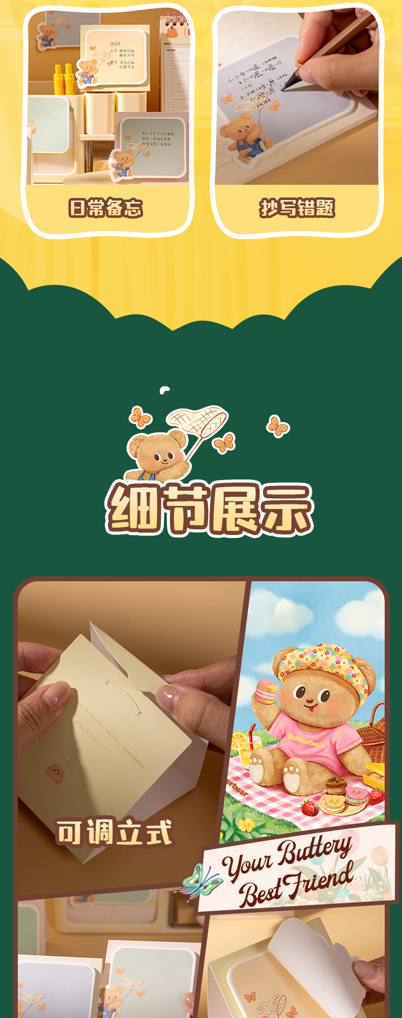 델리 NS359-B 버터 베어 조인트 4 색 스탠드 업 포스트잇 노트 노트 노트 노트