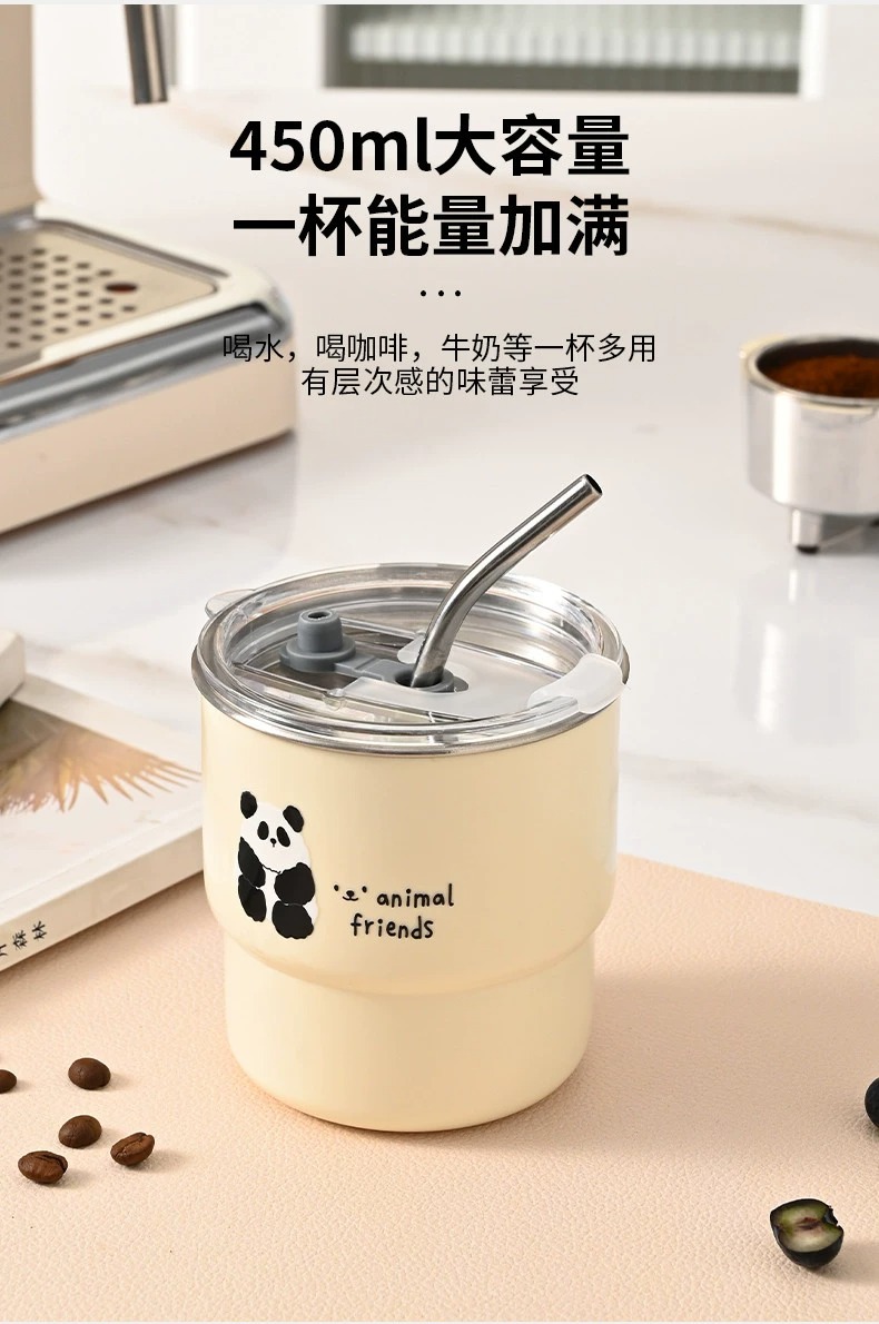 • 304 스틸 더블 레이어 물컵 [밀크 화이트 베어/빨대 포함]