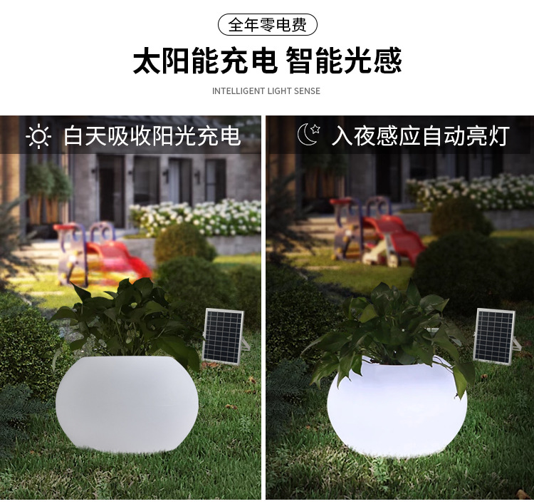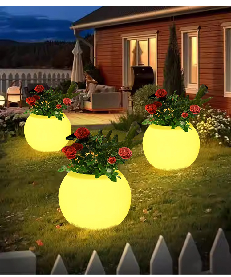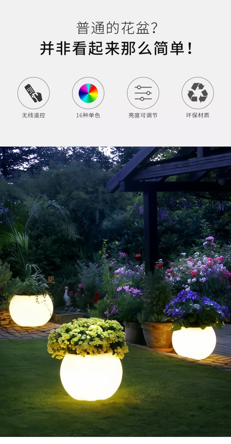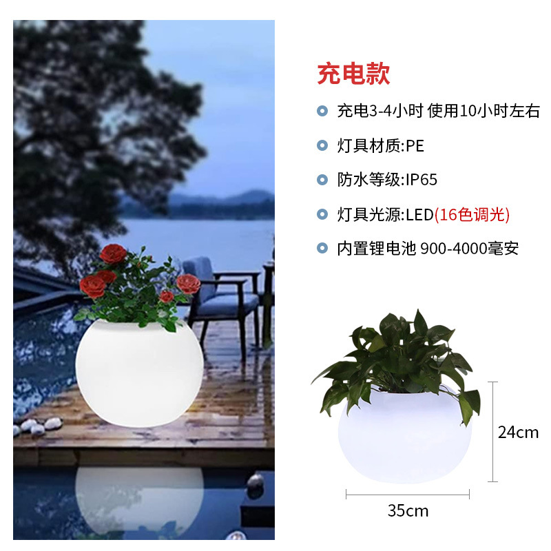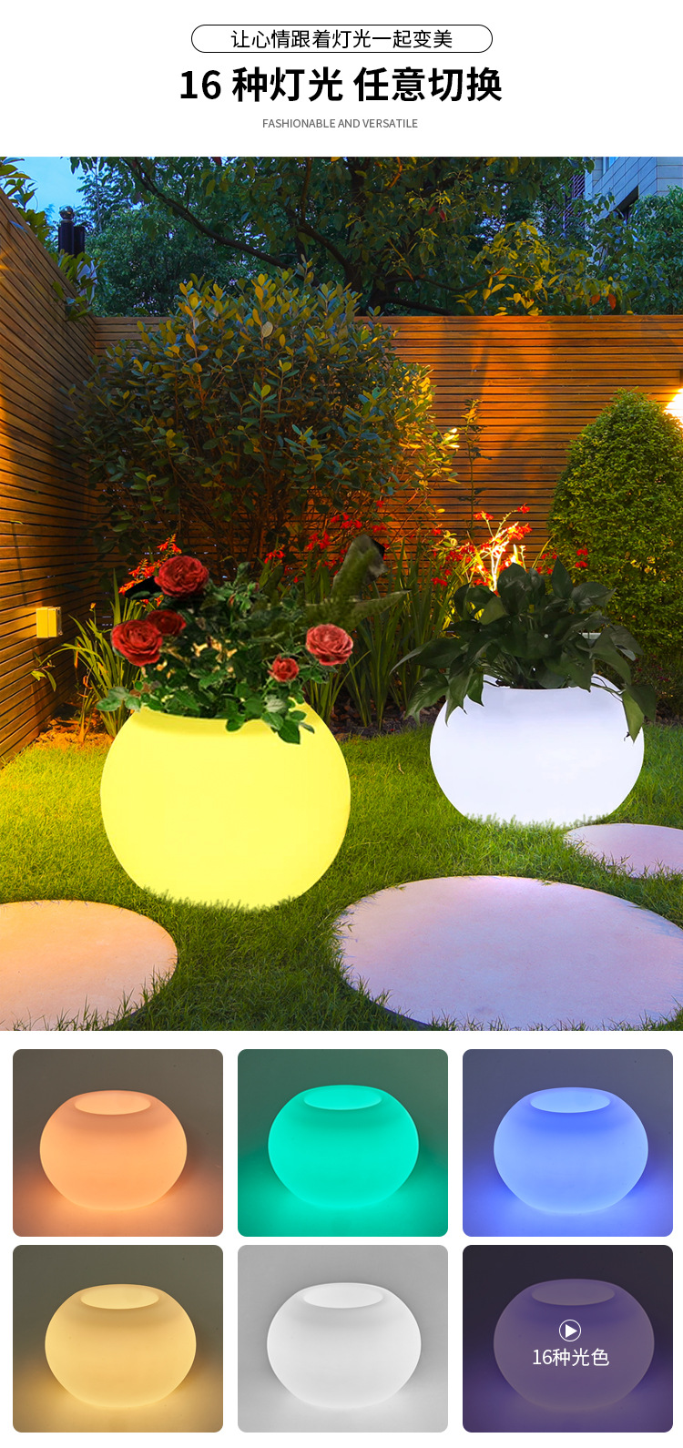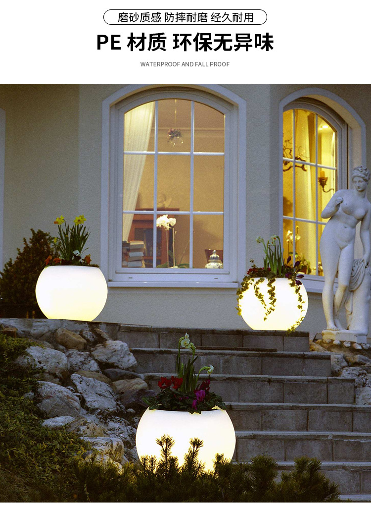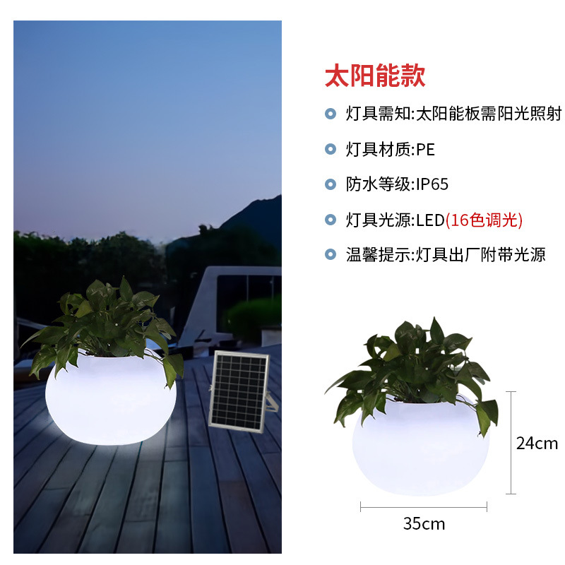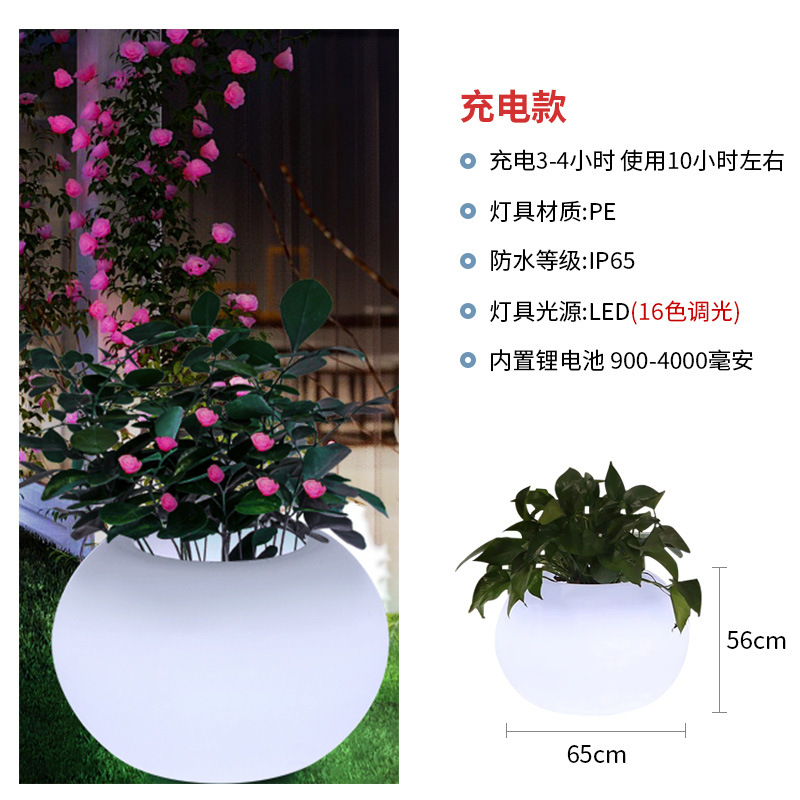 야외 꽃 그릇 안뜰 빛나는 꽃 냄비 꽃 꽃병 장식 빛 창조적 인 풍경 방수 분재 플라스틱 장식품 나무 빛