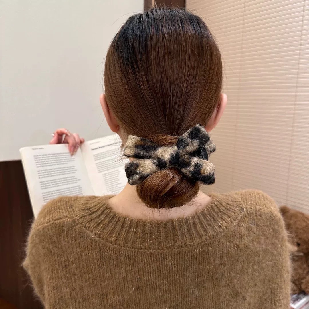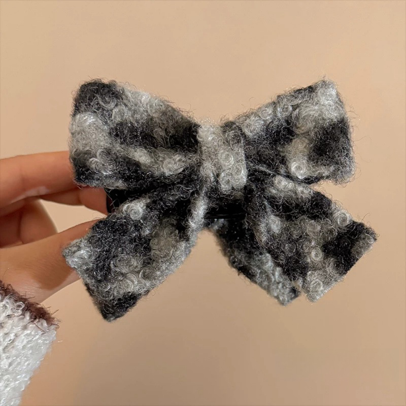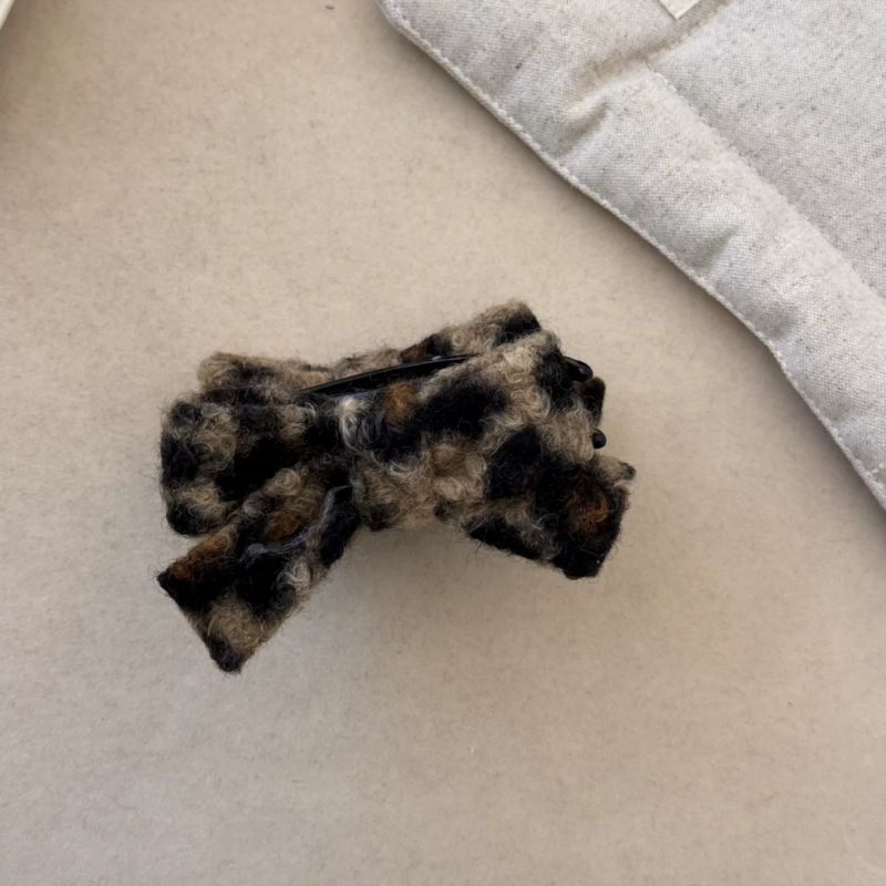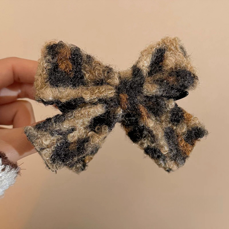 레오파드 무늬 가을과 겨울 빈티지 양면 활 여성 머리 뒷면의 플러시 볼 헤드 그립 클립 고급 아티팩트 헤어 클립 감각