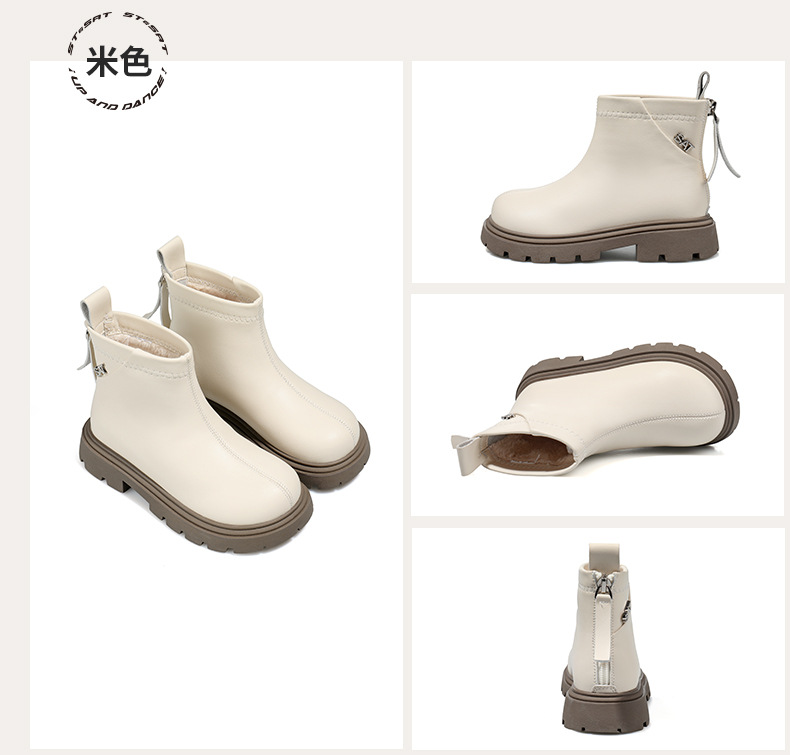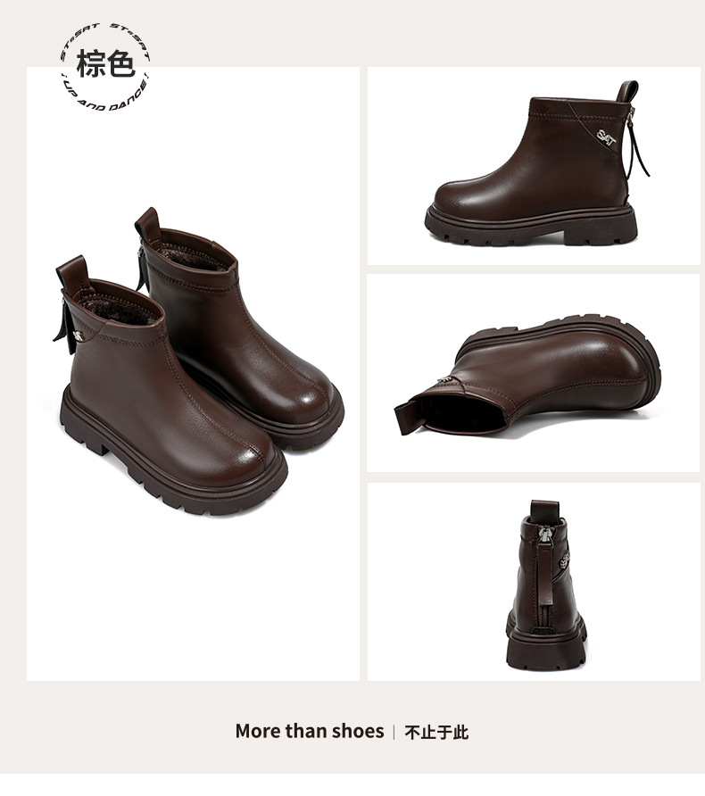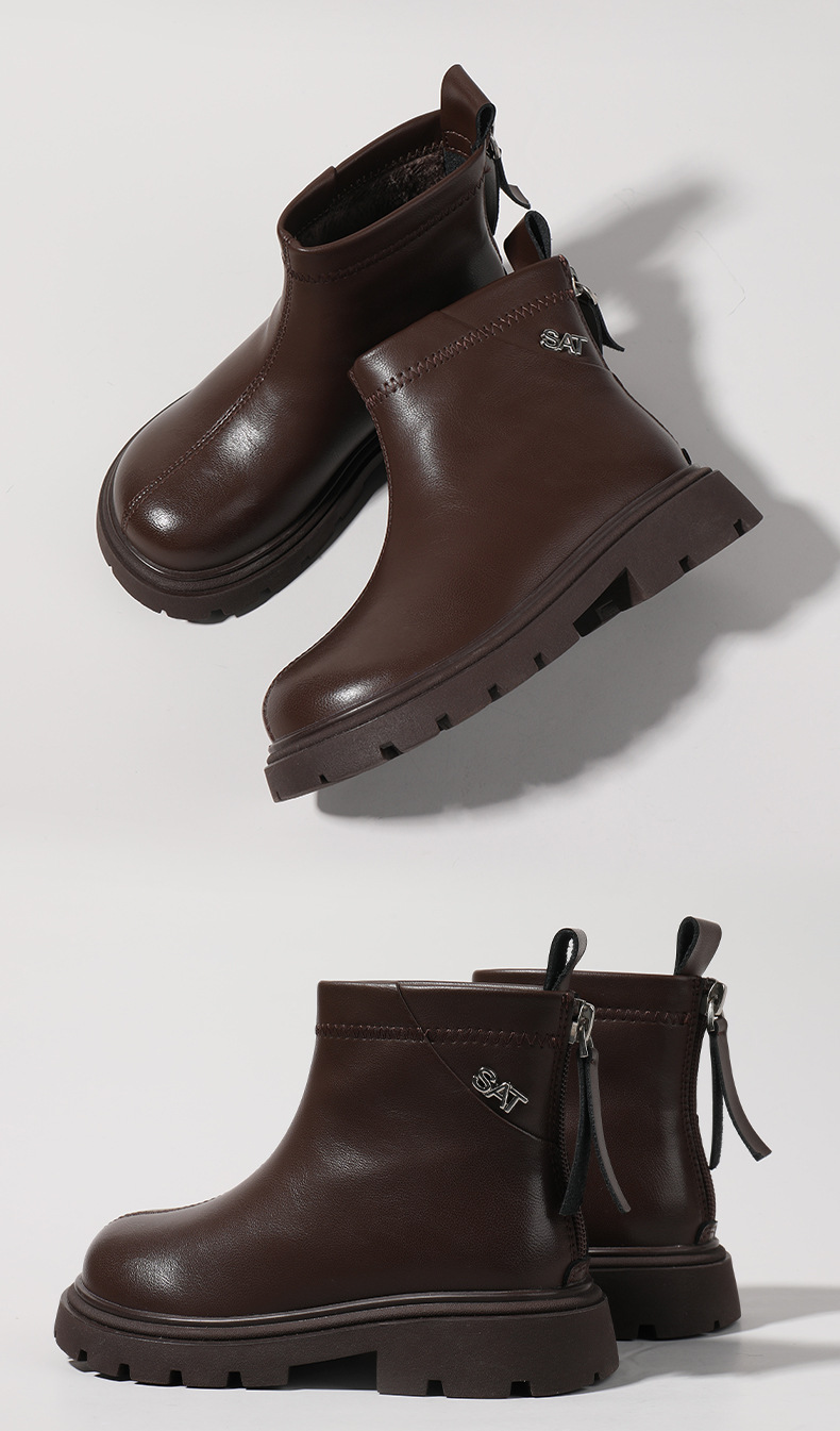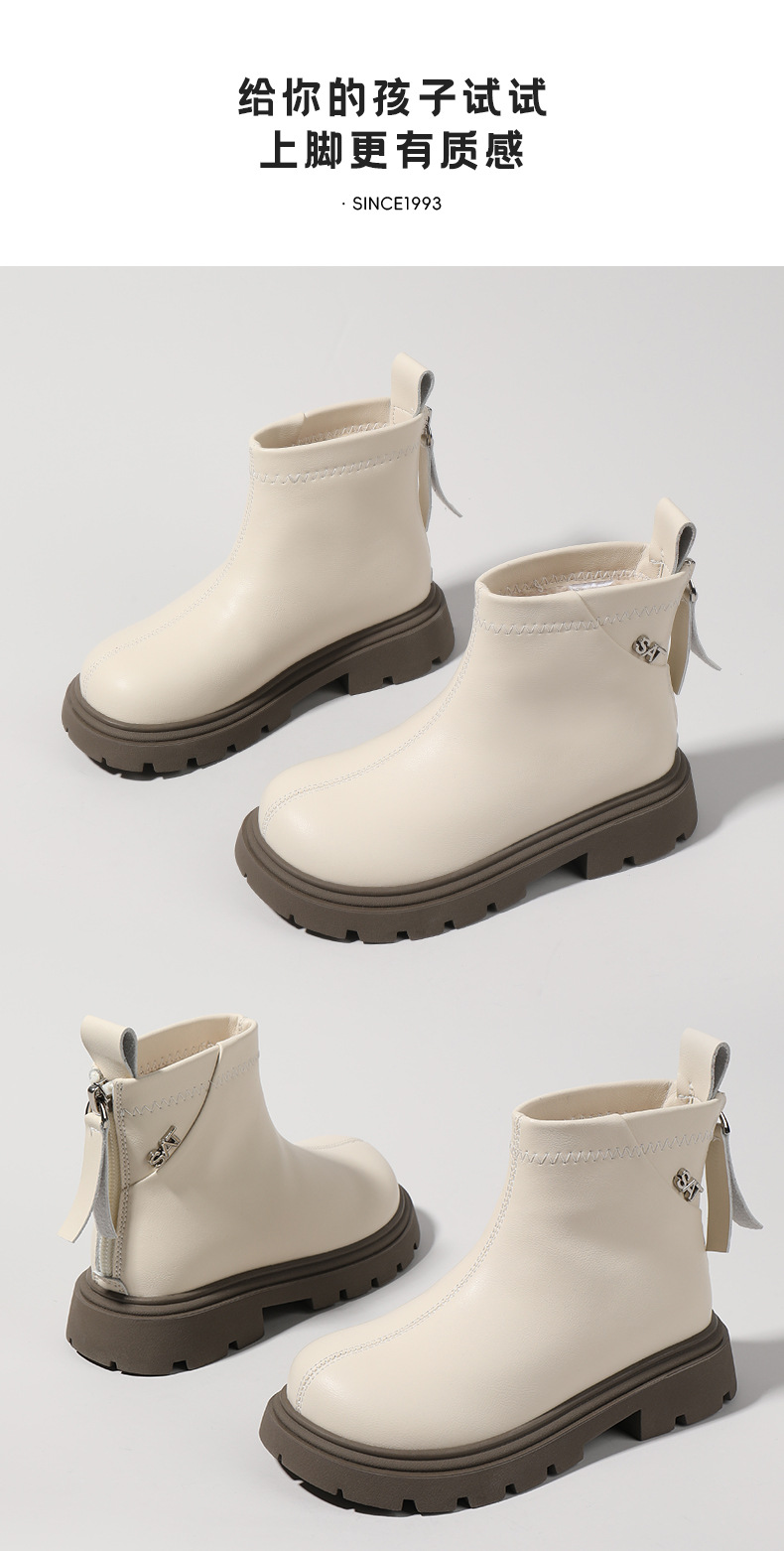 토요일 아동화, 여아 가죽 부츠, 겨울 신상 심플하고 다재다능한 여아 부츠, 부드러운 밑창과 벨벳 아동 면 숏부츠