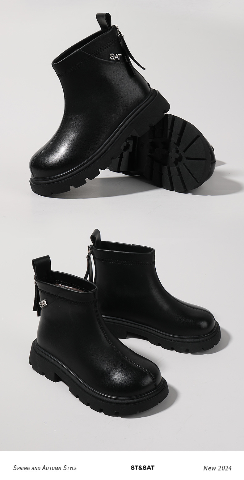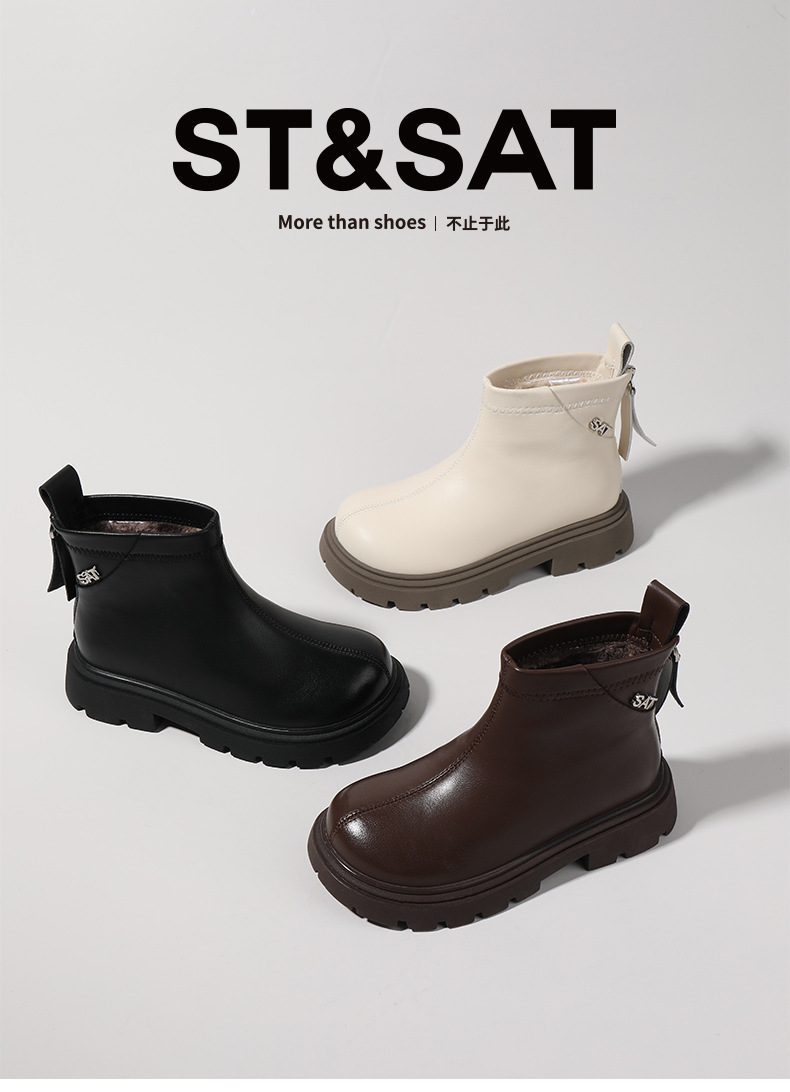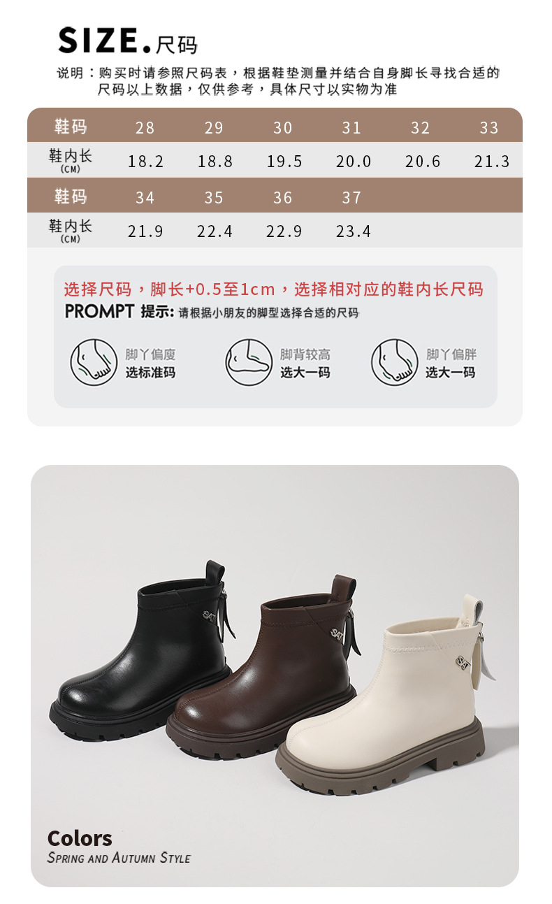 토요일 아동화, 여아 가죽 부츠, 겨울 신상 심플하고 다재다능한 여아 부츠, 부드러운 밑창과 벨벳 아동 면 숏부츠