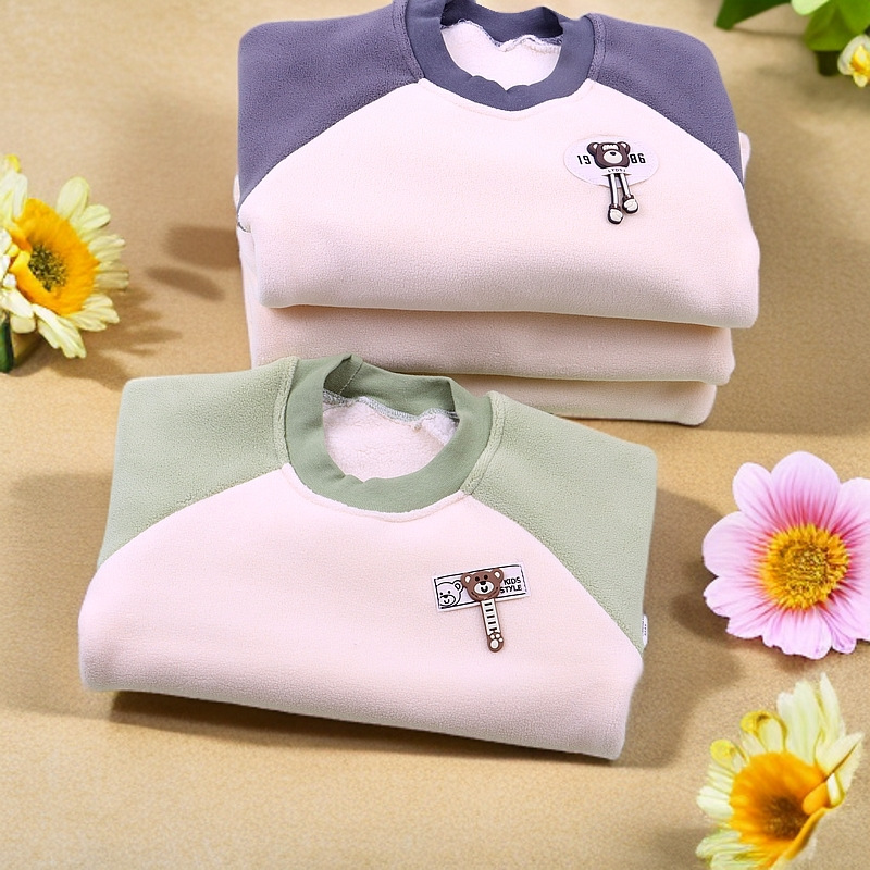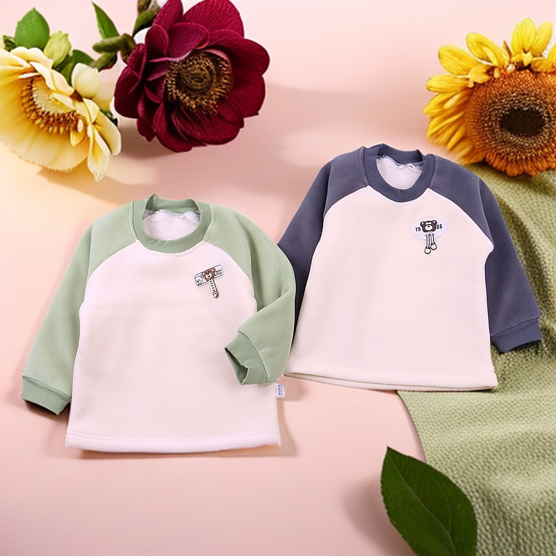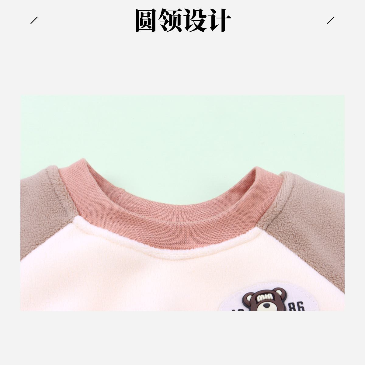 아기의 가을과 겨울 양고기 벨벳 옷 아기의 0-3 세 탑 따뜻한 기모 두꺼운 소년과 소녀의 긴 소매 티셔츠스토어 가기