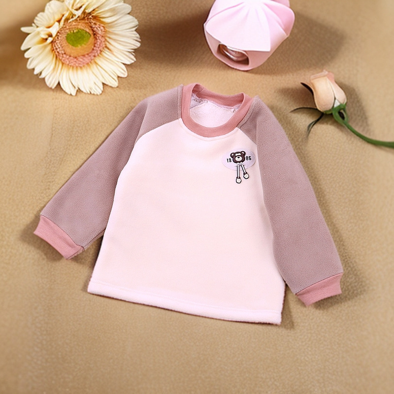 아기의 가을과 겨울 양고기 벨벳 옷 아기의 0-3 세 탑 따뜻한 기모 두꺼운 소년과 소녀의 긴 소매 티셔츠