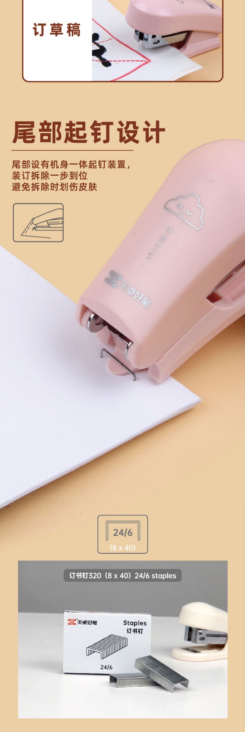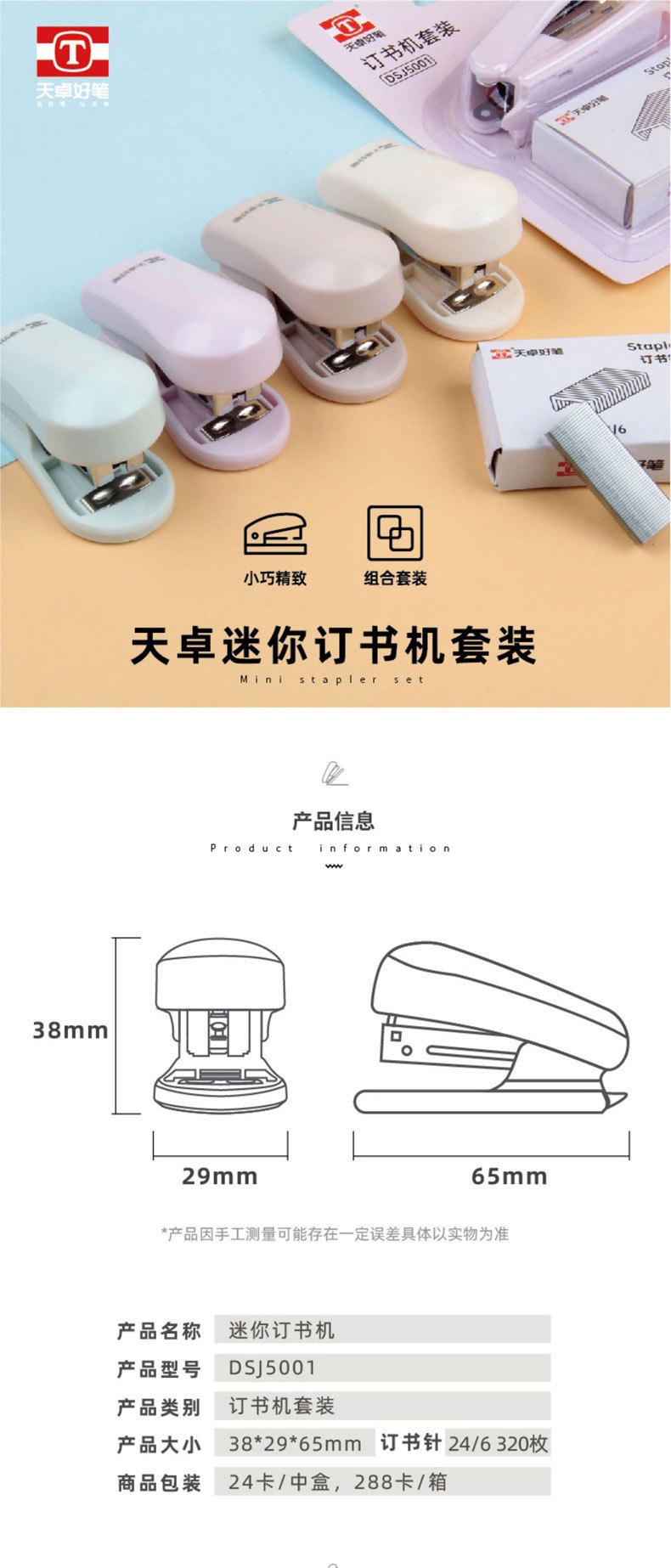 Tianzhuo 5001 휴대용 스테이플러 12 번 스터드 학생 Macaron 사무실 미니 스테이플러스토어 가기