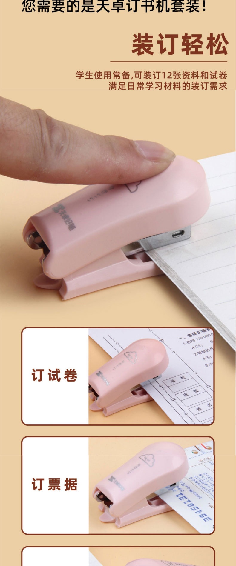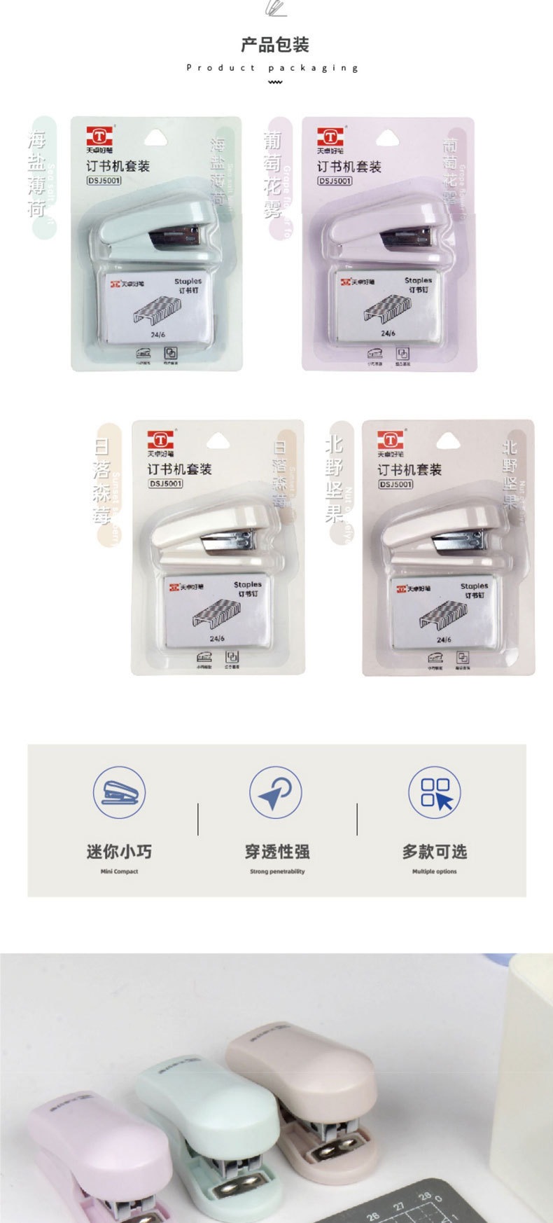 Tianzhuo 5001 휴대용 스테이플러 12 번 스터드 학생 Macaron 사무실 미니 스테이플러