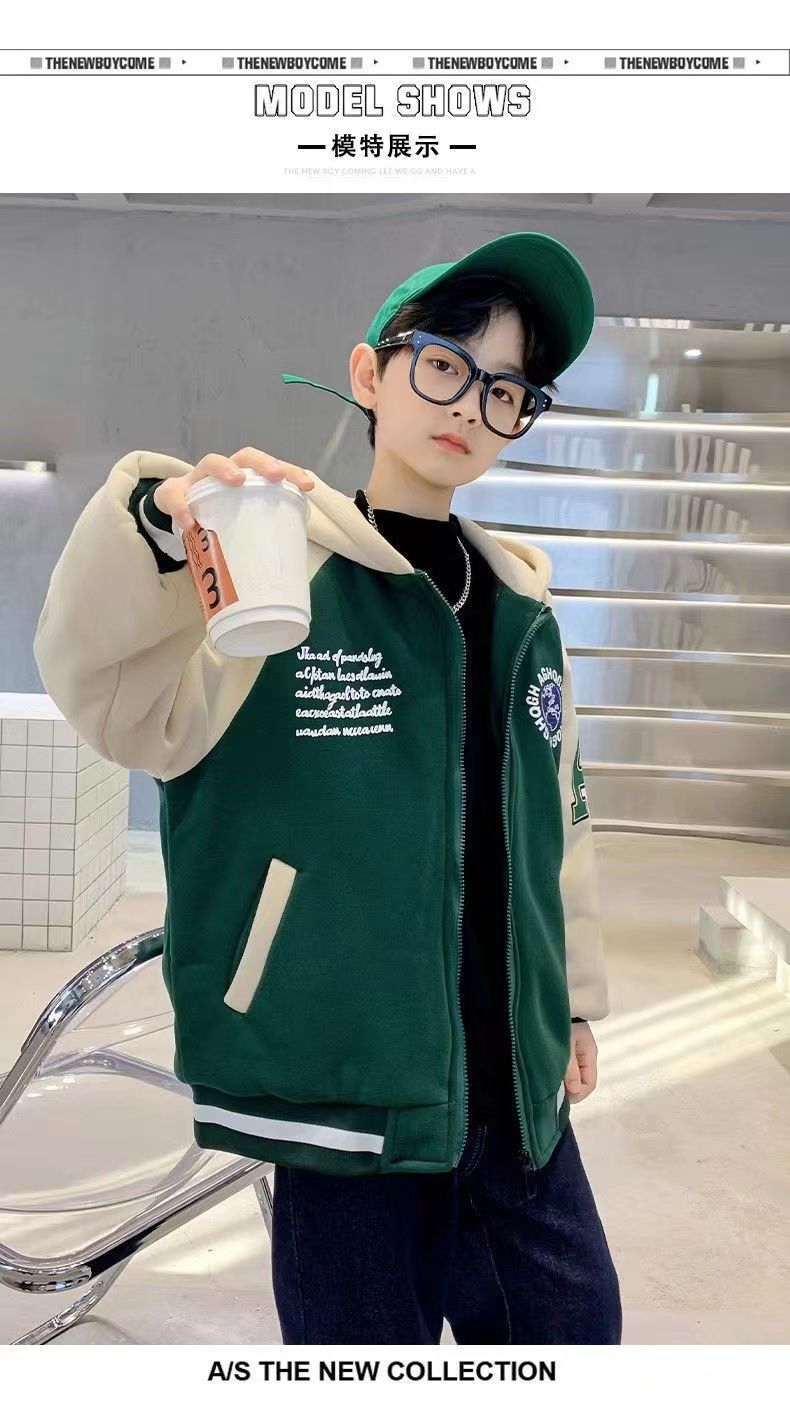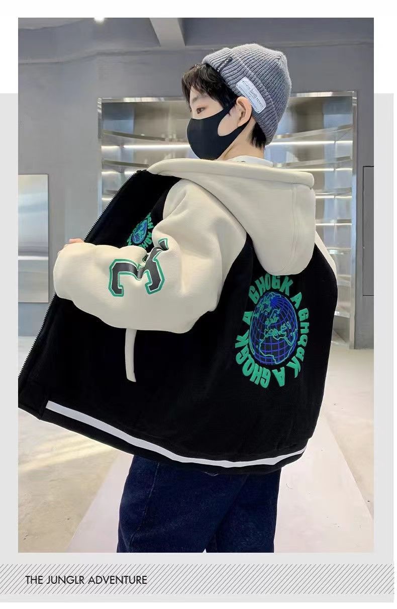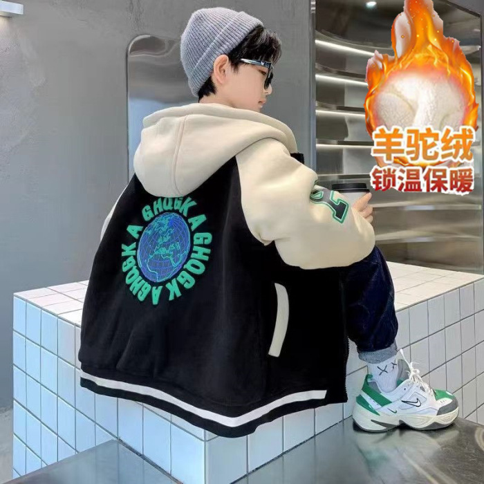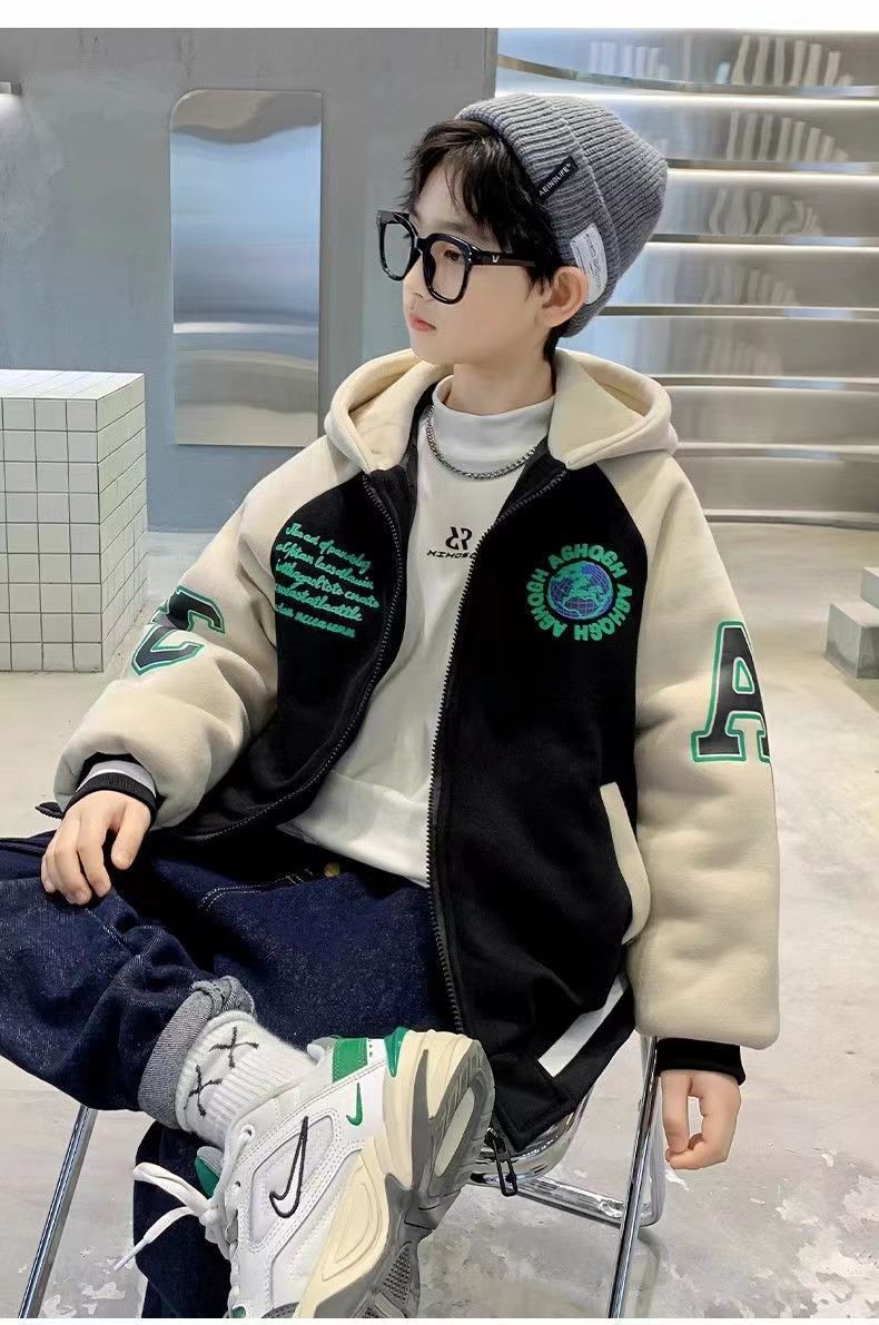 [컴파운드 알파카울] 어린이 겨울코트 2024 새 겨울 기모 두꺼운 소년 쿨